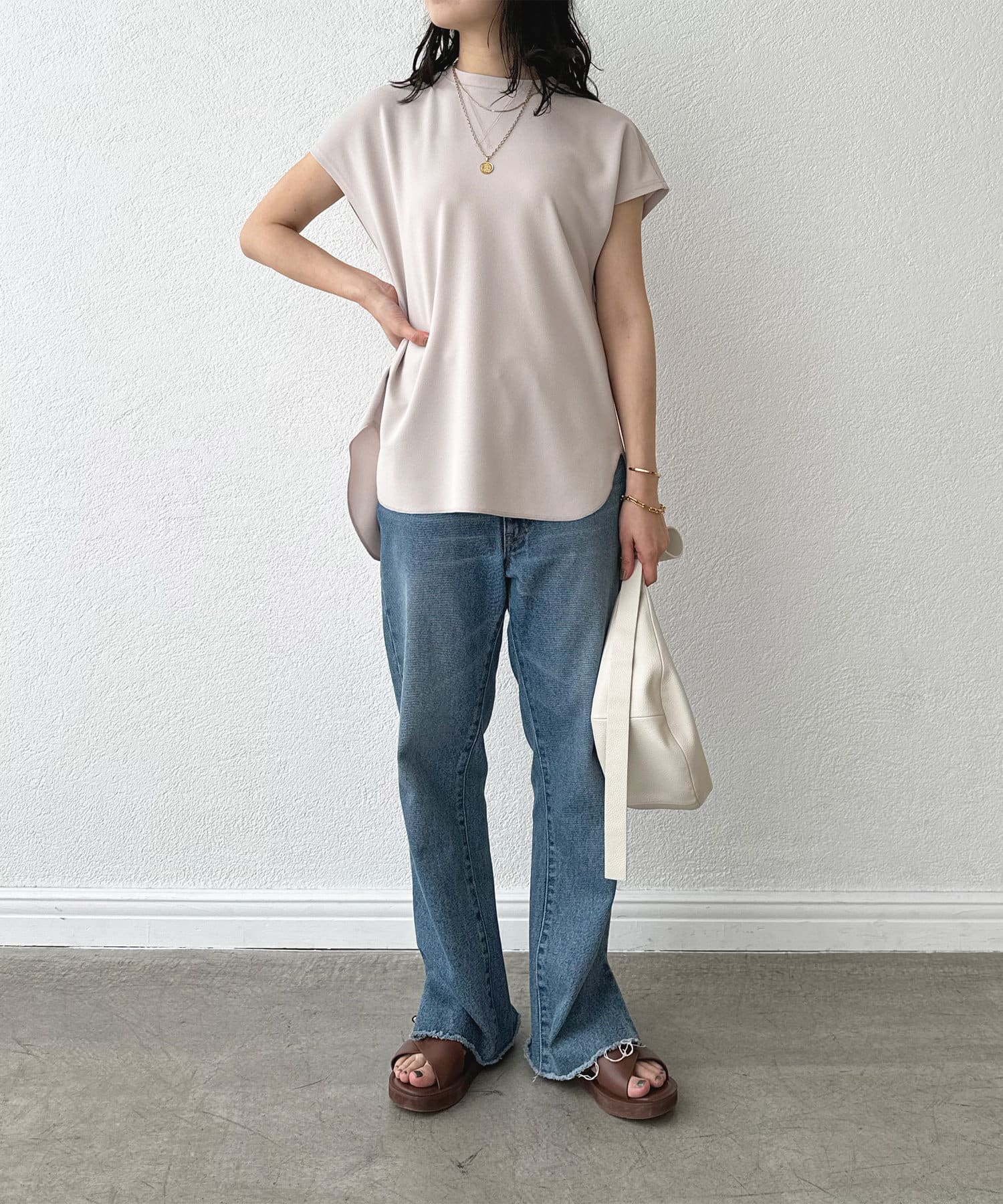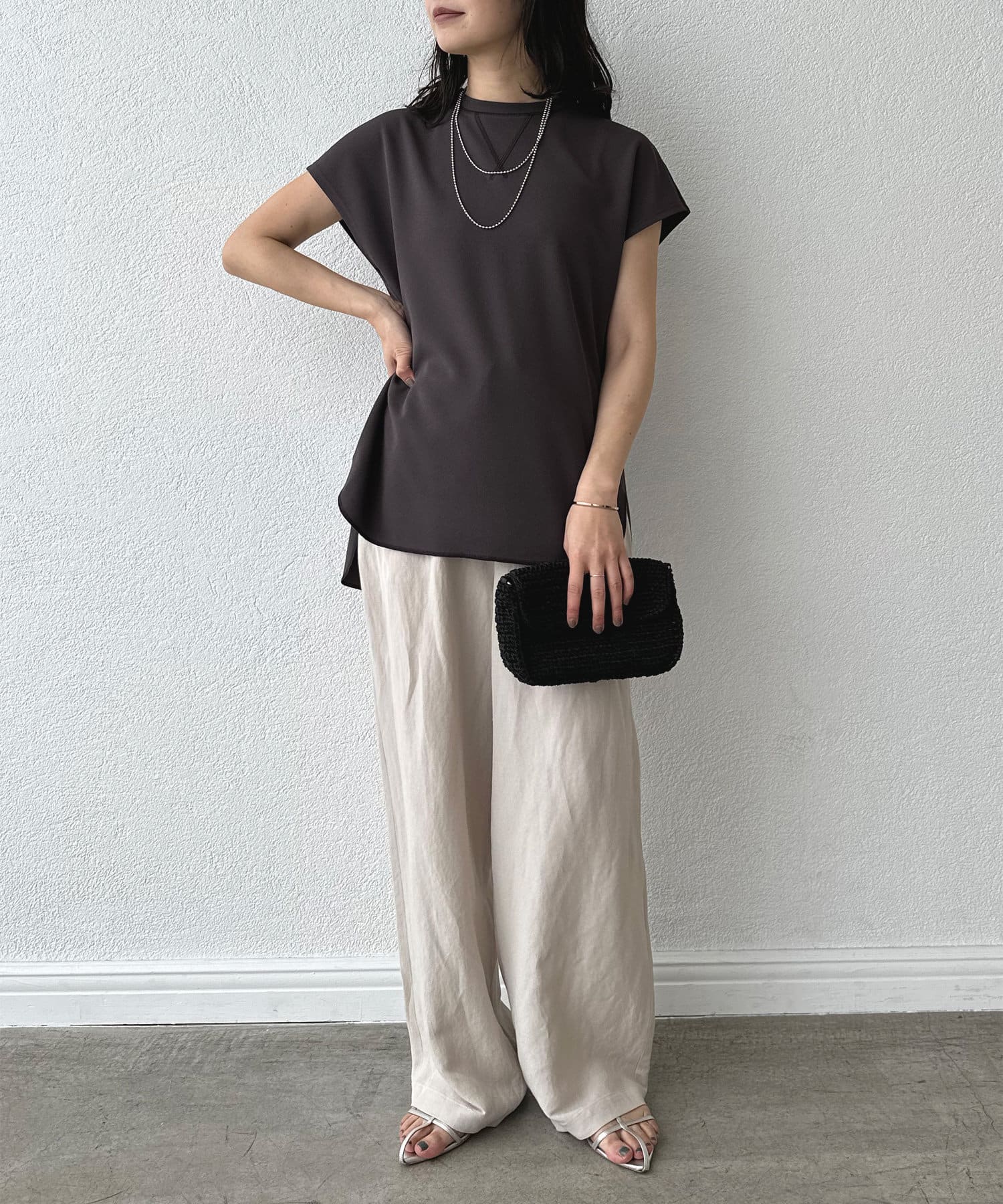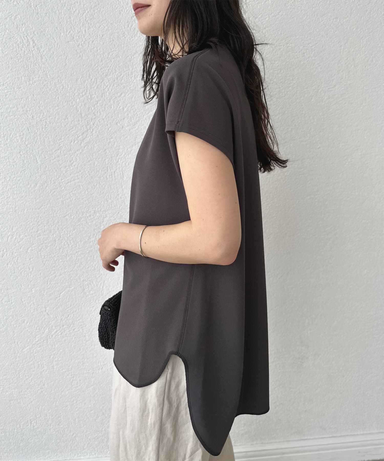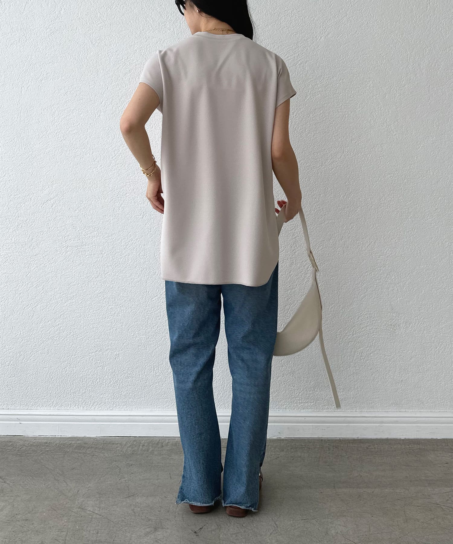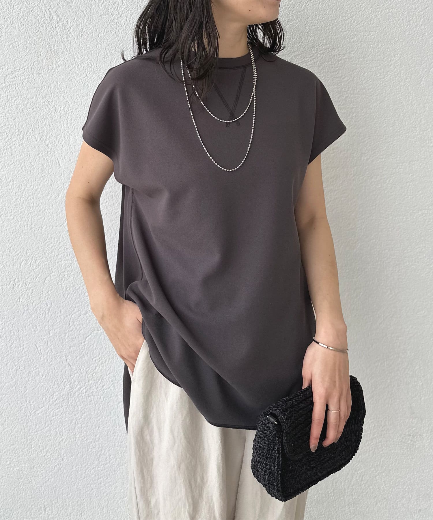 インしてもしなくても着やすい着丈、程よく身体の泳ぐシルエットですっきりと着ていただけます。