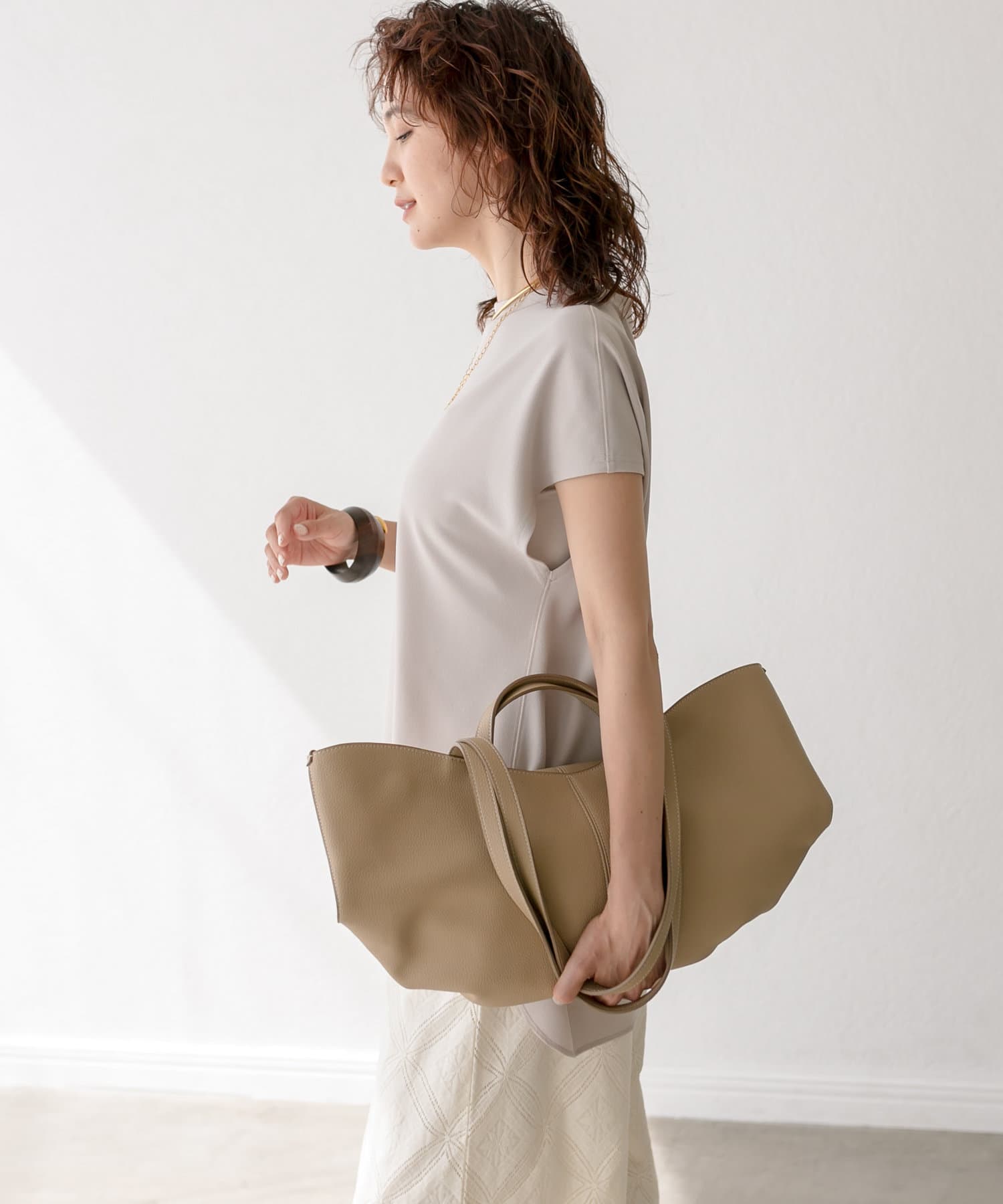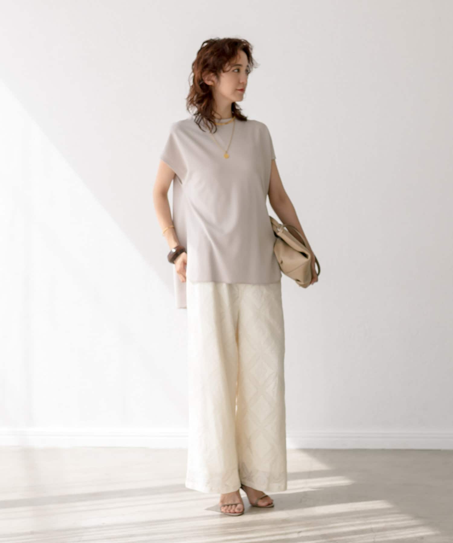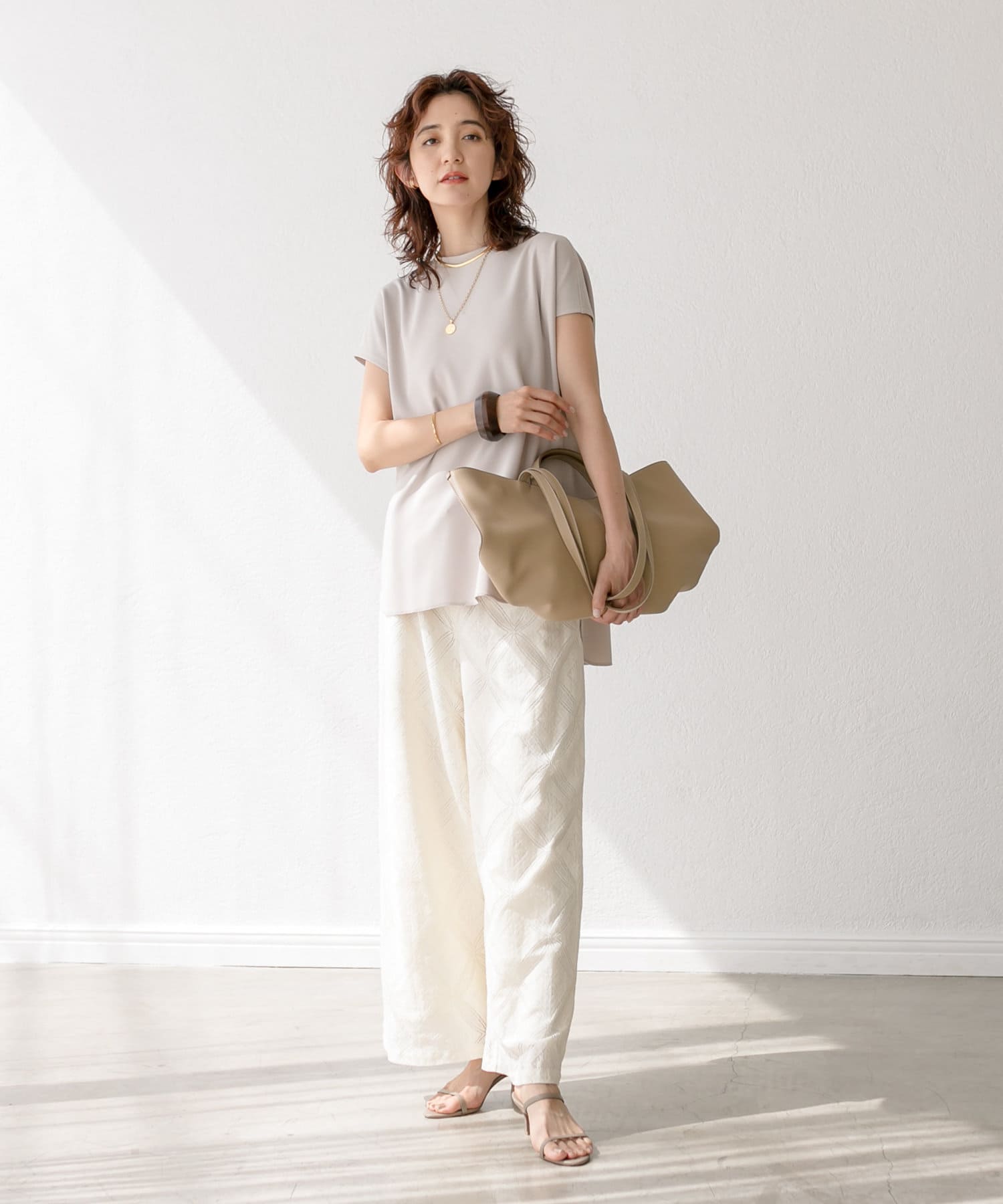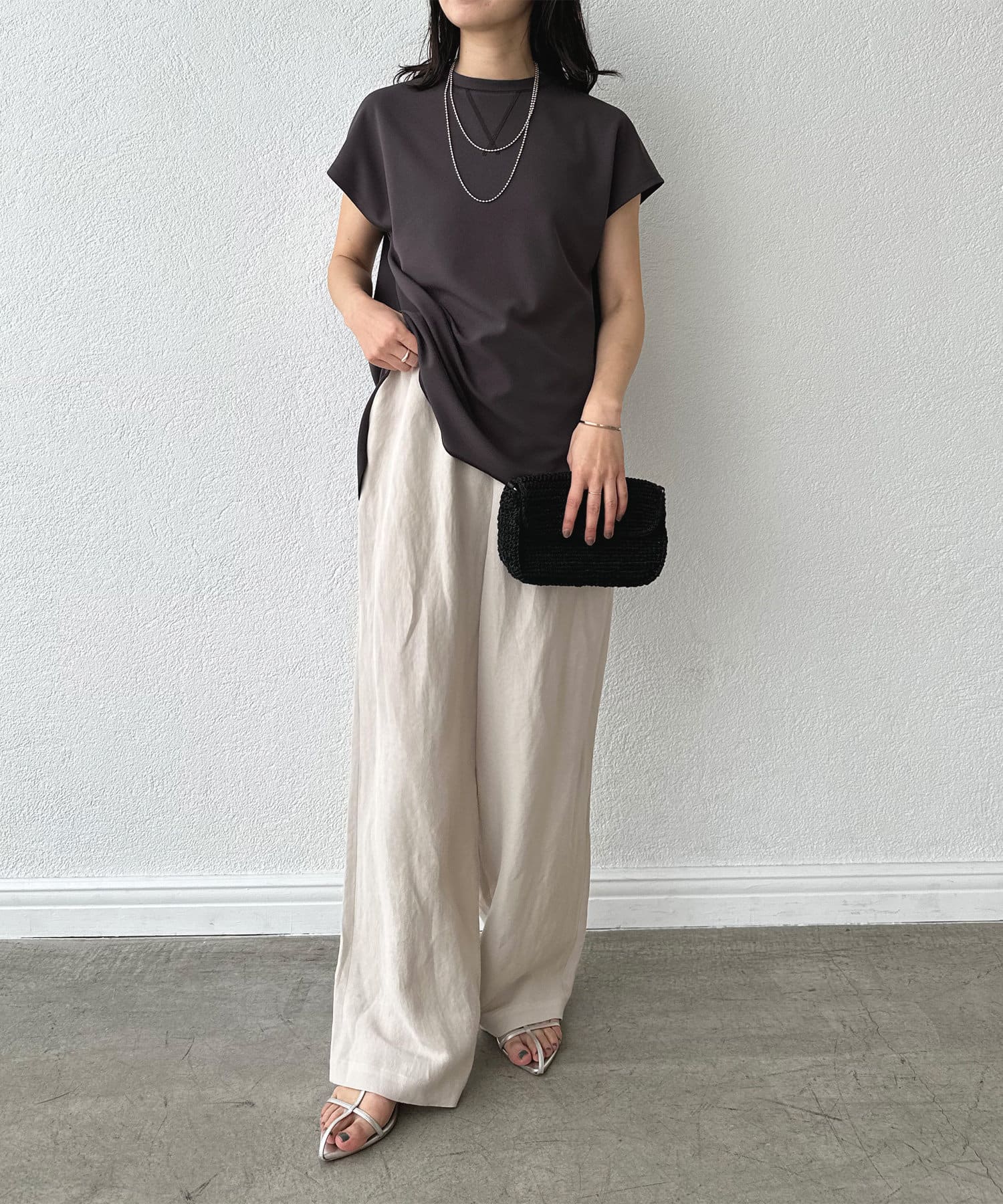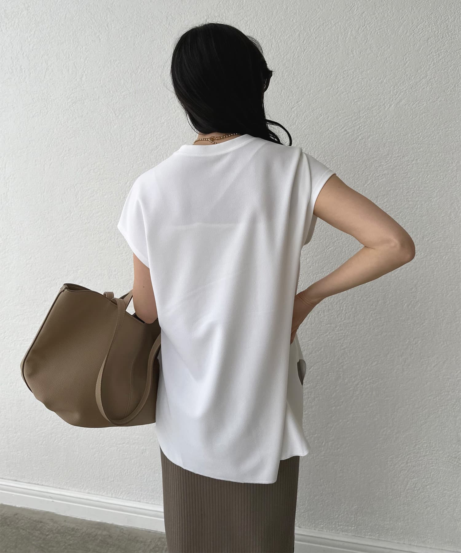 インしてもしなくても着やすい着丈、程よく身体の泳ぐシルエットですっきりと着ていただけます。