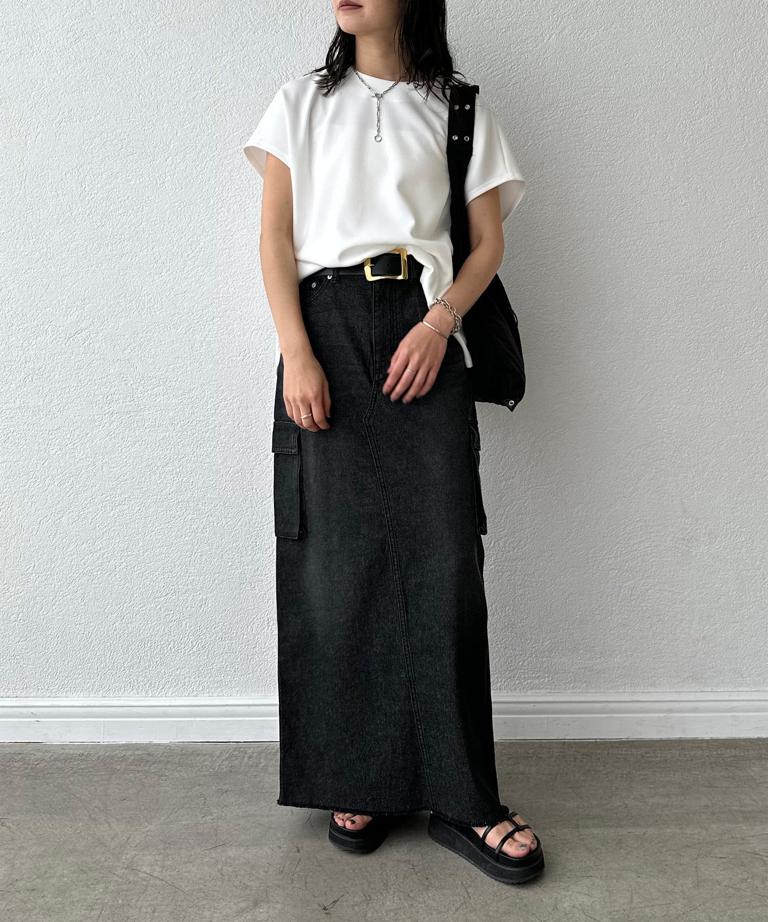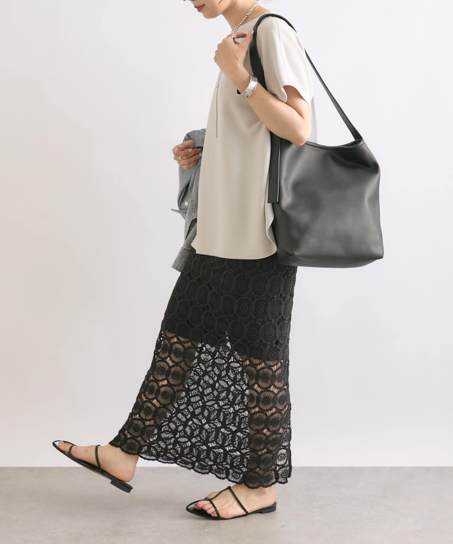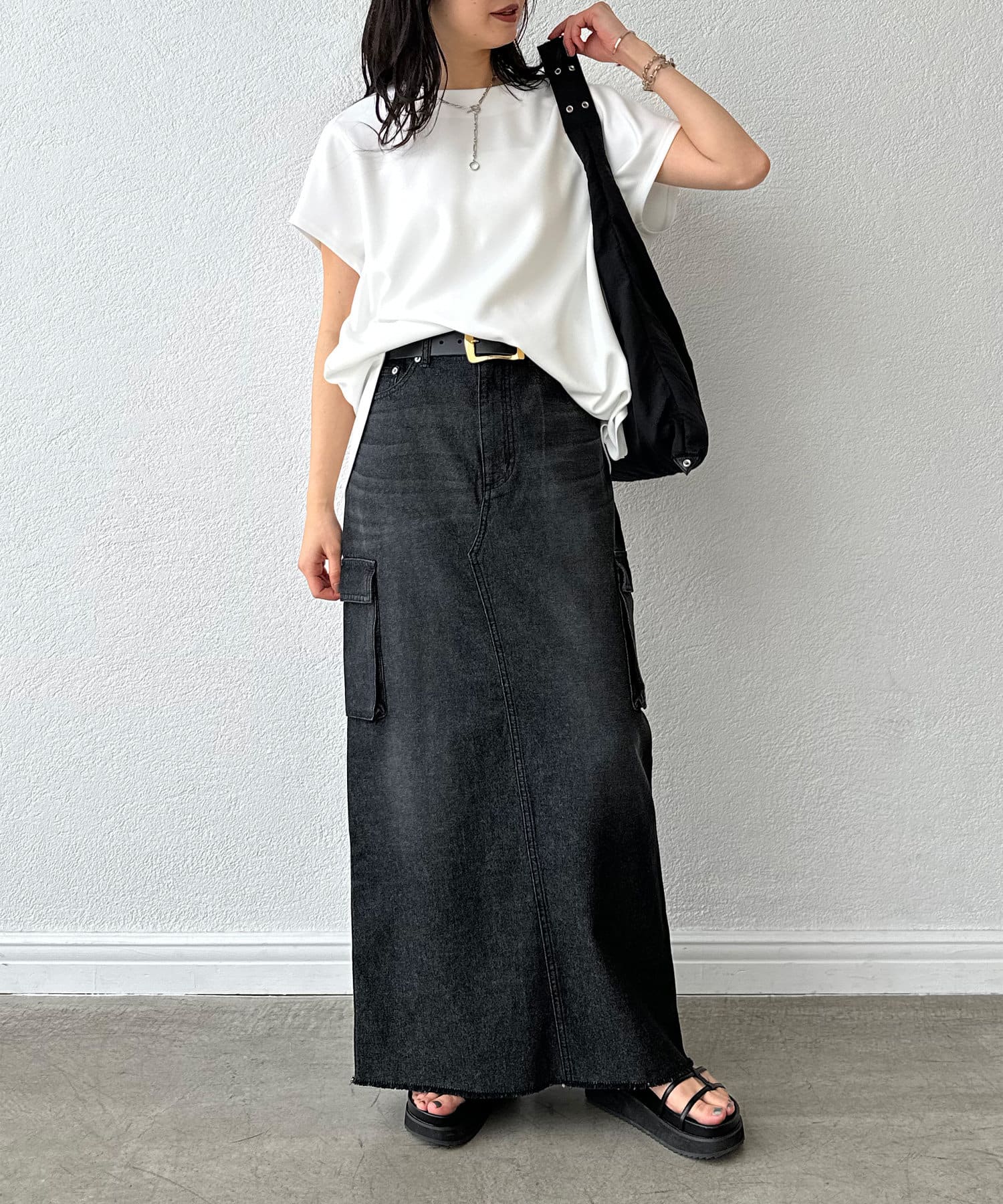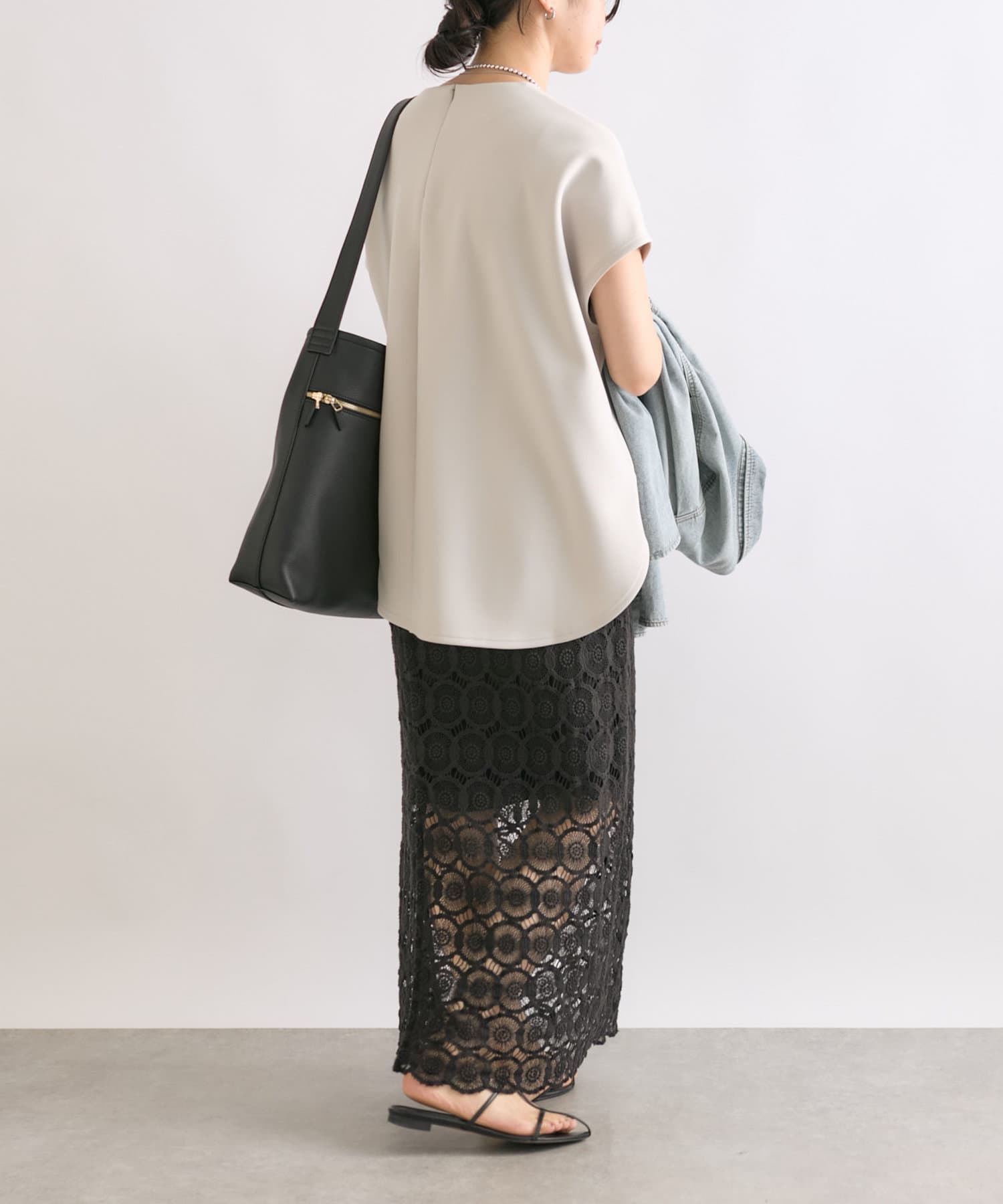 お尻がすっぽりと隠れる着丈でパンツ、スカート共に相性抜群。