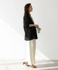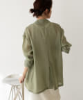 全体のサイズはオーバーサイズになっておりカジュアルでリラクシーなデザインですが、ツヤと落ち感のあるオーガンジーを使用して透明感のある仕様になっております。