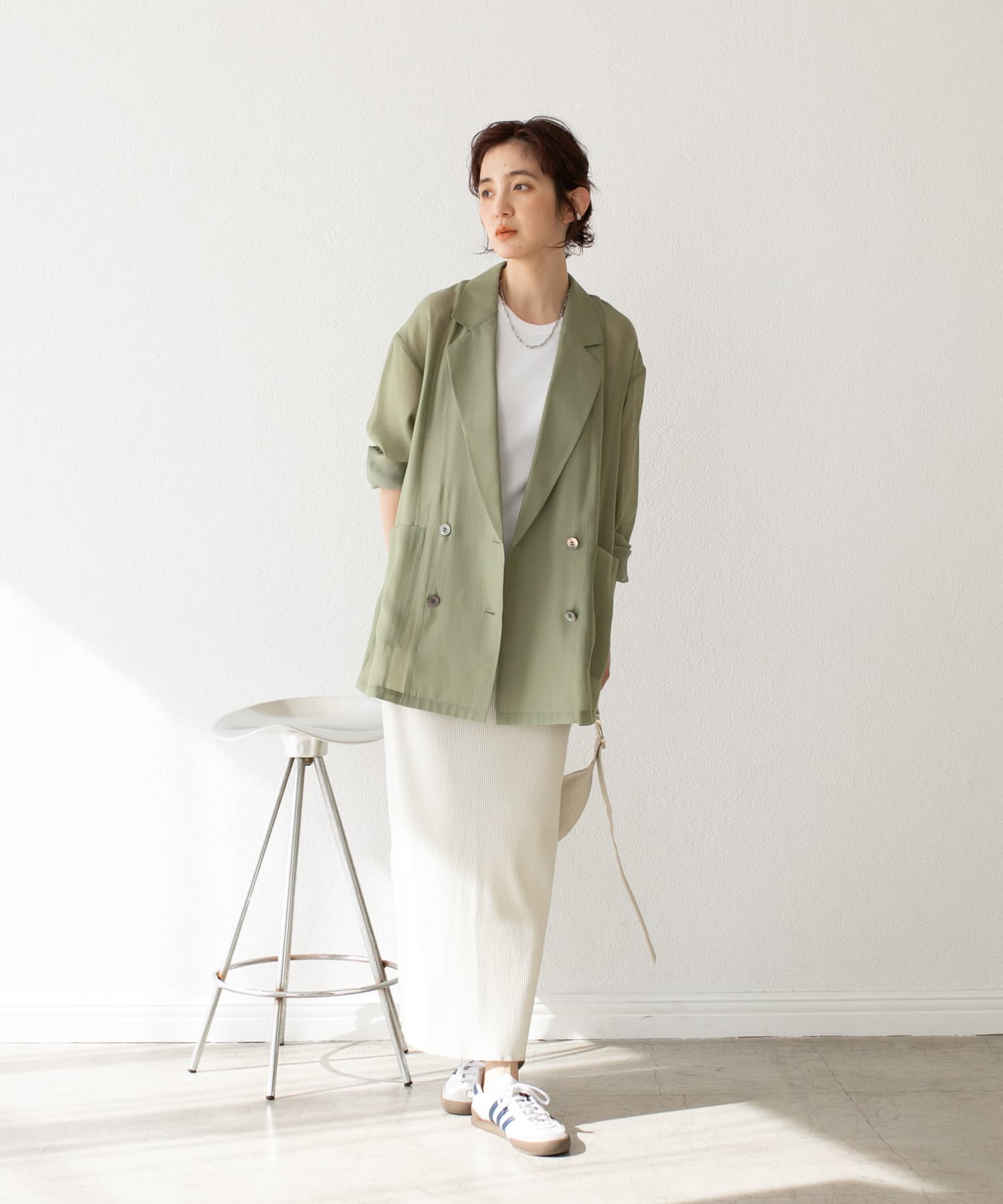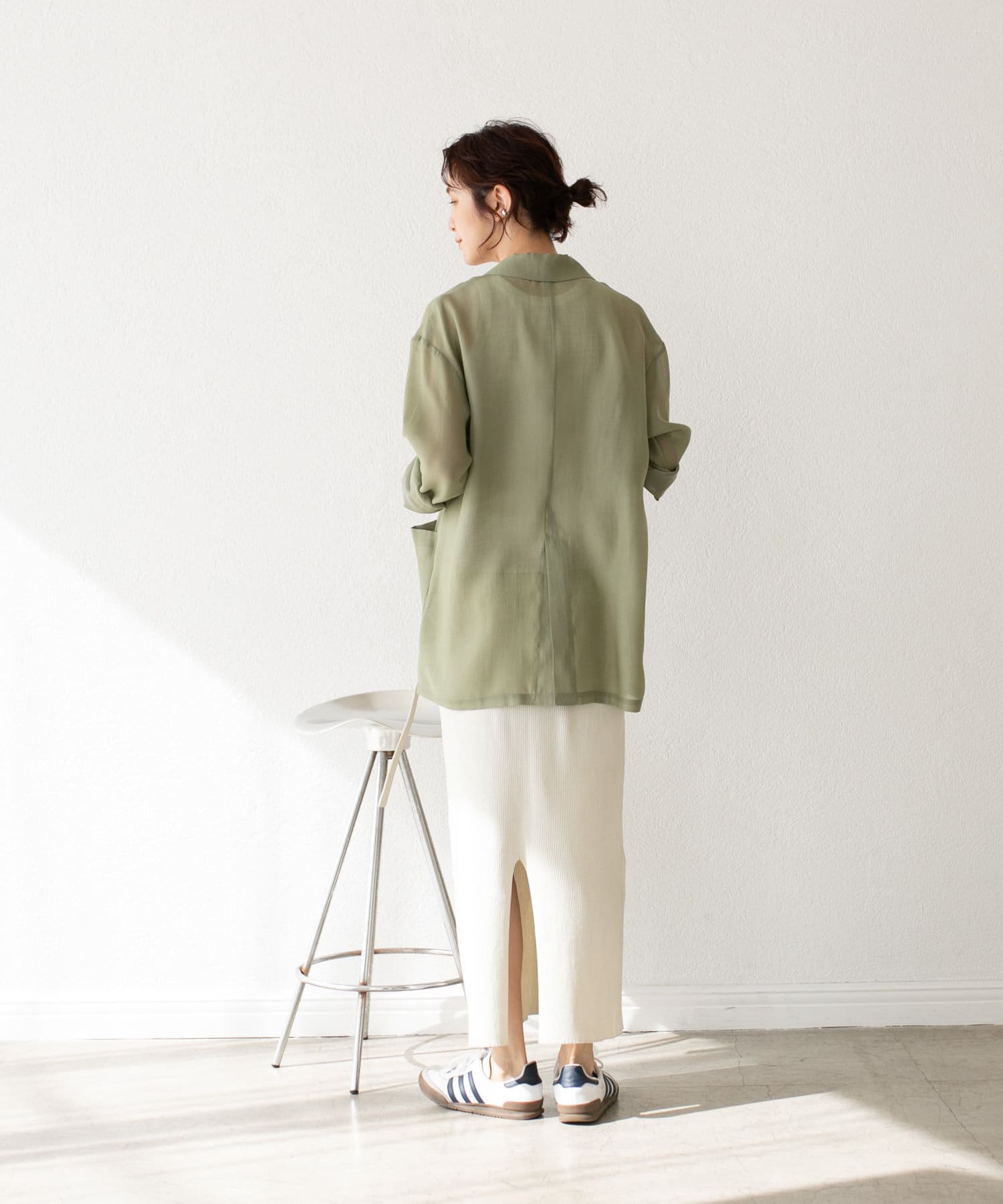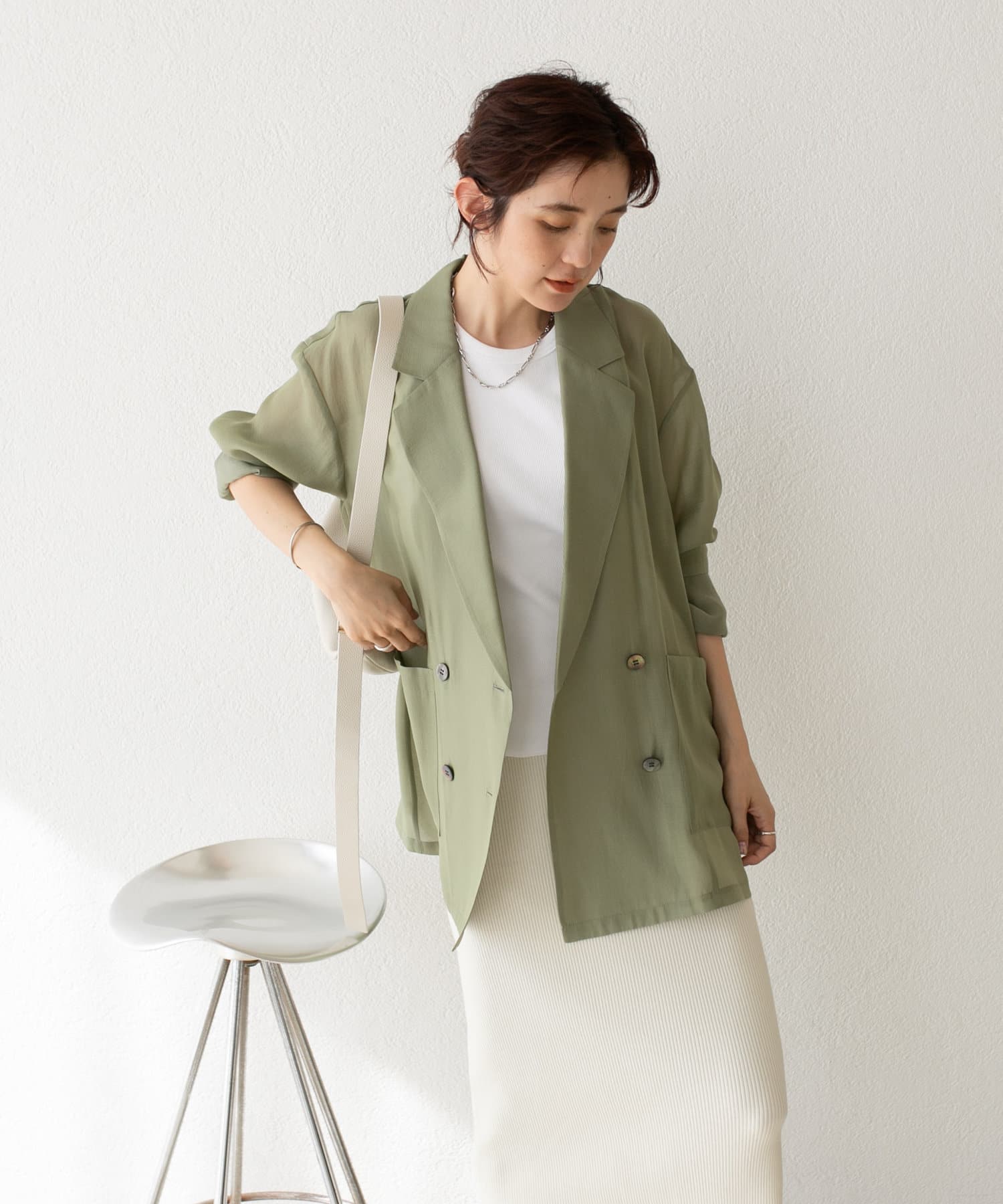 トレンドのシアー素材をジャケットに落とし込んだアイテム。