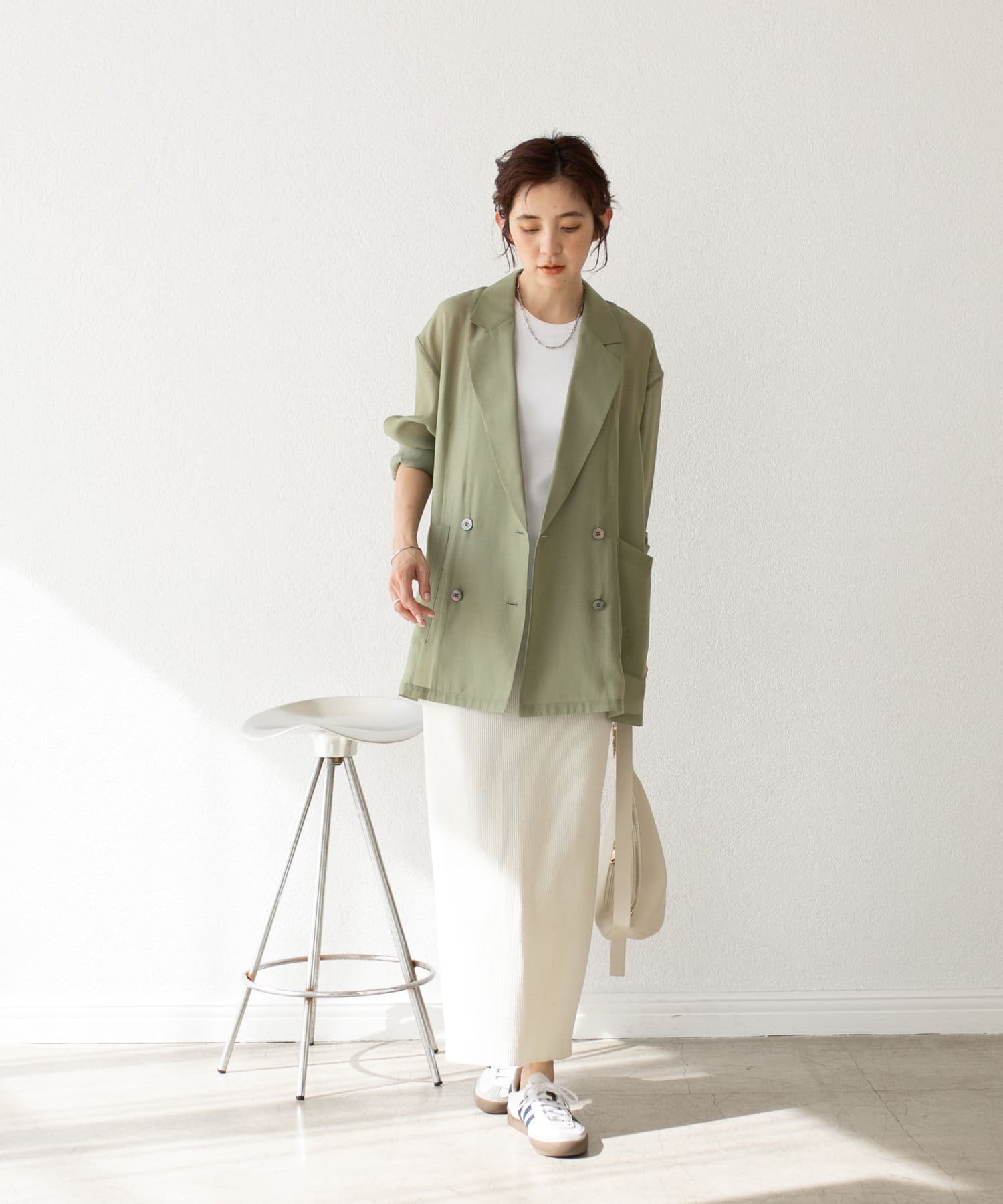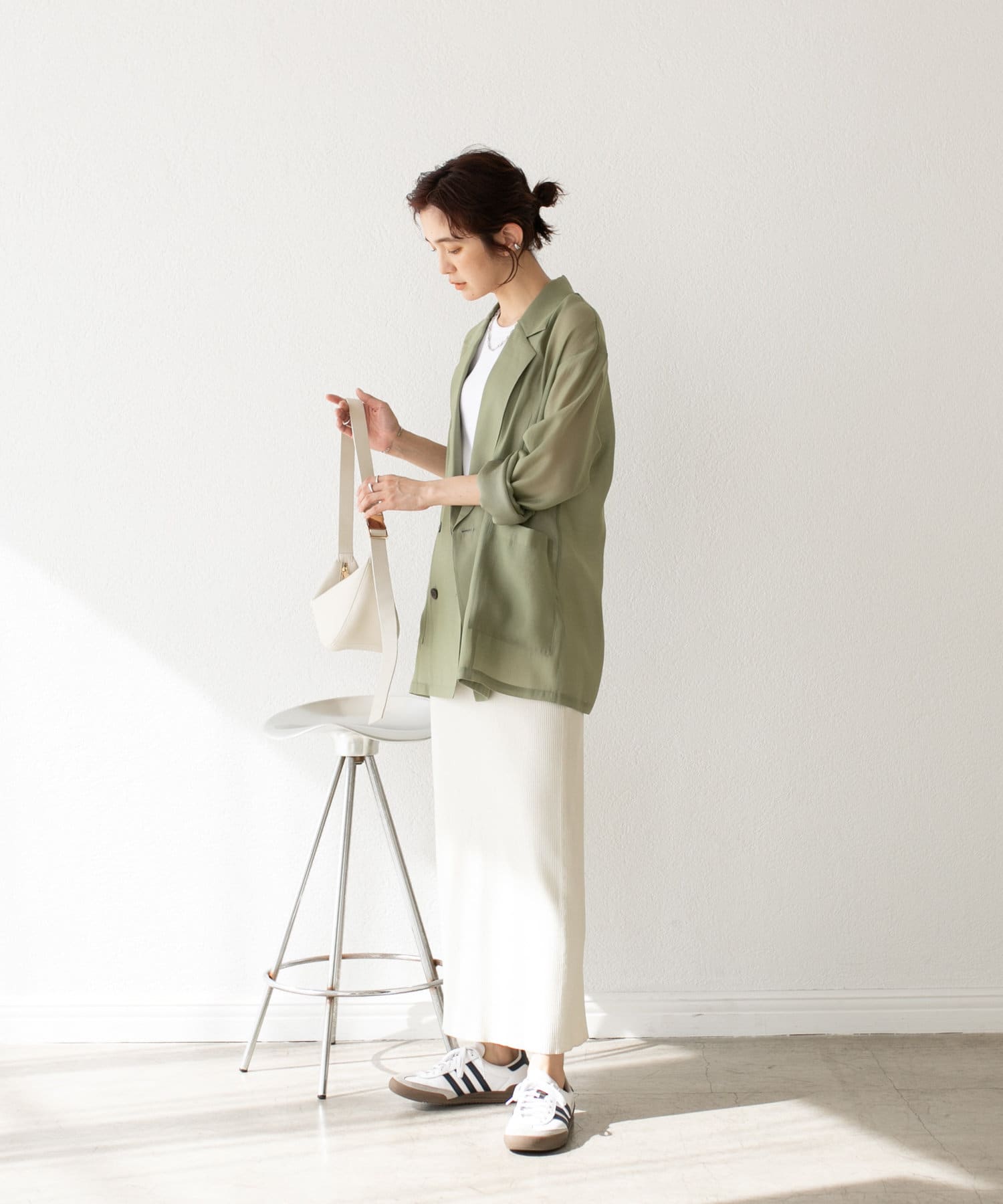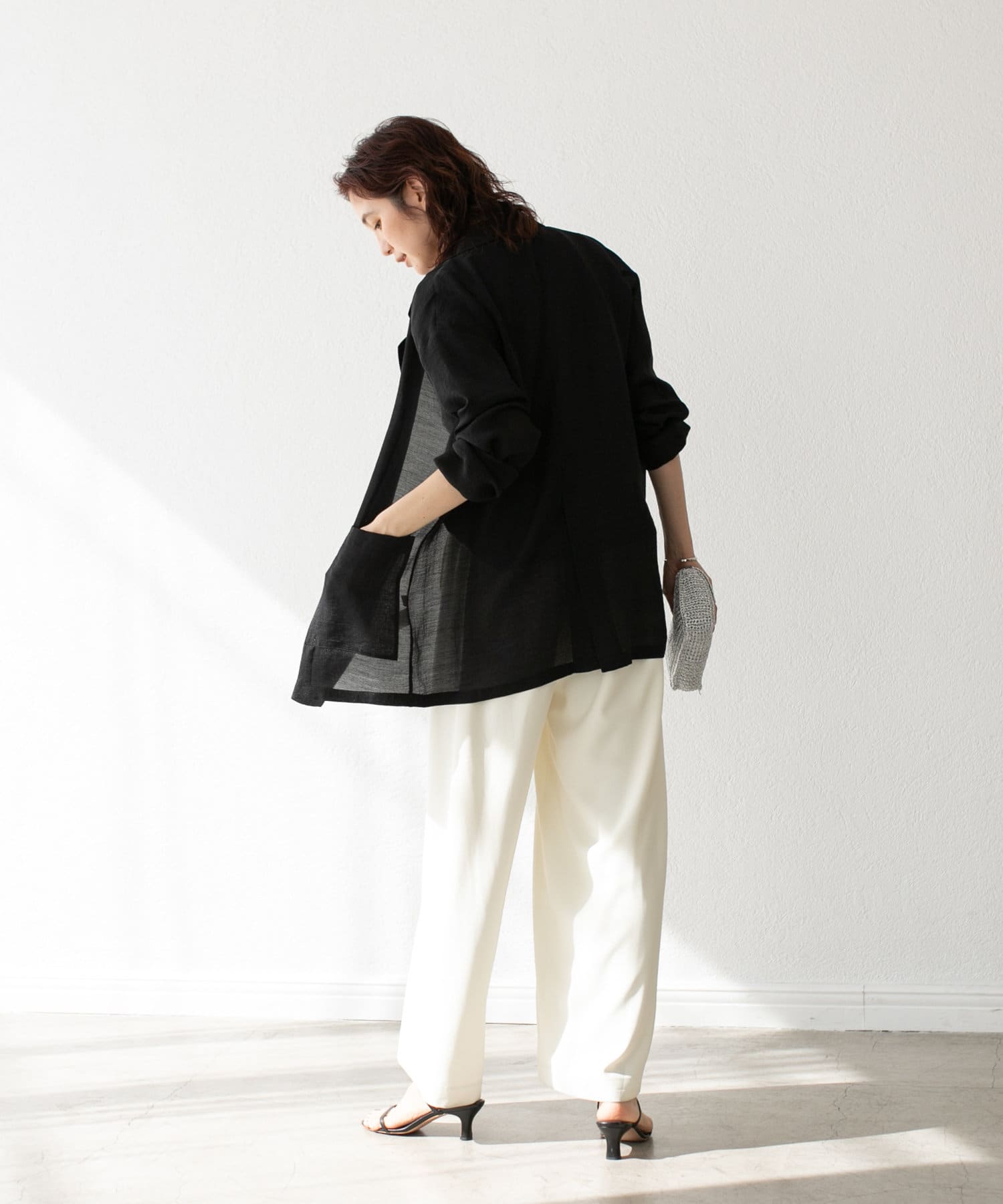 トレンドのシアー素材をジャケットに落とし込んだアイテム。