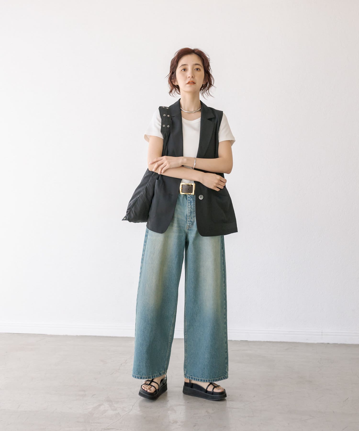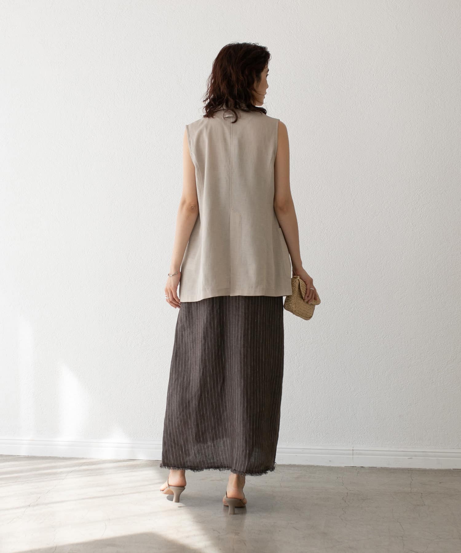ノースリーブやタンクトップなど肌の露出が多くなってくる時期におすすめしたいジレ。