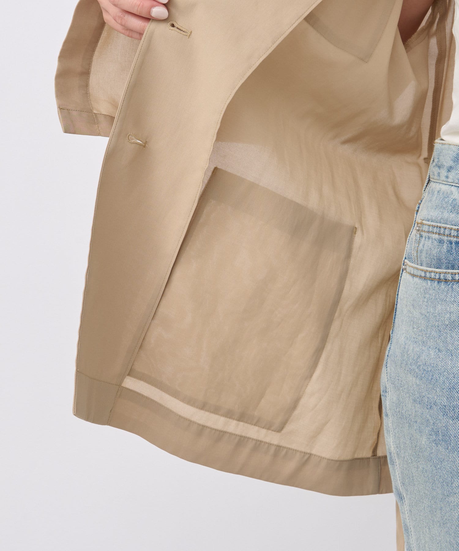 程よいシアー感のダンガリー素材で、春から秋までさらっと羽織っていただけます。