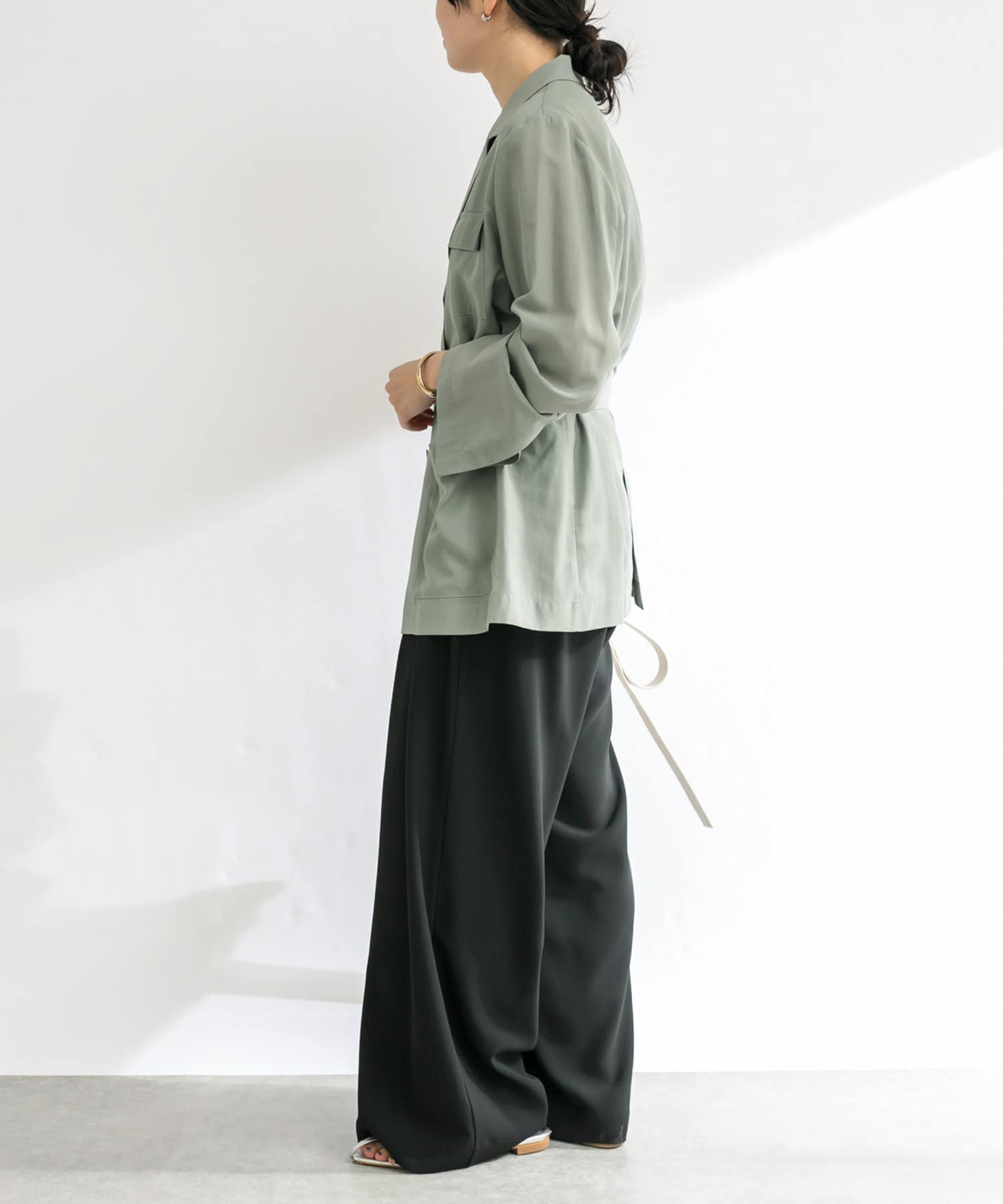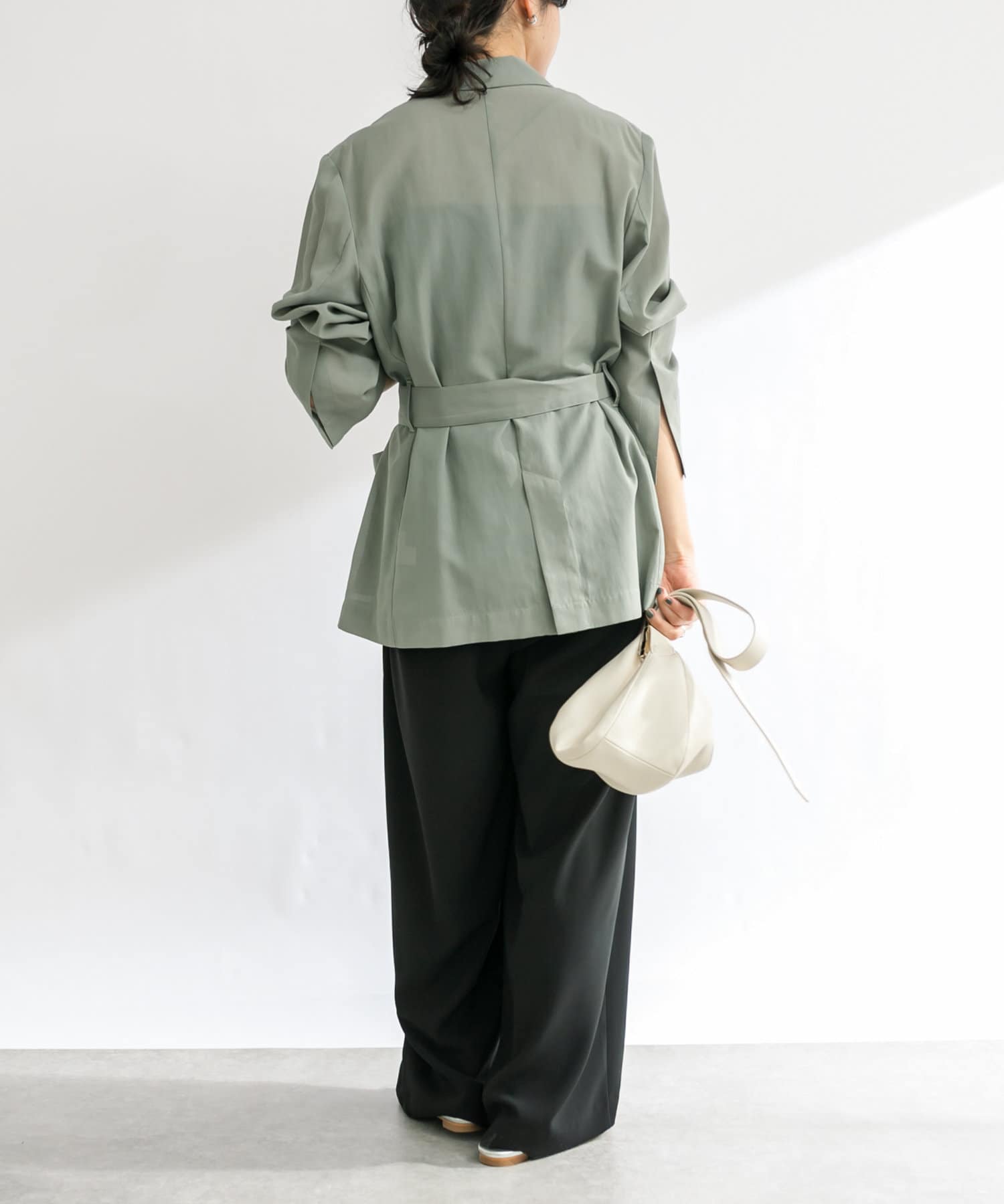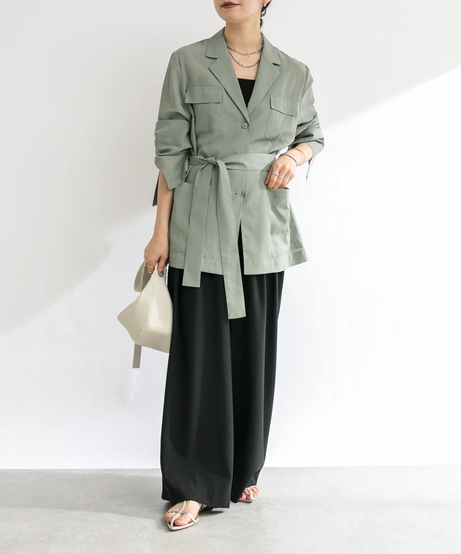 ウエストベルト付きなので、ウエストマークしていただいてもかっこいいですが、ワイドパンツやデニムにインしていただく着こなしもトレンド感が出ておすすめです。