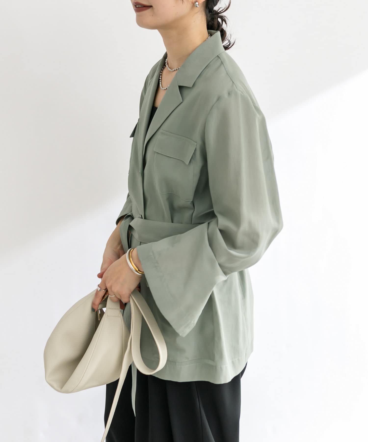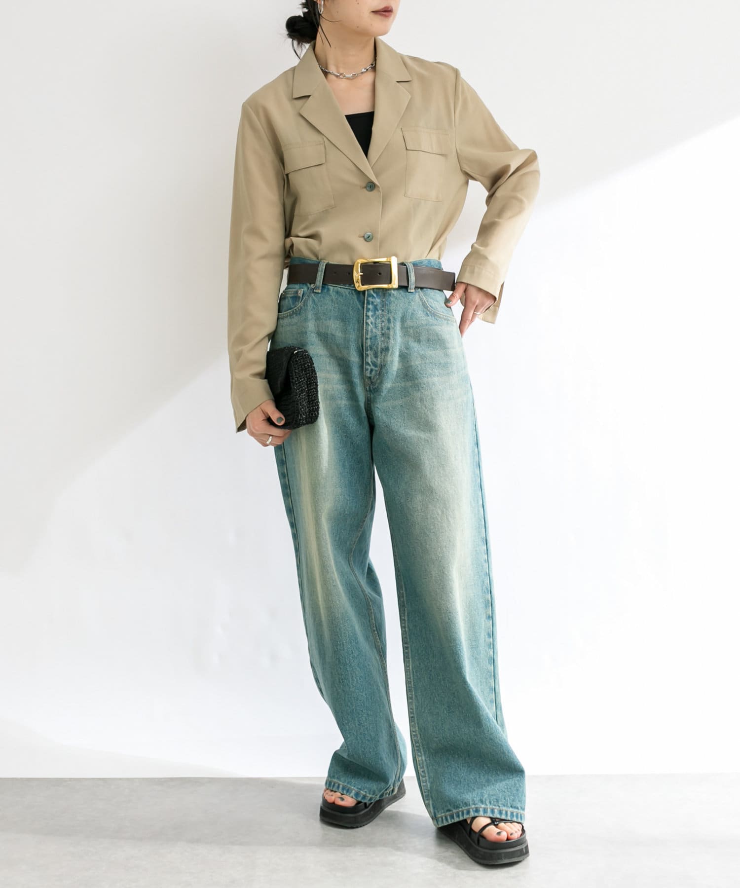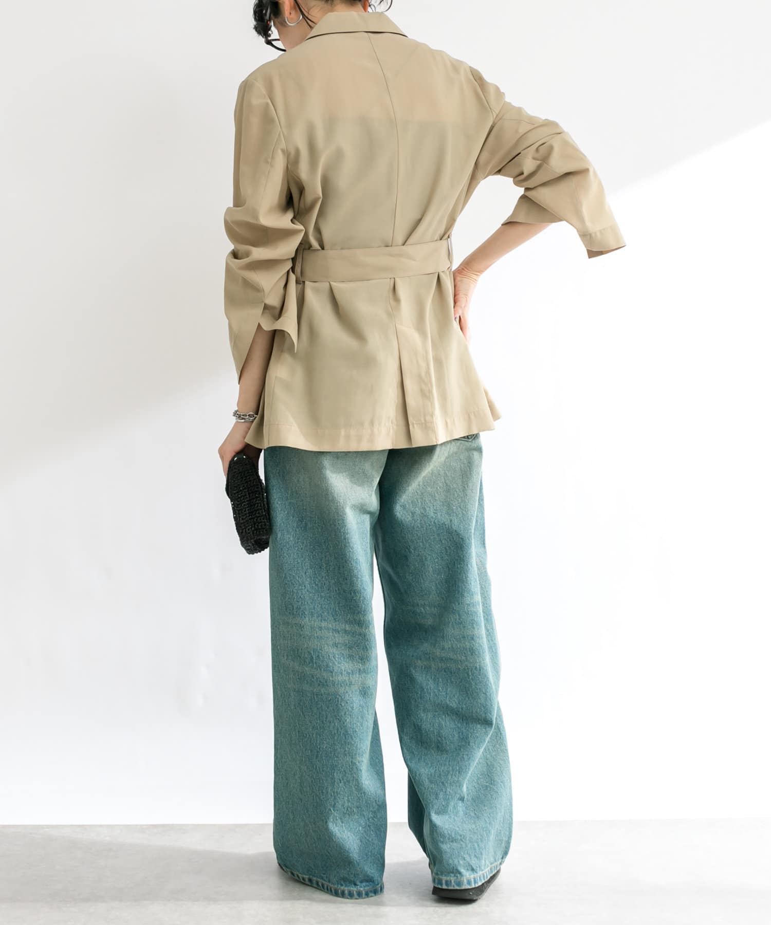 ウエストベルト付きなので、ウエストマークしていただいてもかっこいいですが、ワイドパンツやデニムにインしていただく着こなしもトレンド感が出ておすすめです。