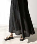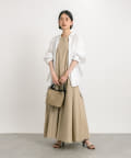 裾に向かって広がるフレアシルエットですが、上半身が華奢見えするように肩周りはコンパクトめなサイズ感に仕上げています。