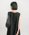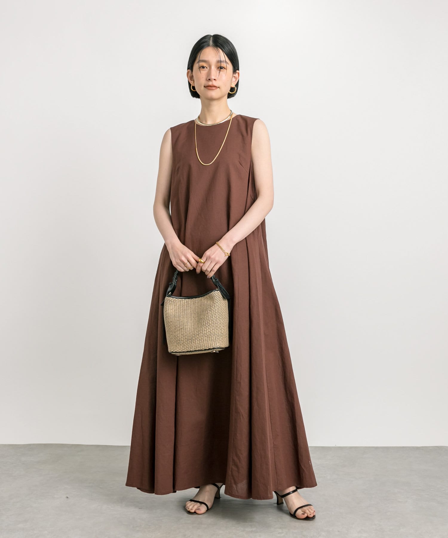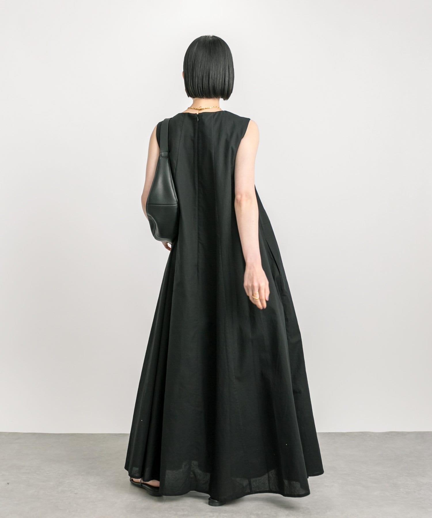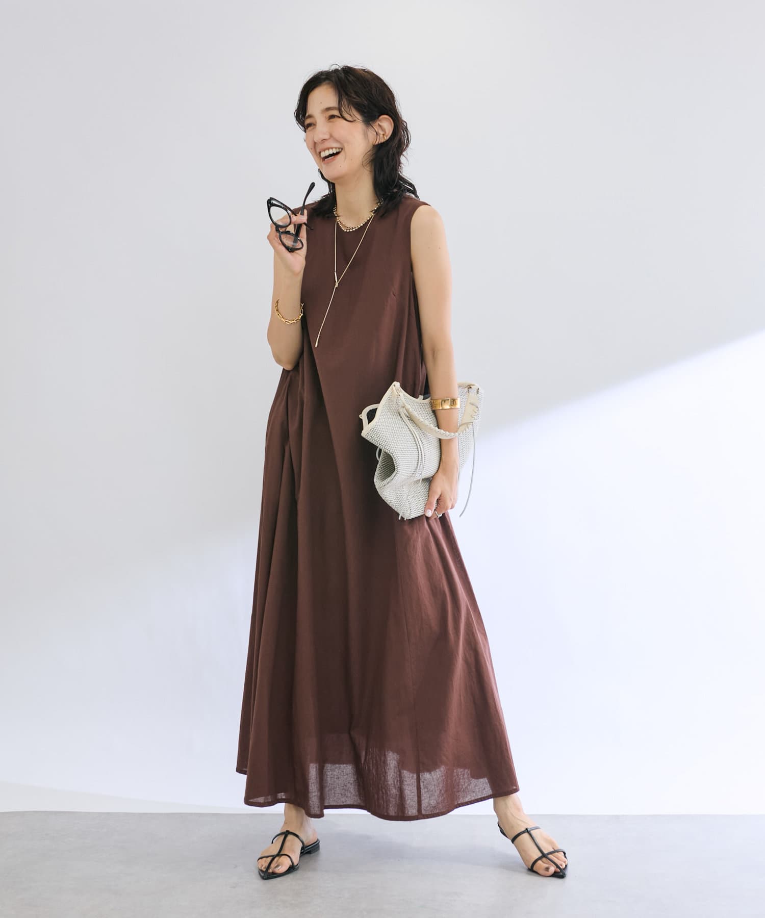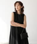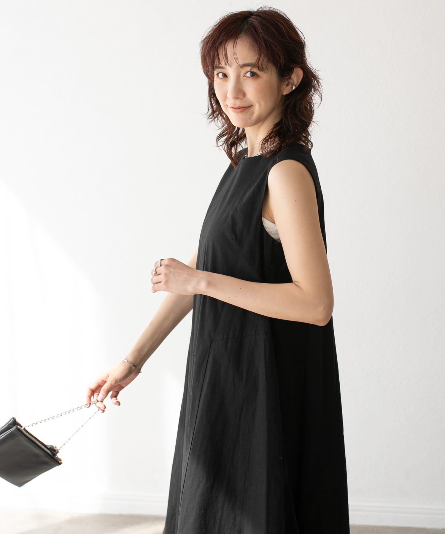 コンパクトな肩回りで華奢見えするシンプルワンピース