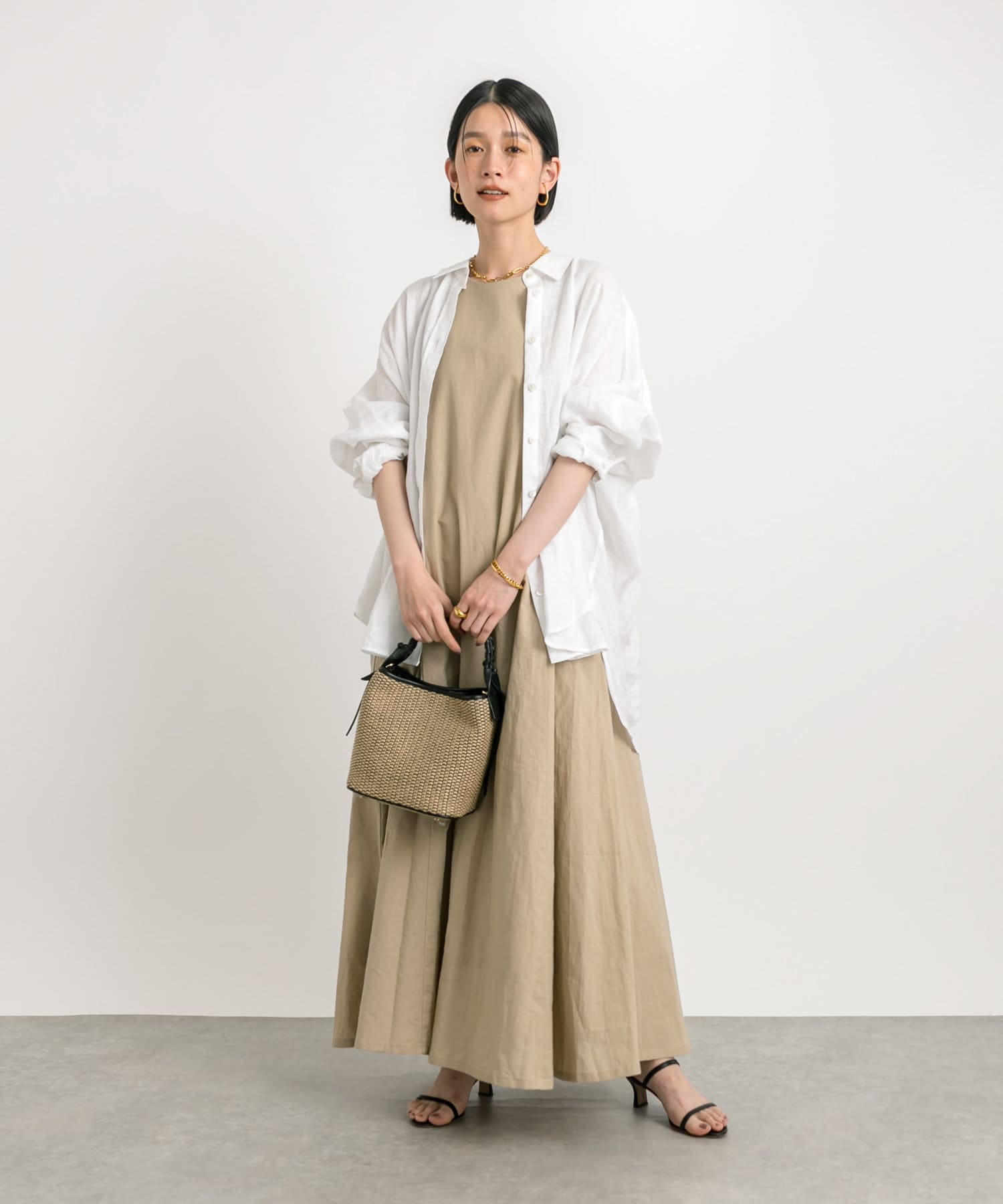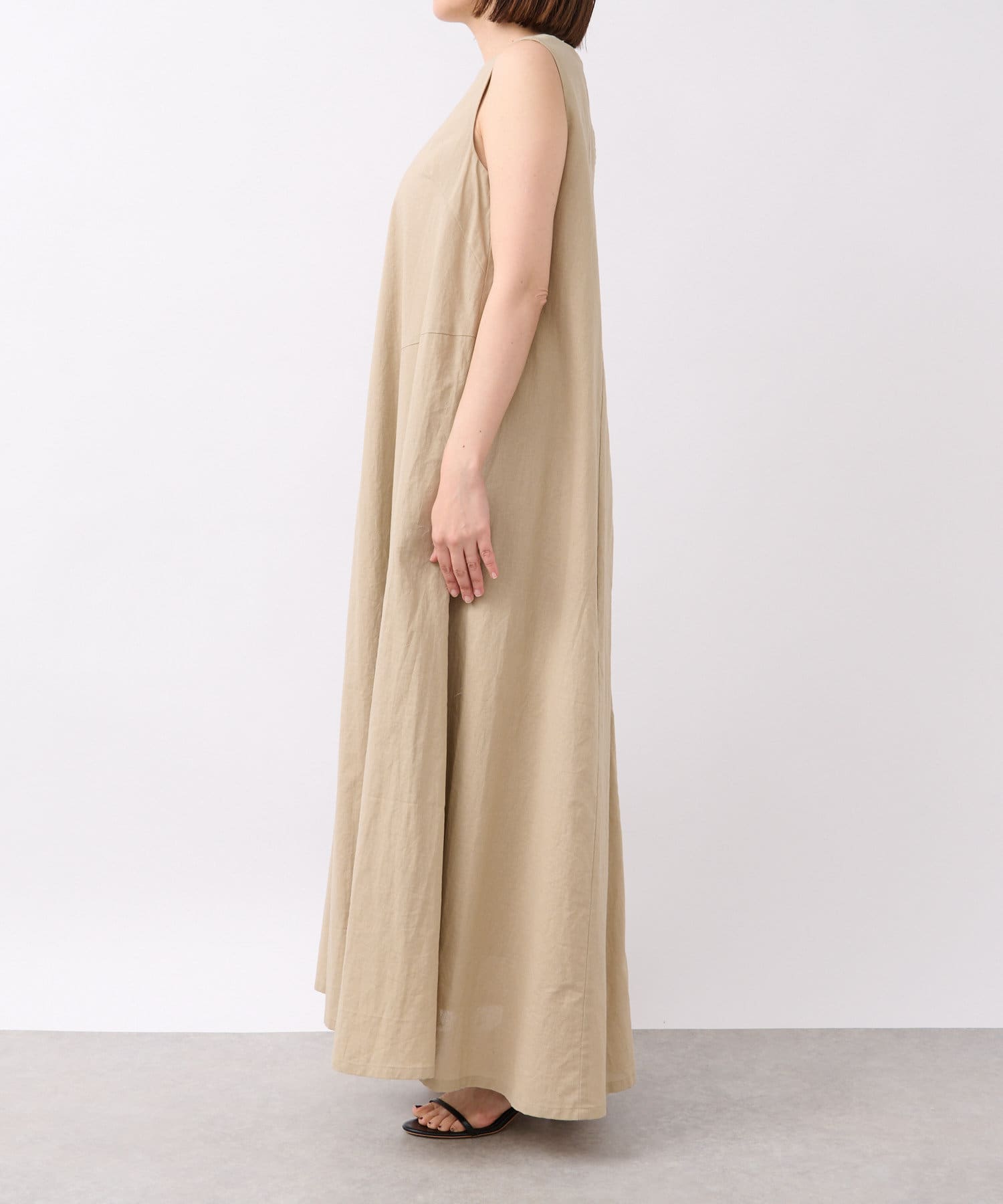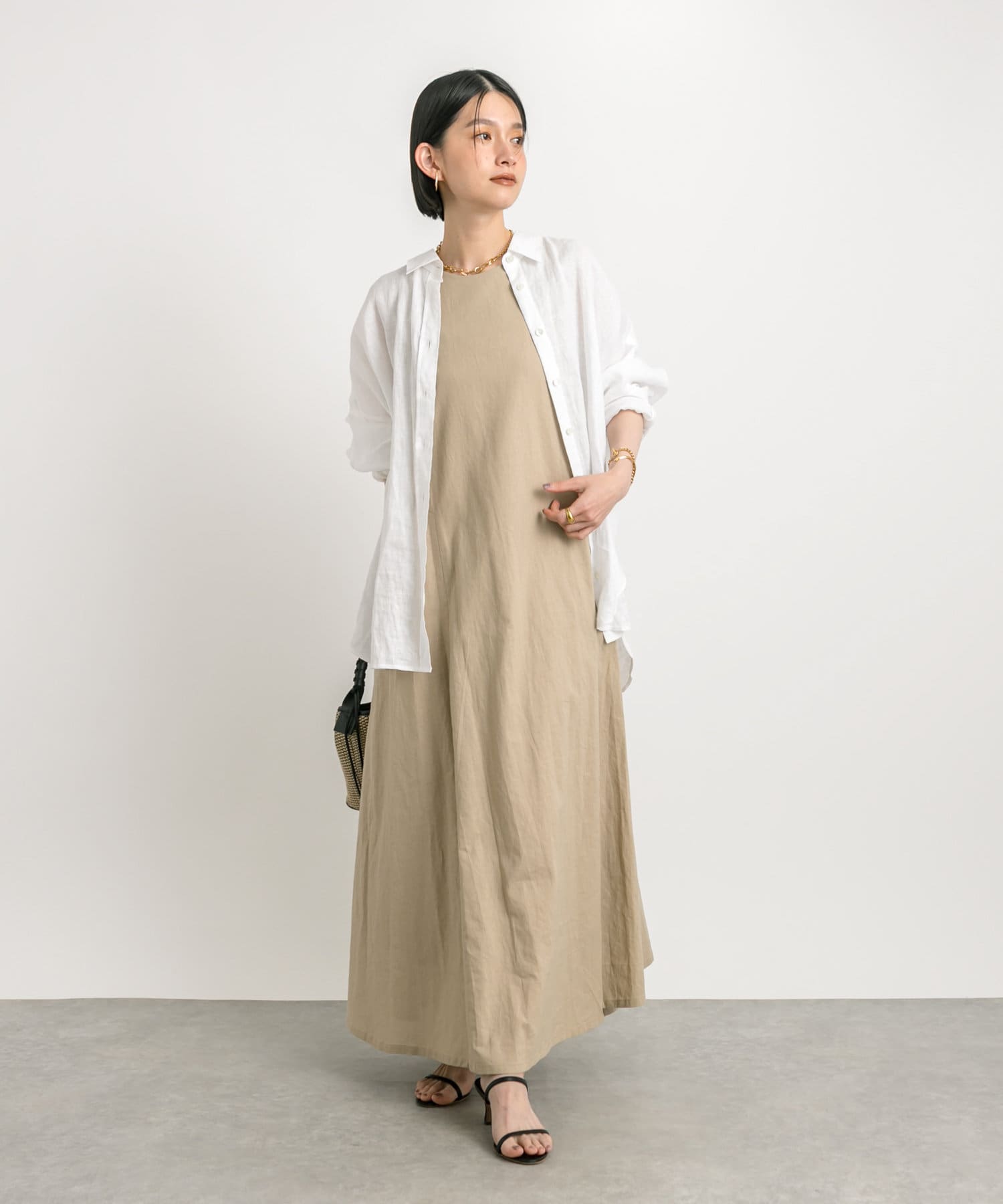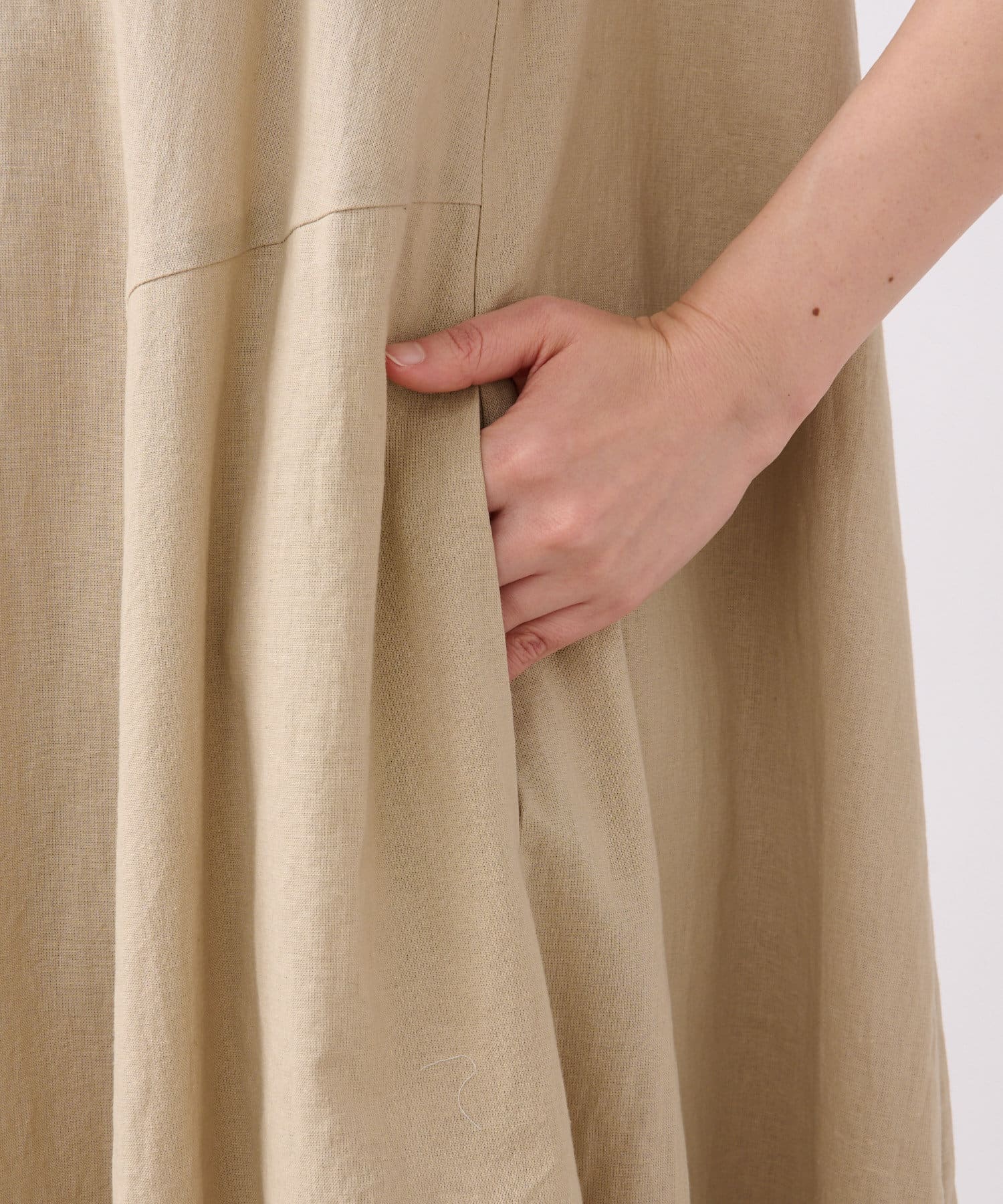 柔らかい風合いのリネンコットン素材を使用したワンピース。