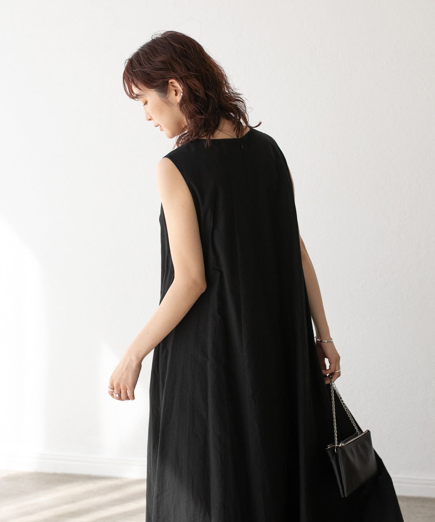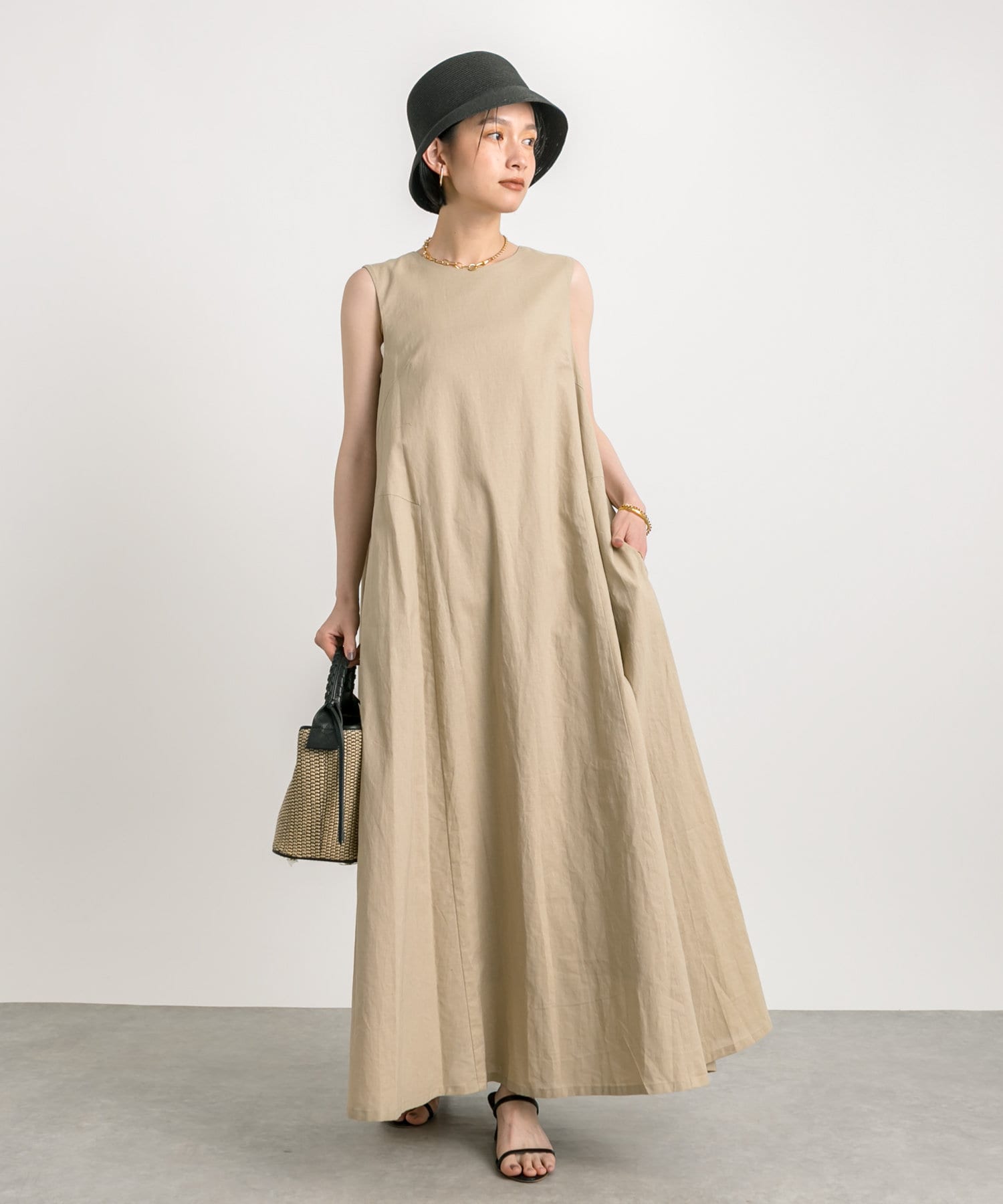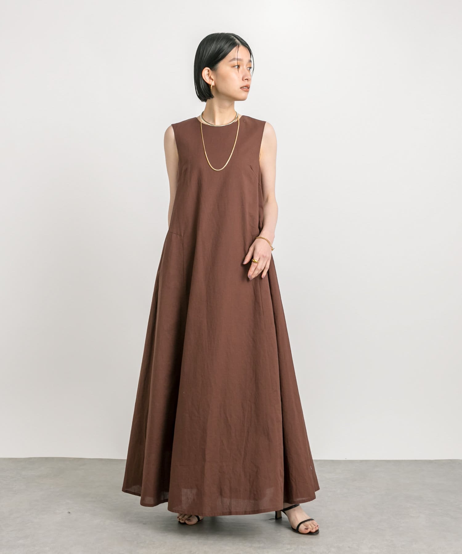 柔らかい風合いのリネンコットン素材を使用したワンピース。