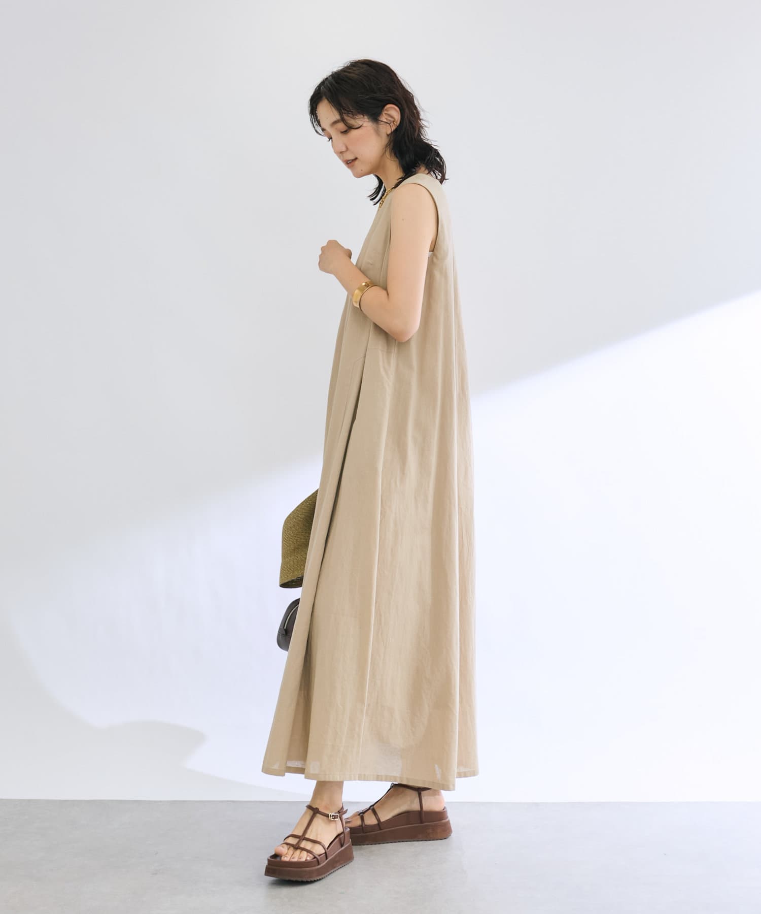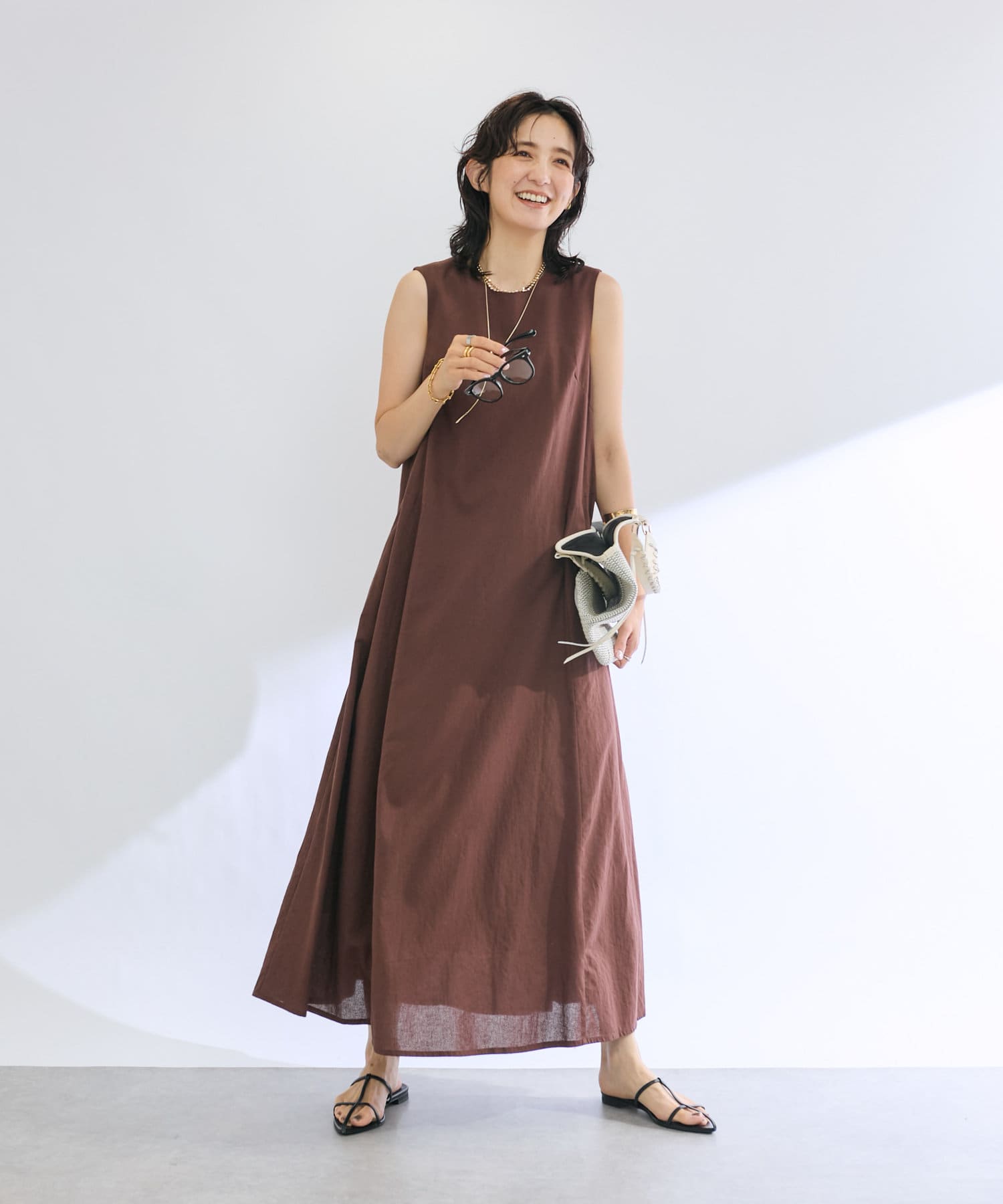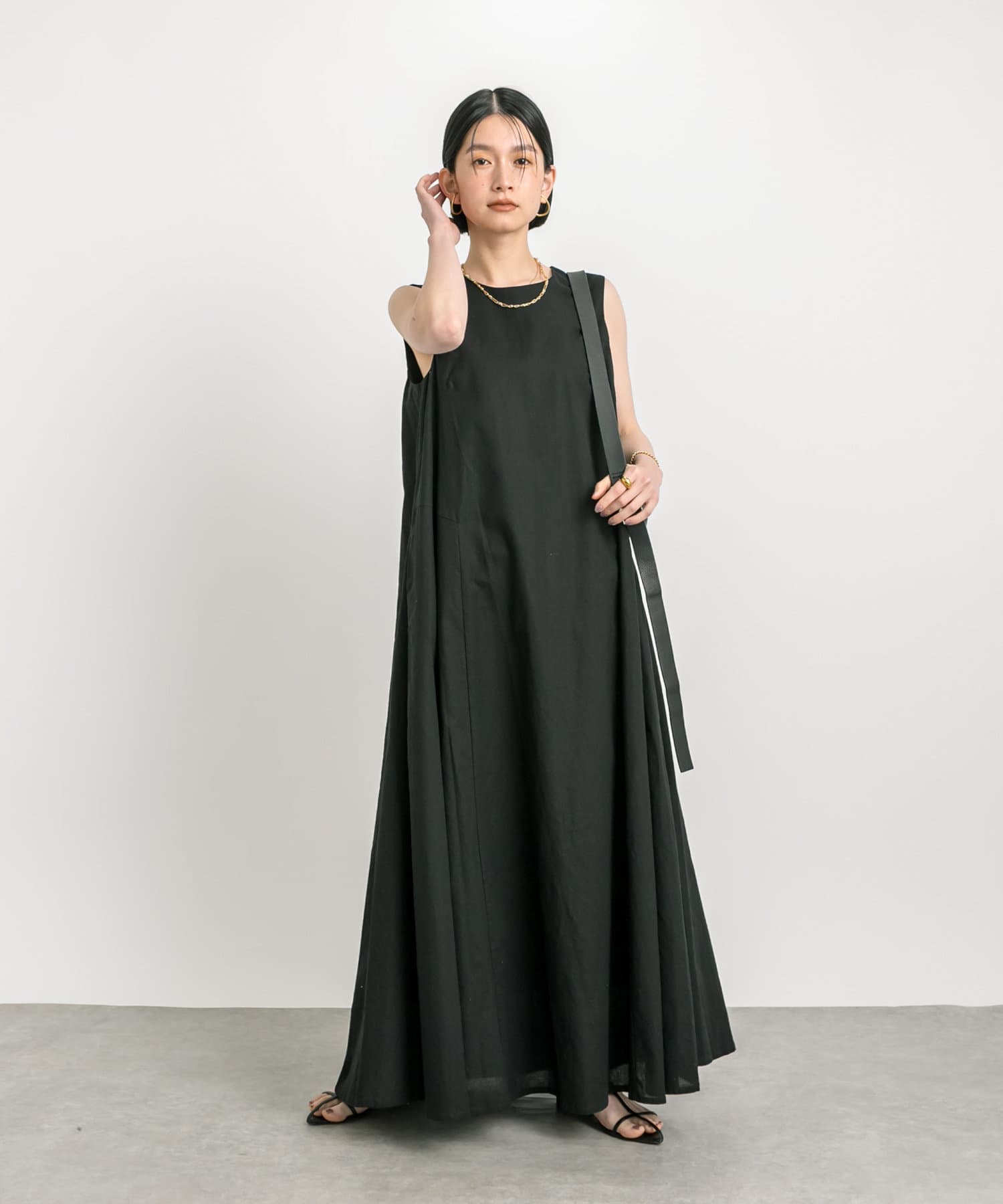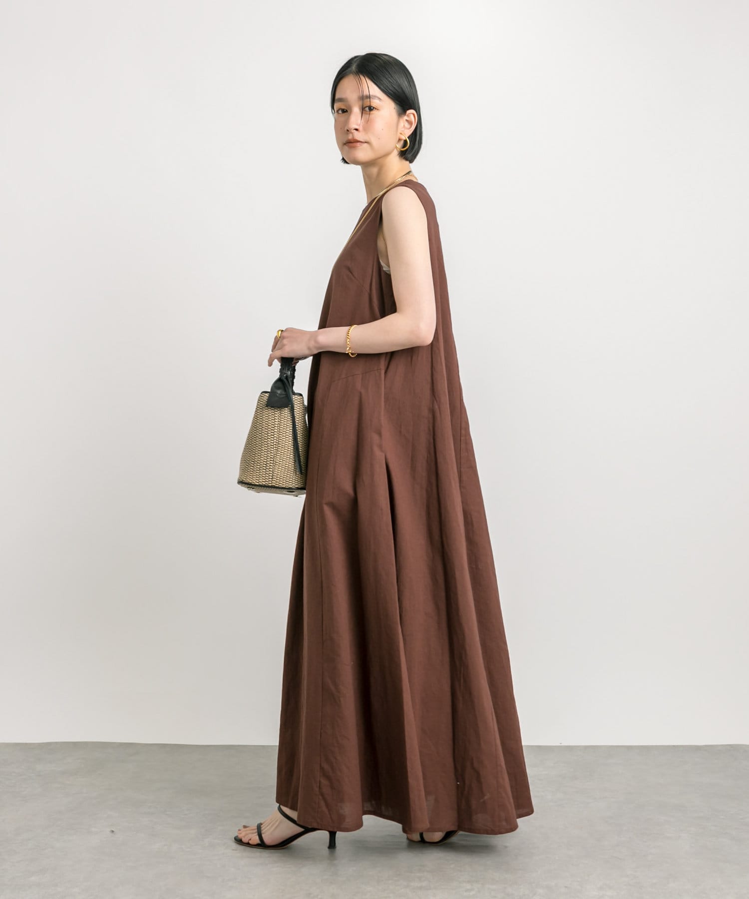 柔らかい風合いのリネンコットン素材を使用したワンピース。