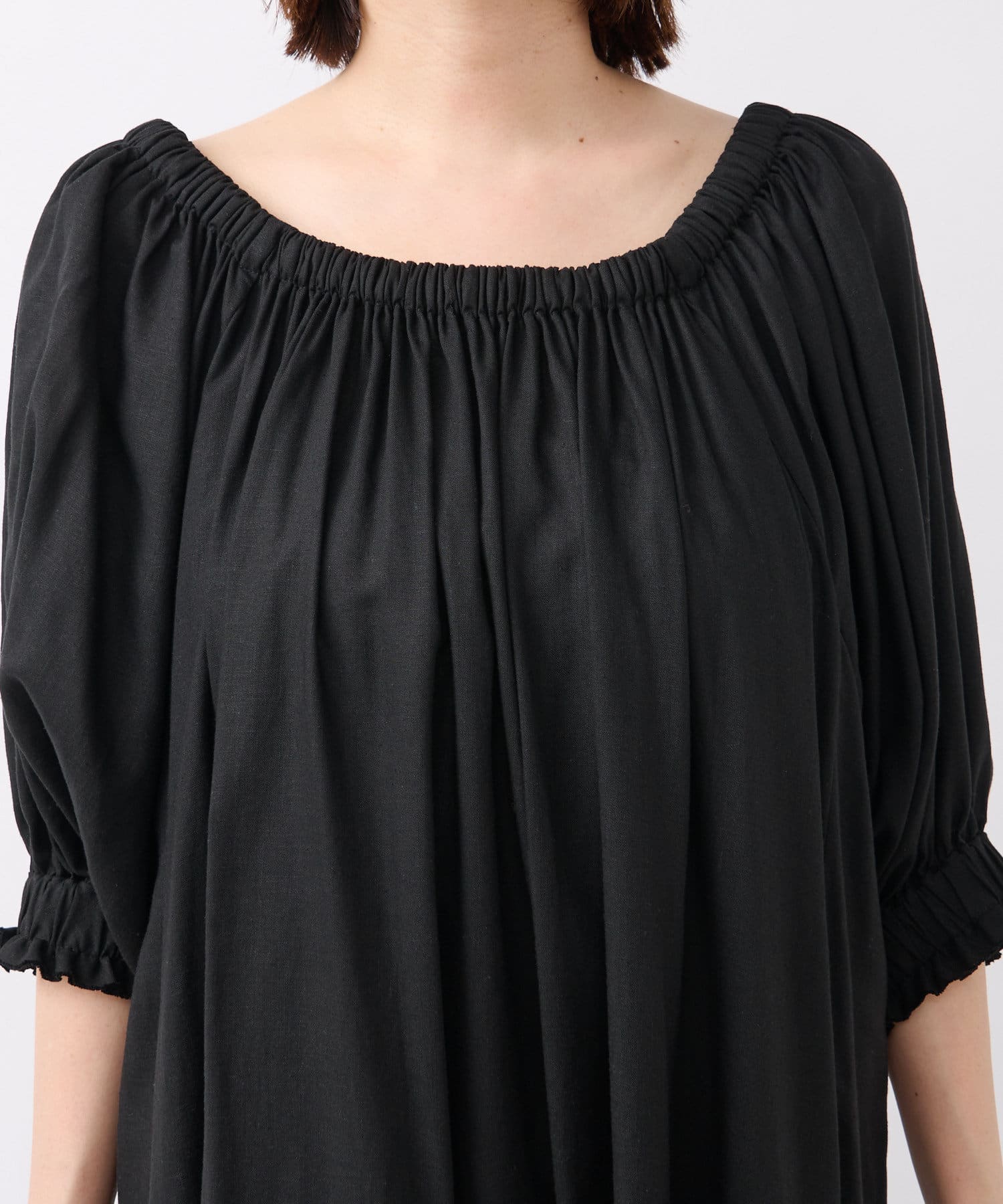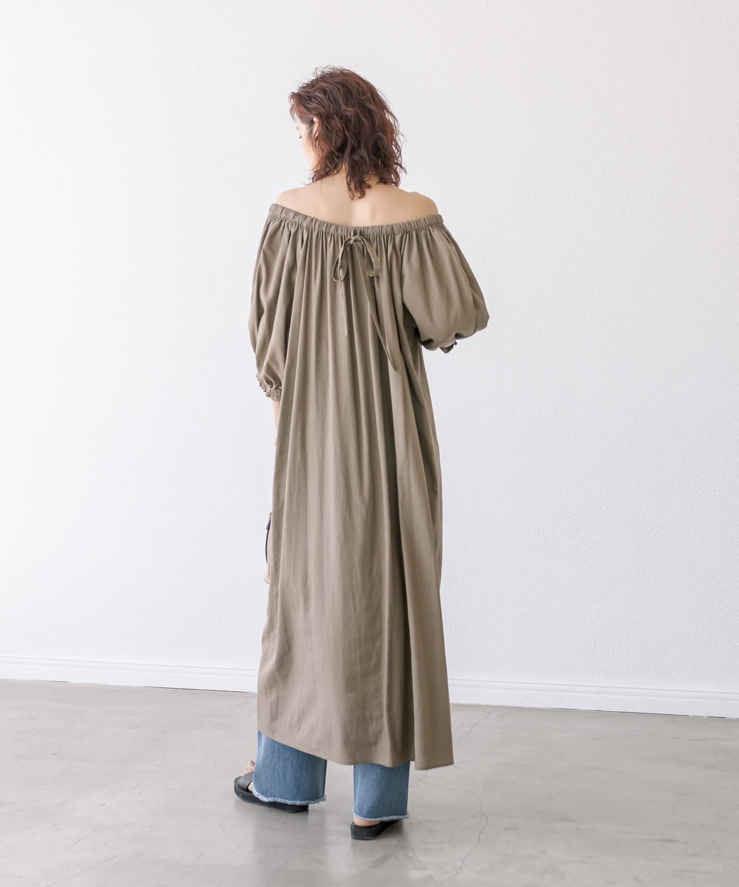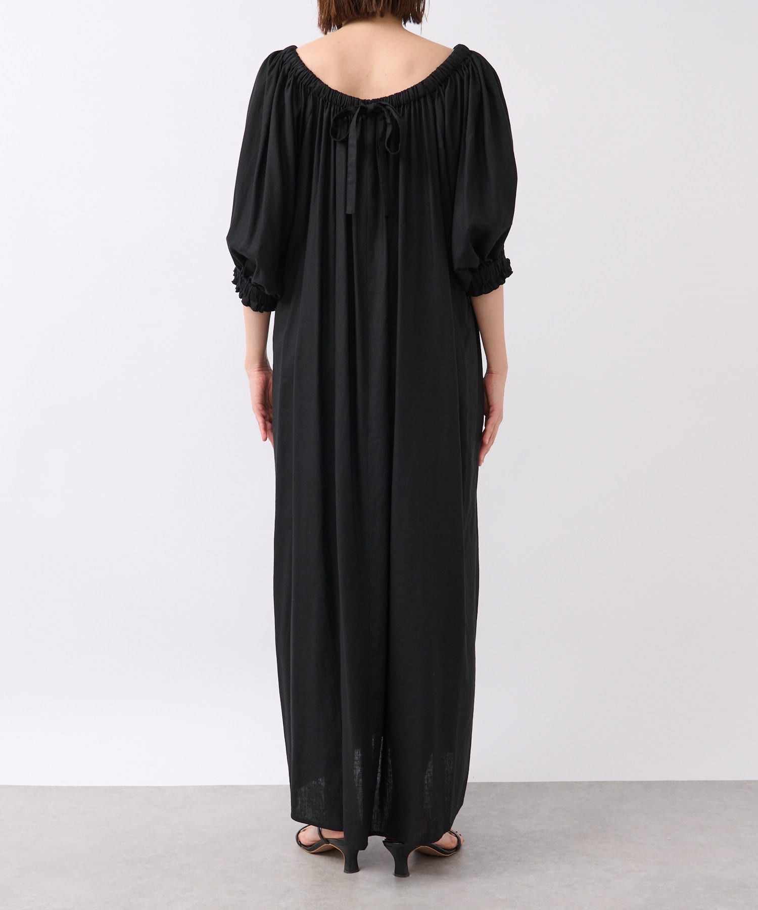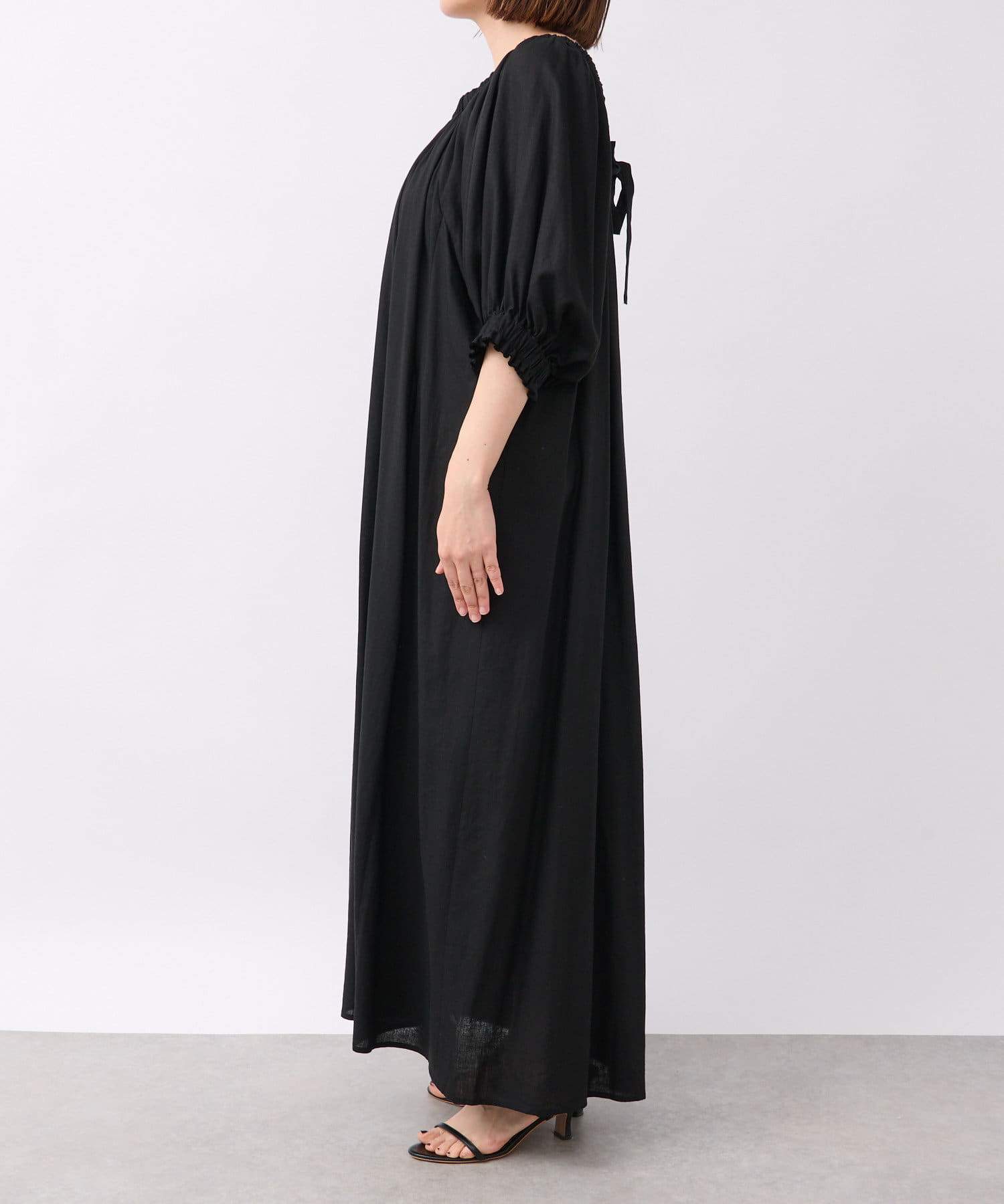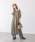 【旅行にもおすすめ】リネンレーヨンギャザーワンピース