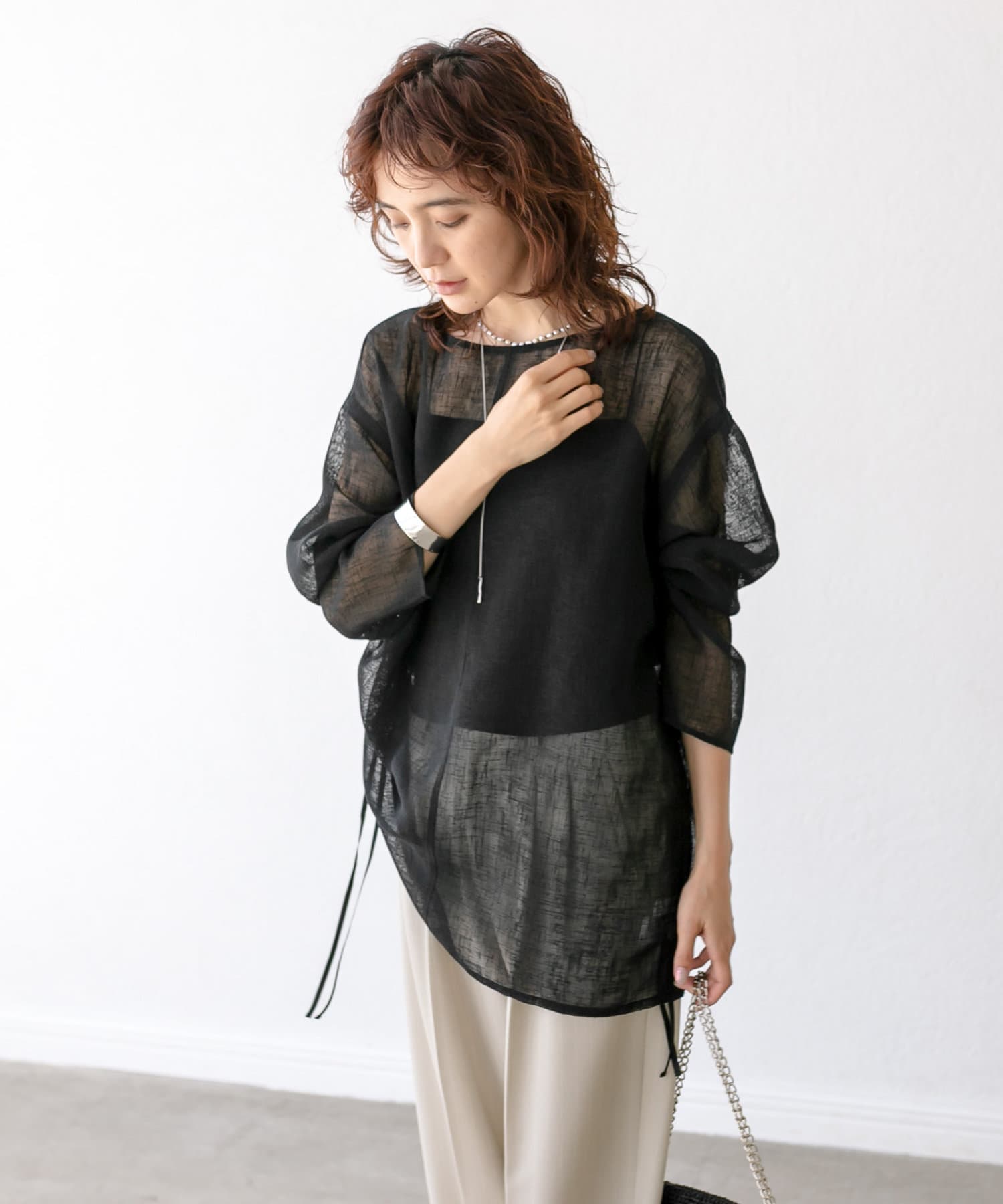 • カラーアイテムと合わせてもポイントになってくれて、さりげない存在感の光るアイテム
