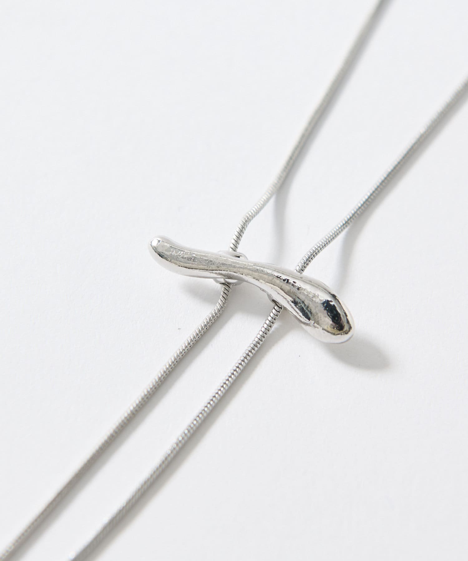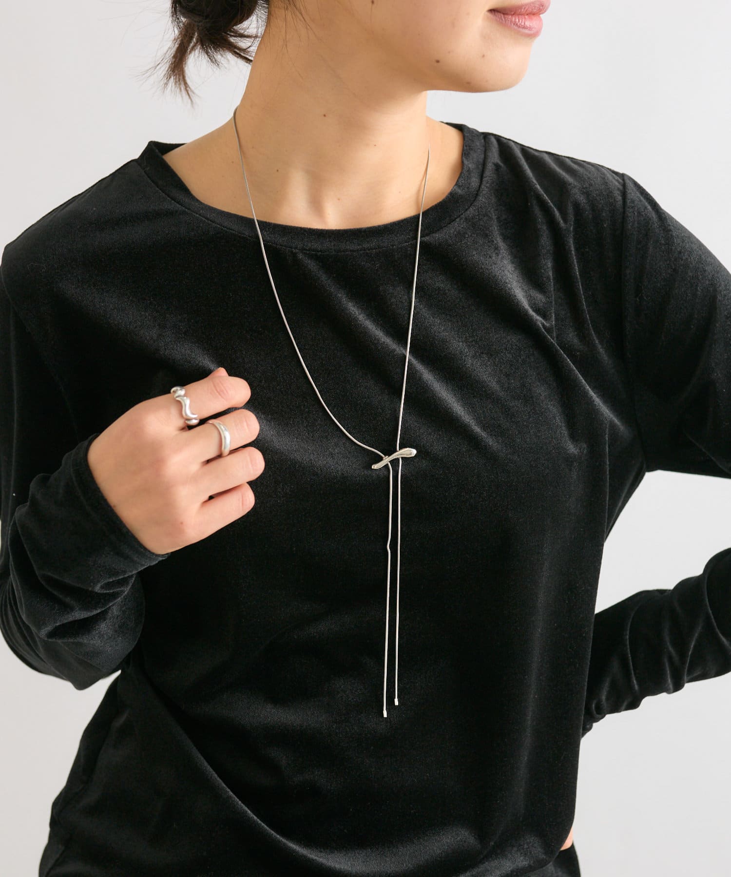 程よく存在感のあるパーツが動くたびにキラキラとさりげなく煌めくネックレス。