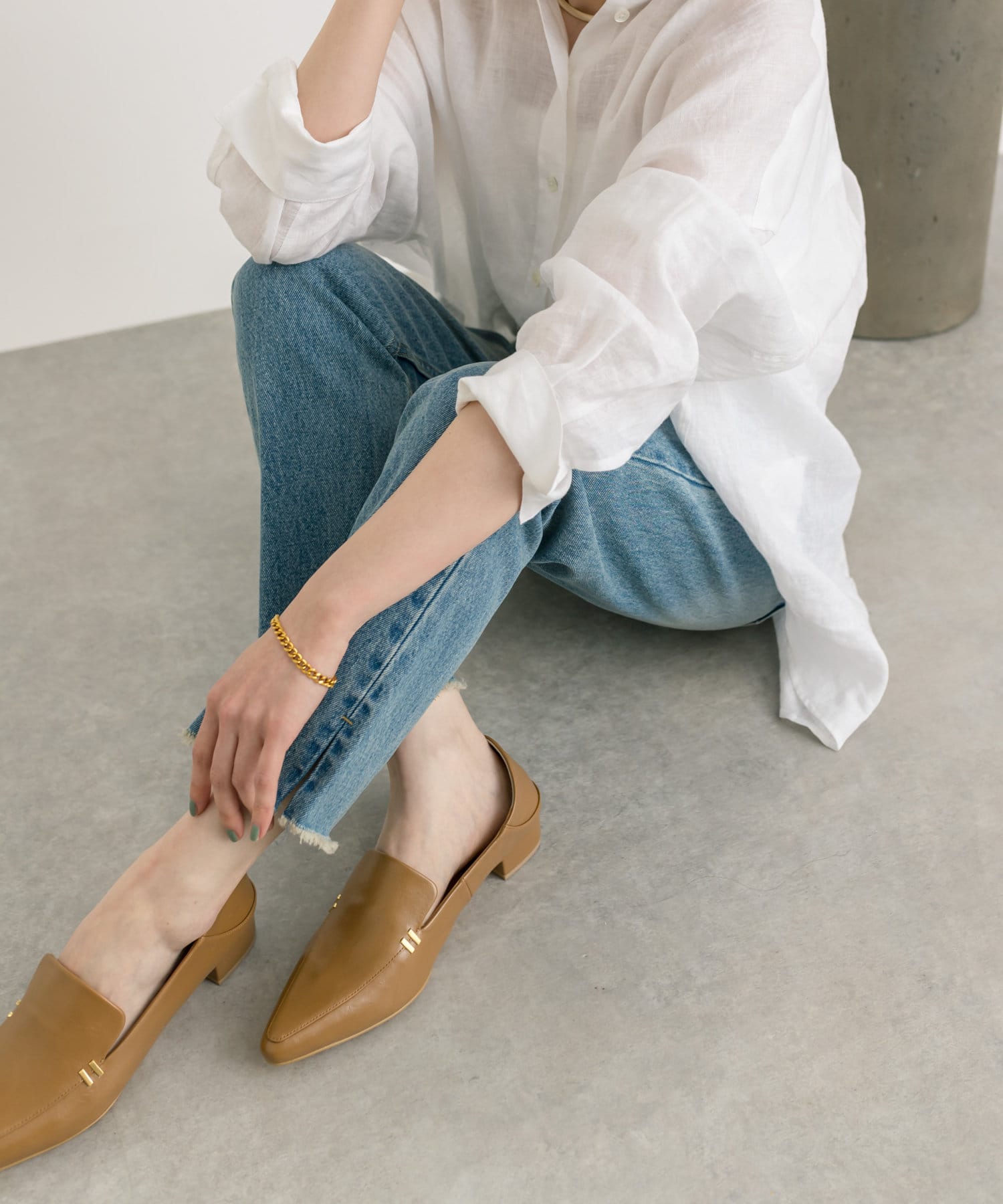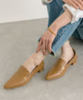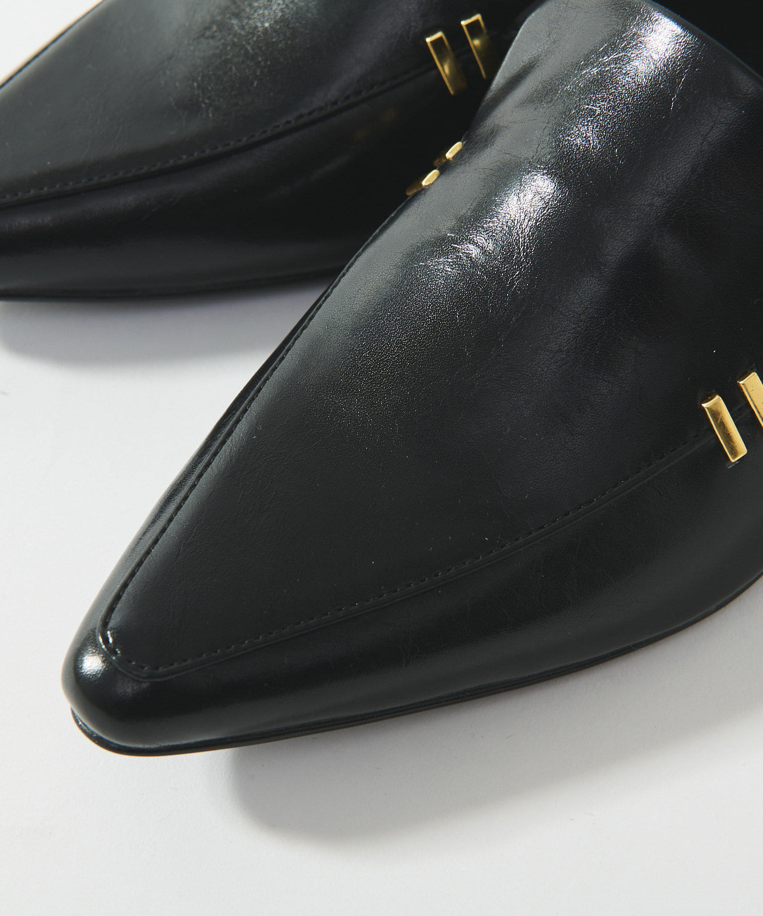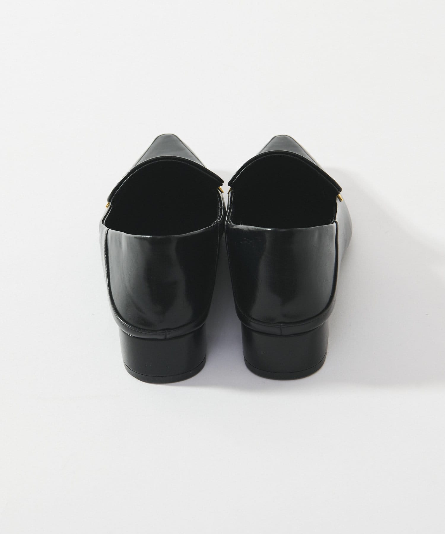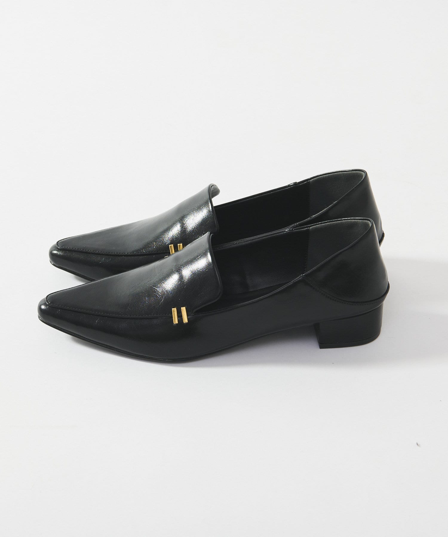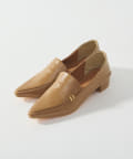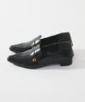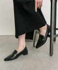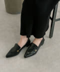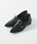 メタルモチーフがポイントのポインテッドトゥローファー。