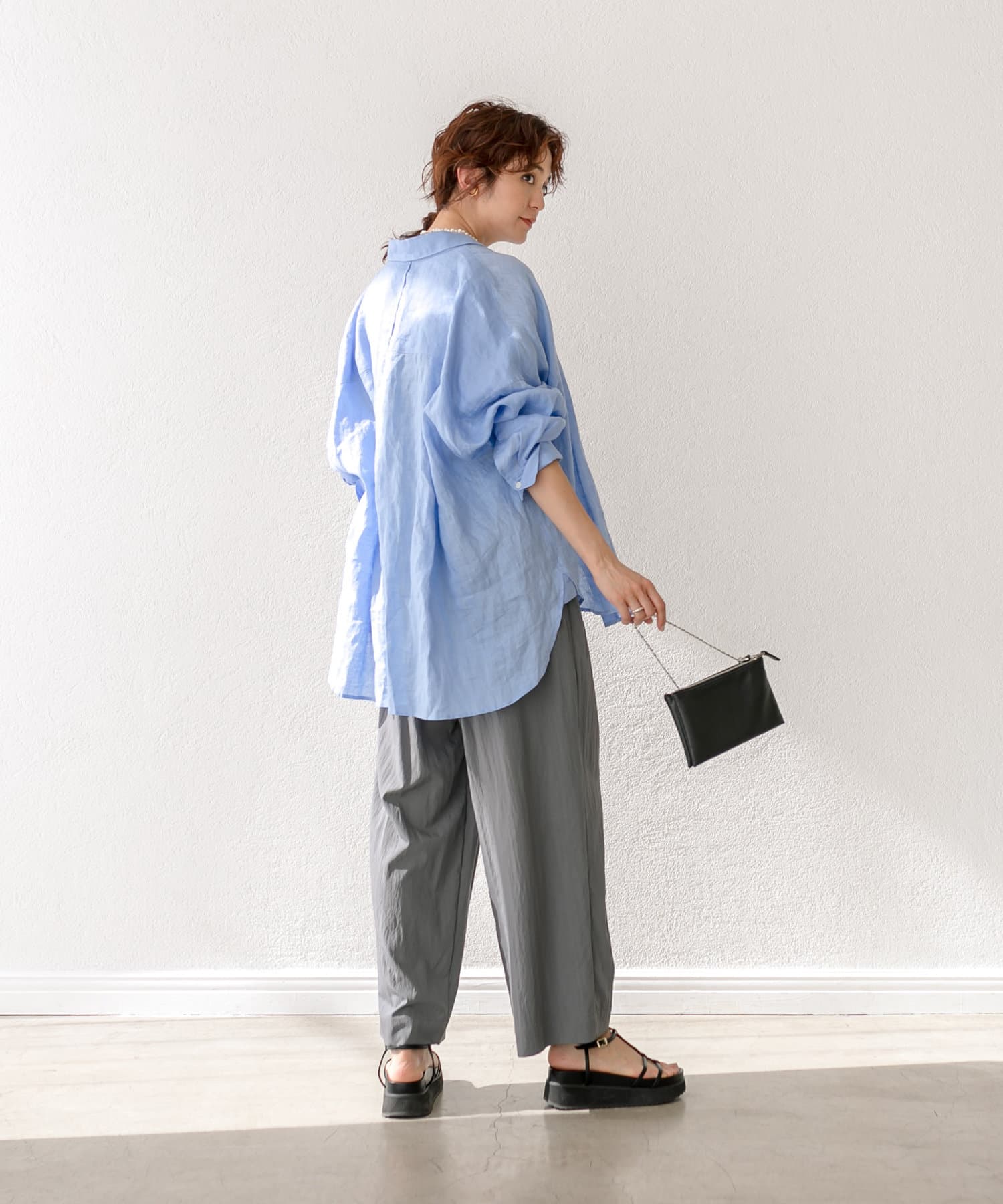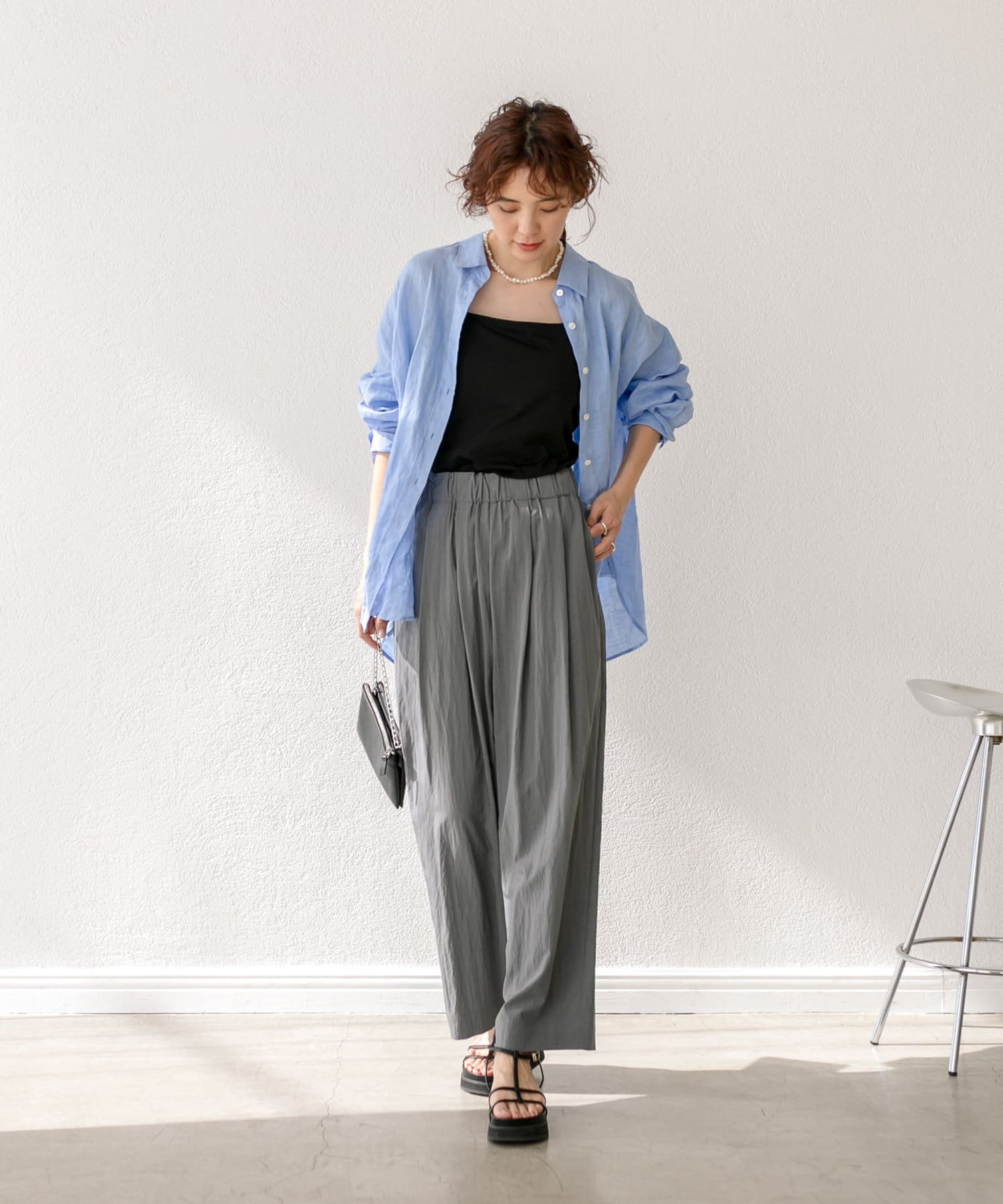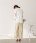 程よくゆとりのあるワイドなシルエットで動きやすく、シンプルなアイテムと合わせてもコーデのポイントになってくれる一枚。