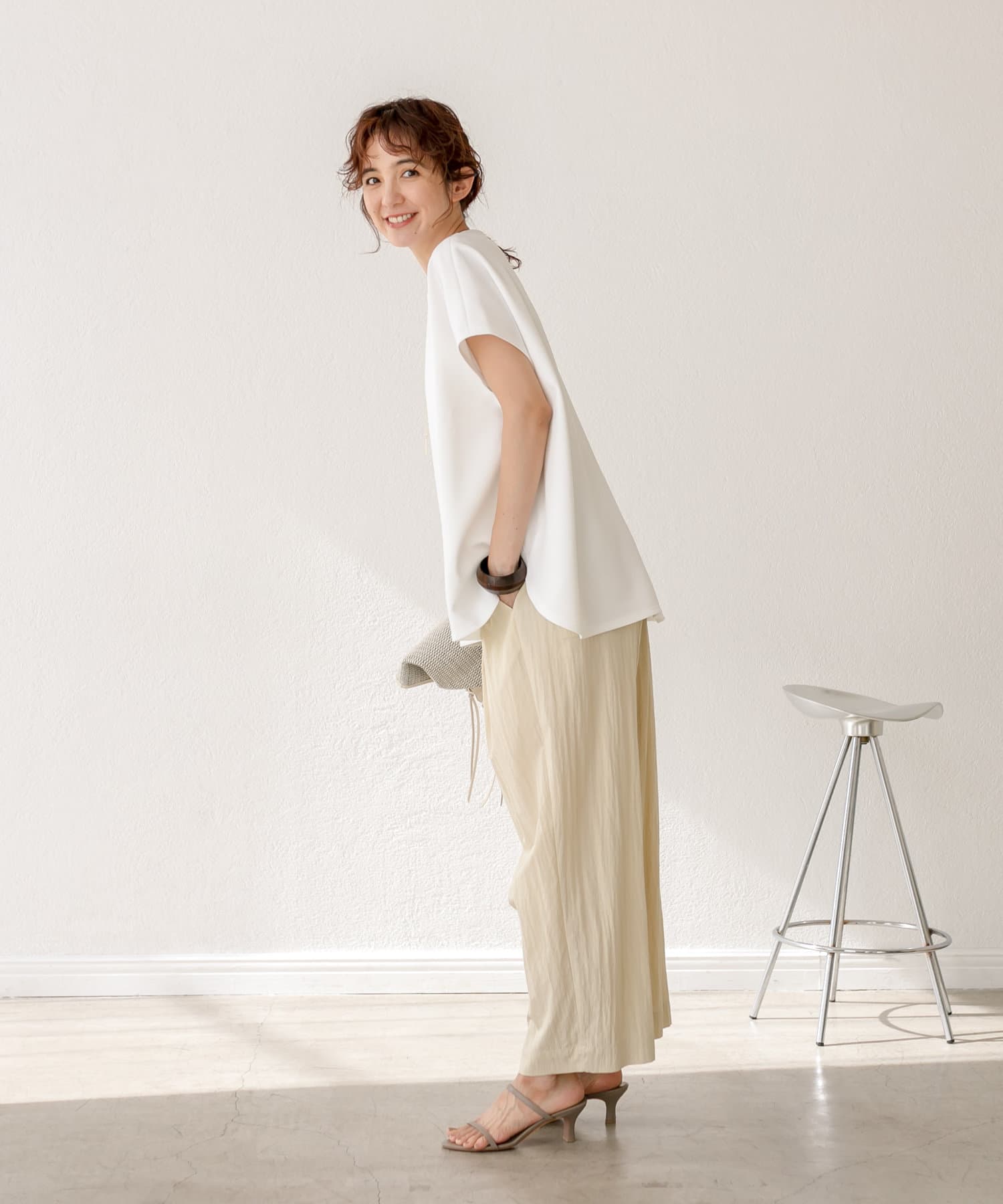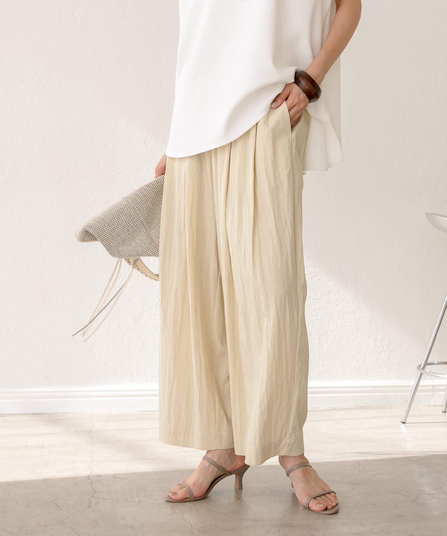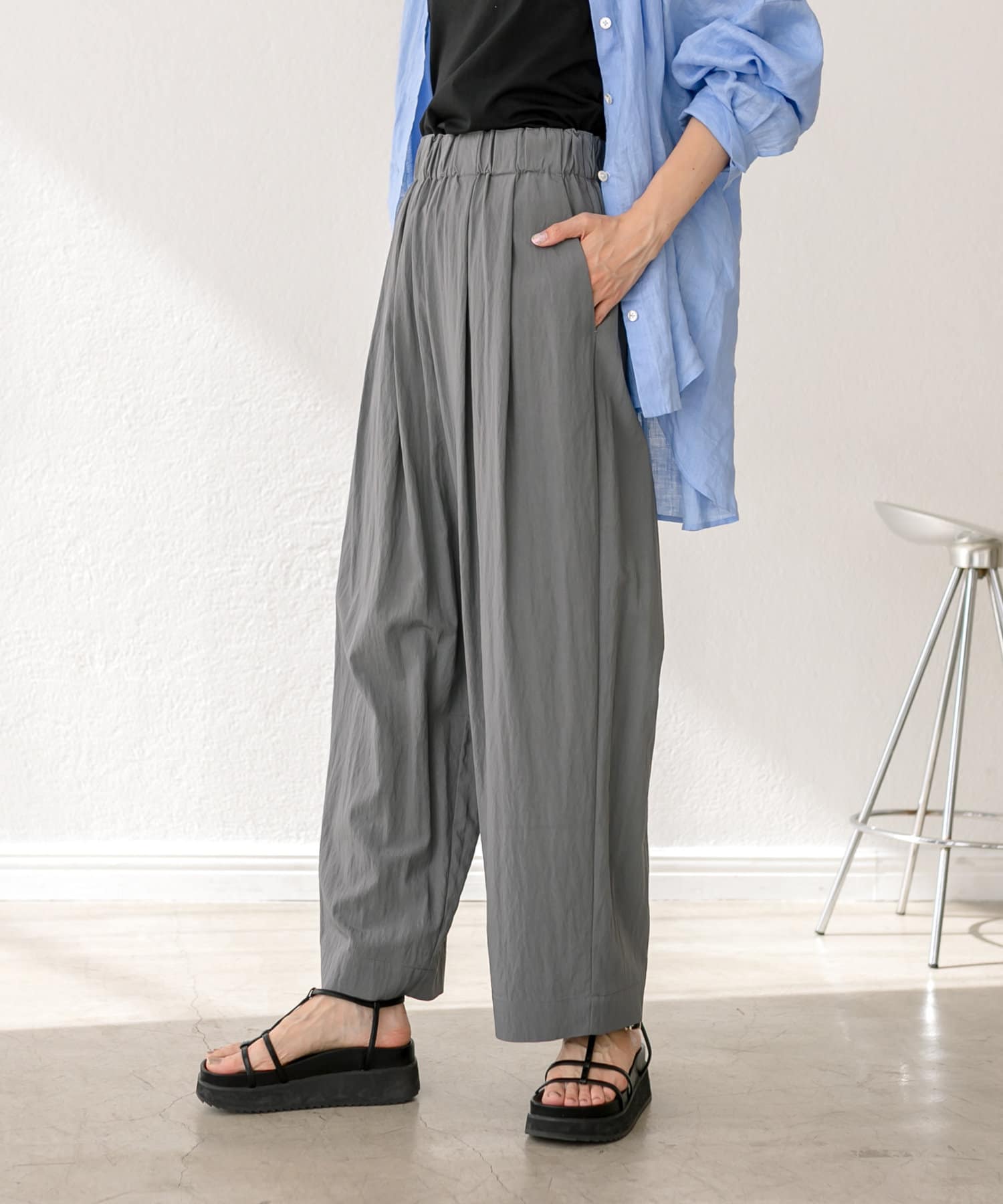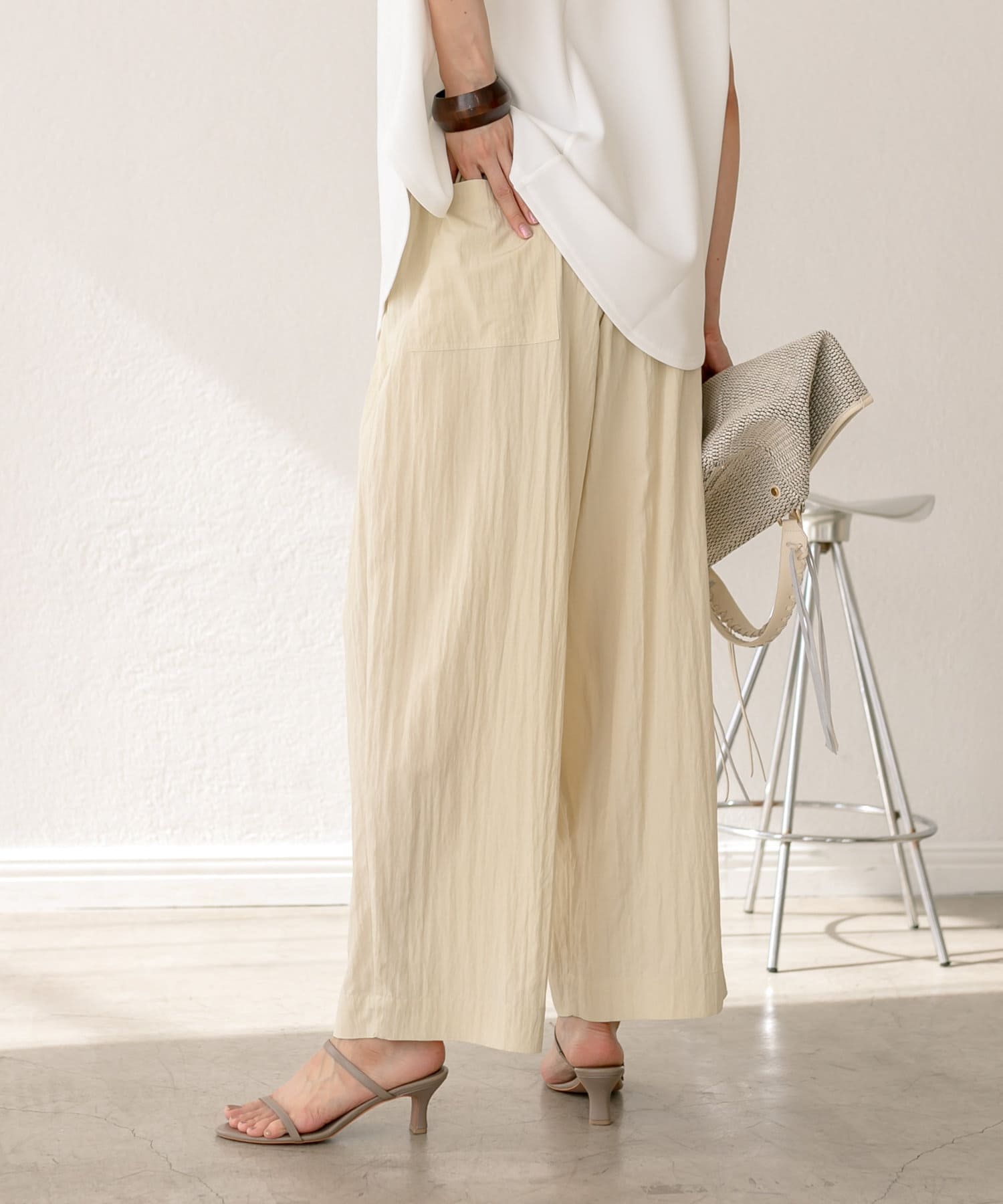 さらっとした素材感と表面感のある立体的な生地が印象的なイージーパンツ。