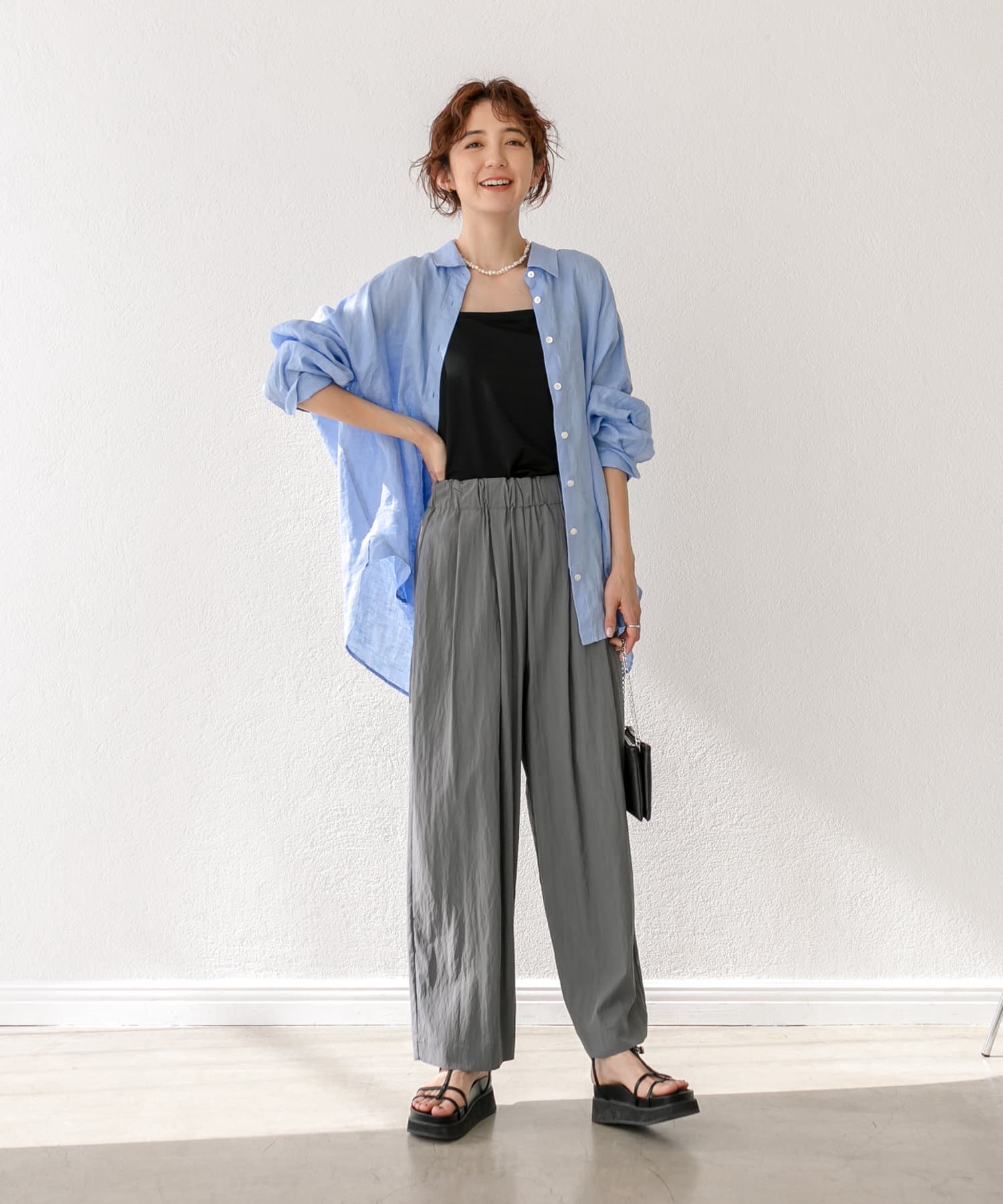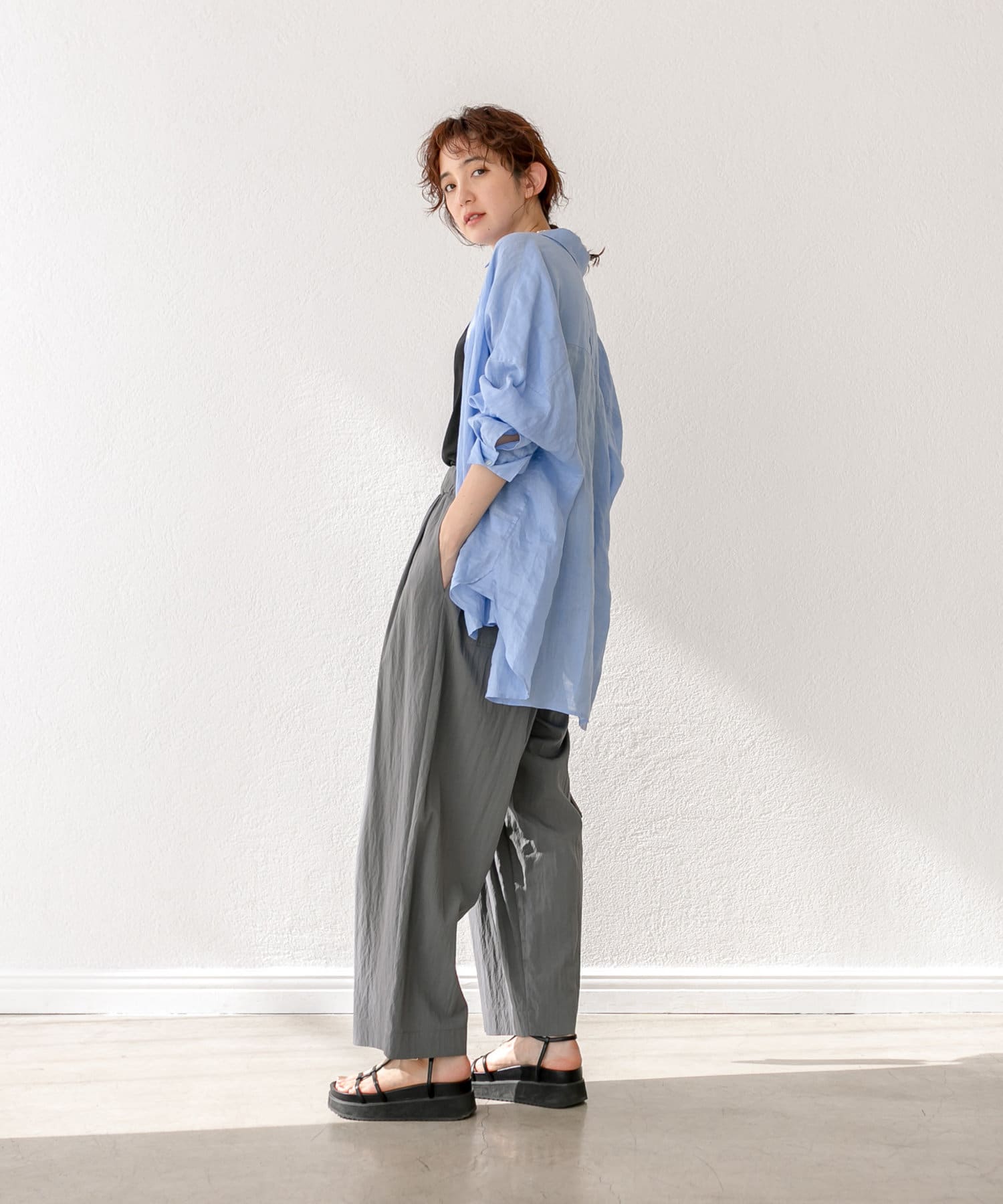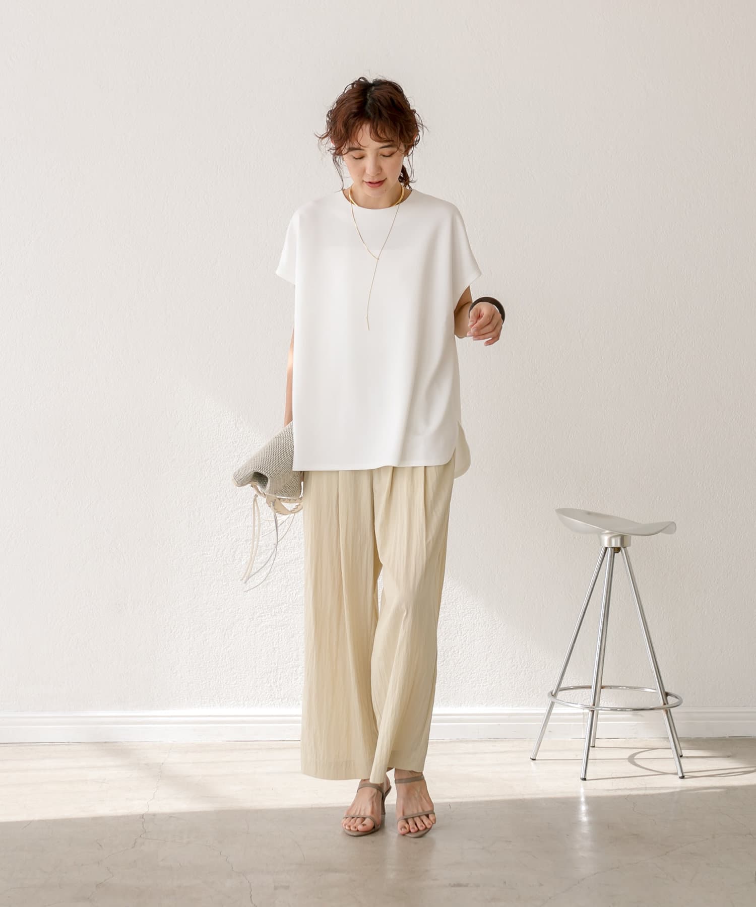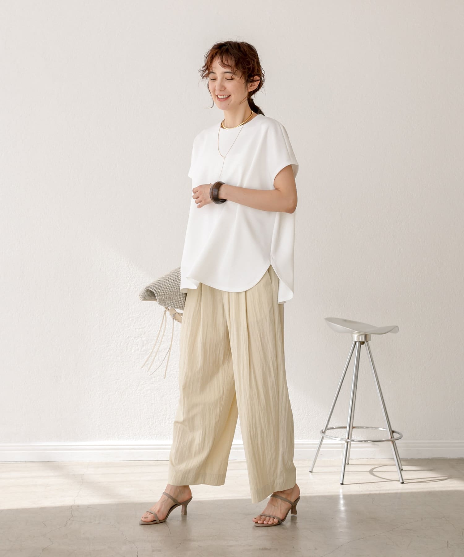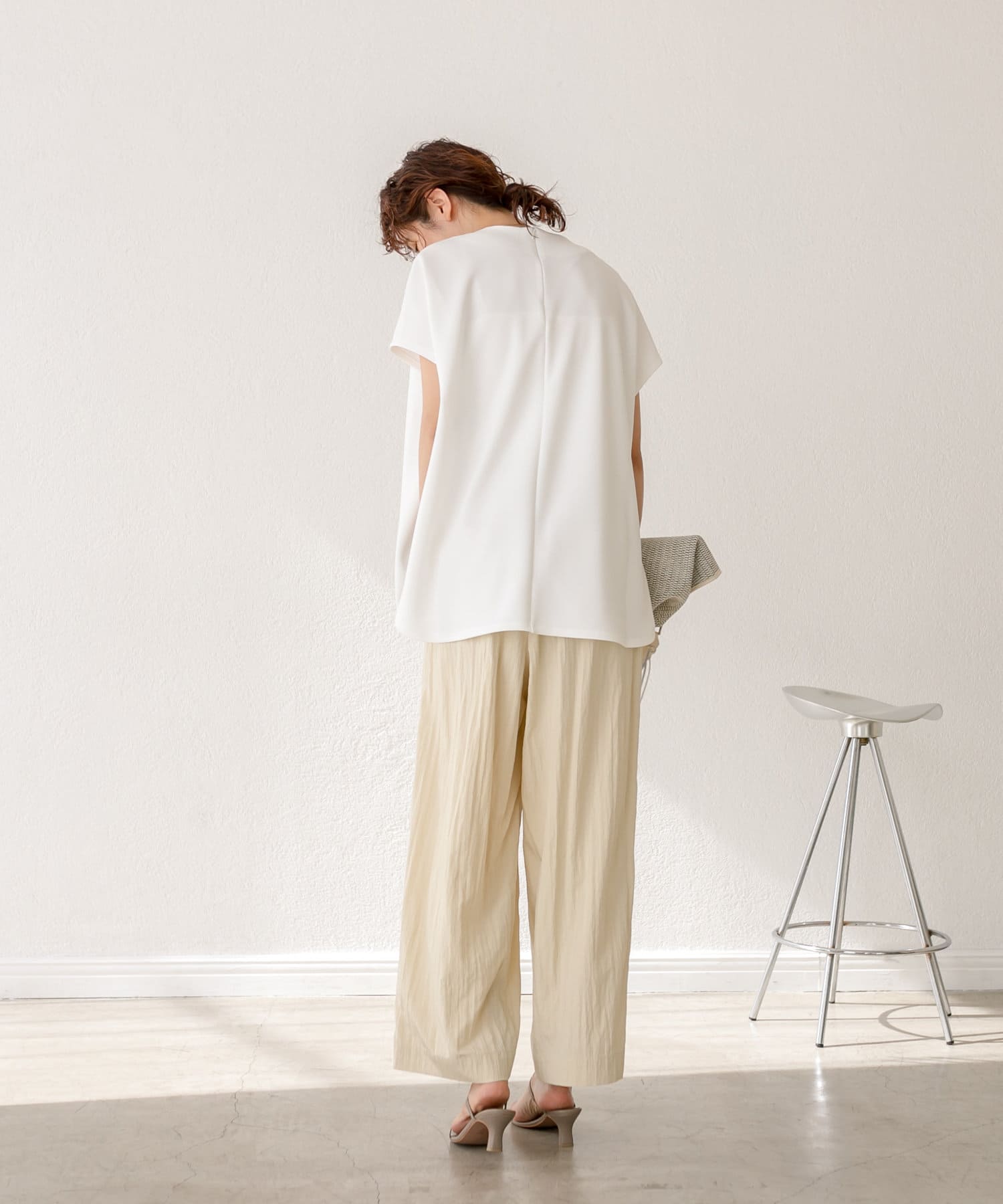 さらっとした素材感と表面感のある立体的な生地が印象的なイージーパンツ。