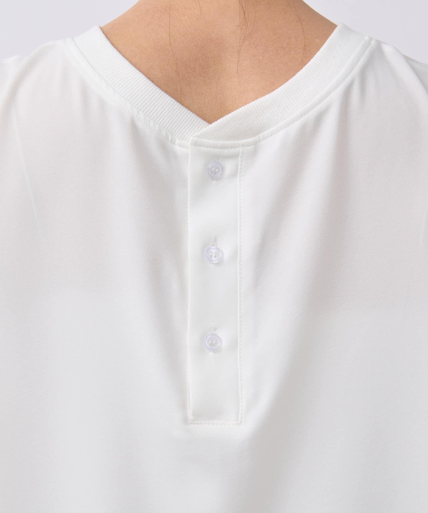 • 前後どちらでも着用できる2WAYネック仕様の軽やかブラウス