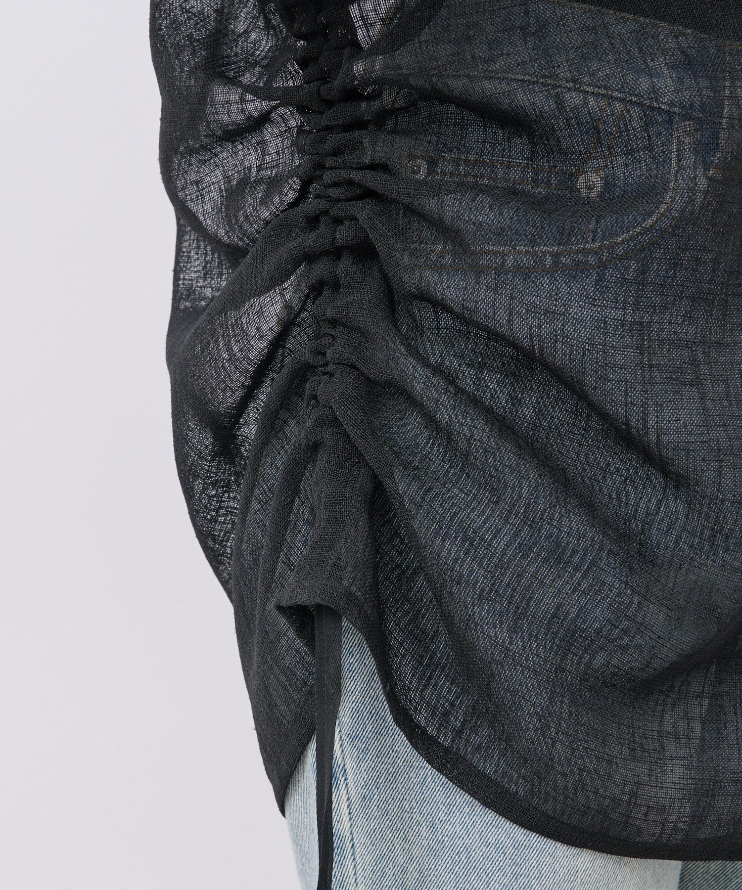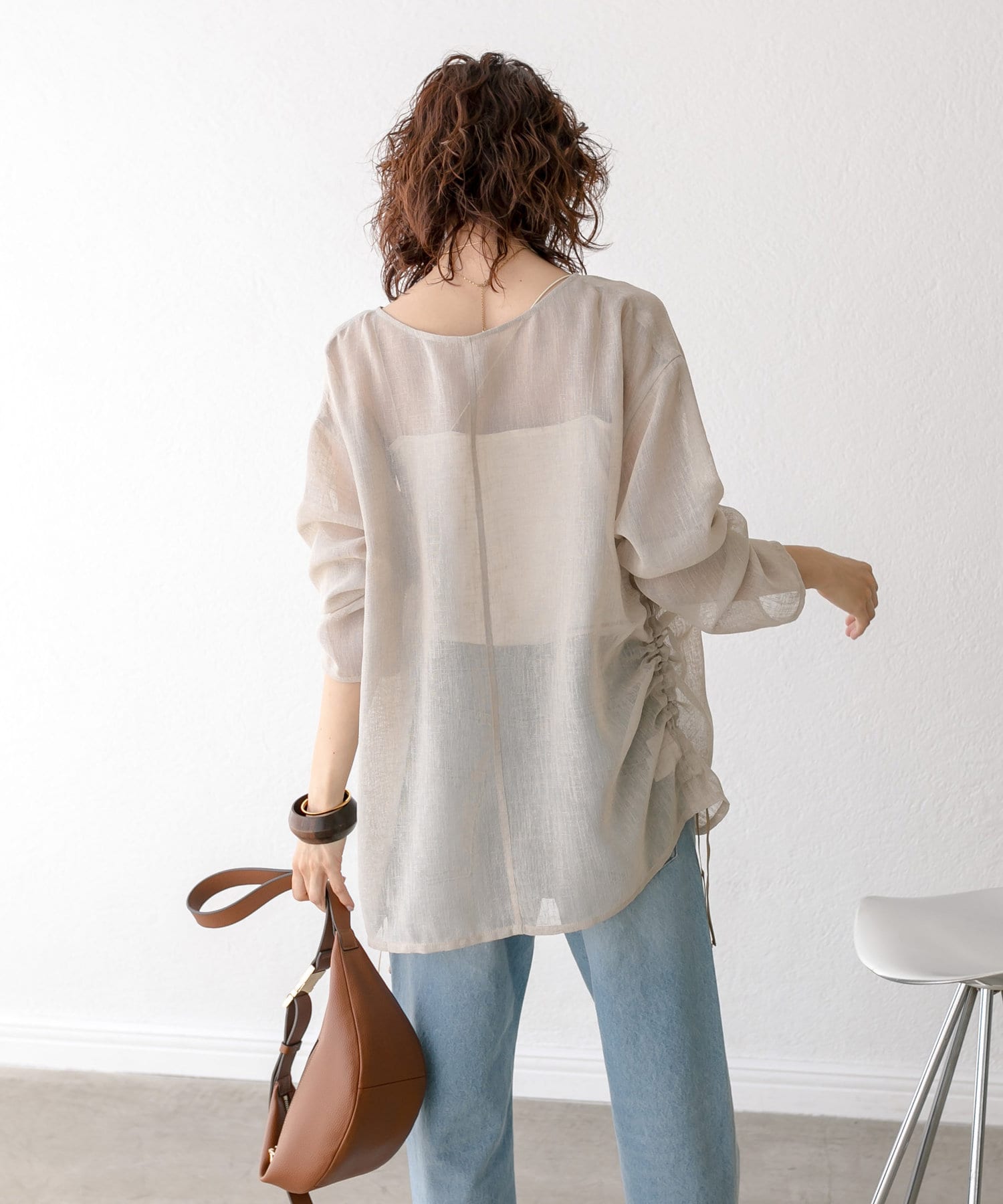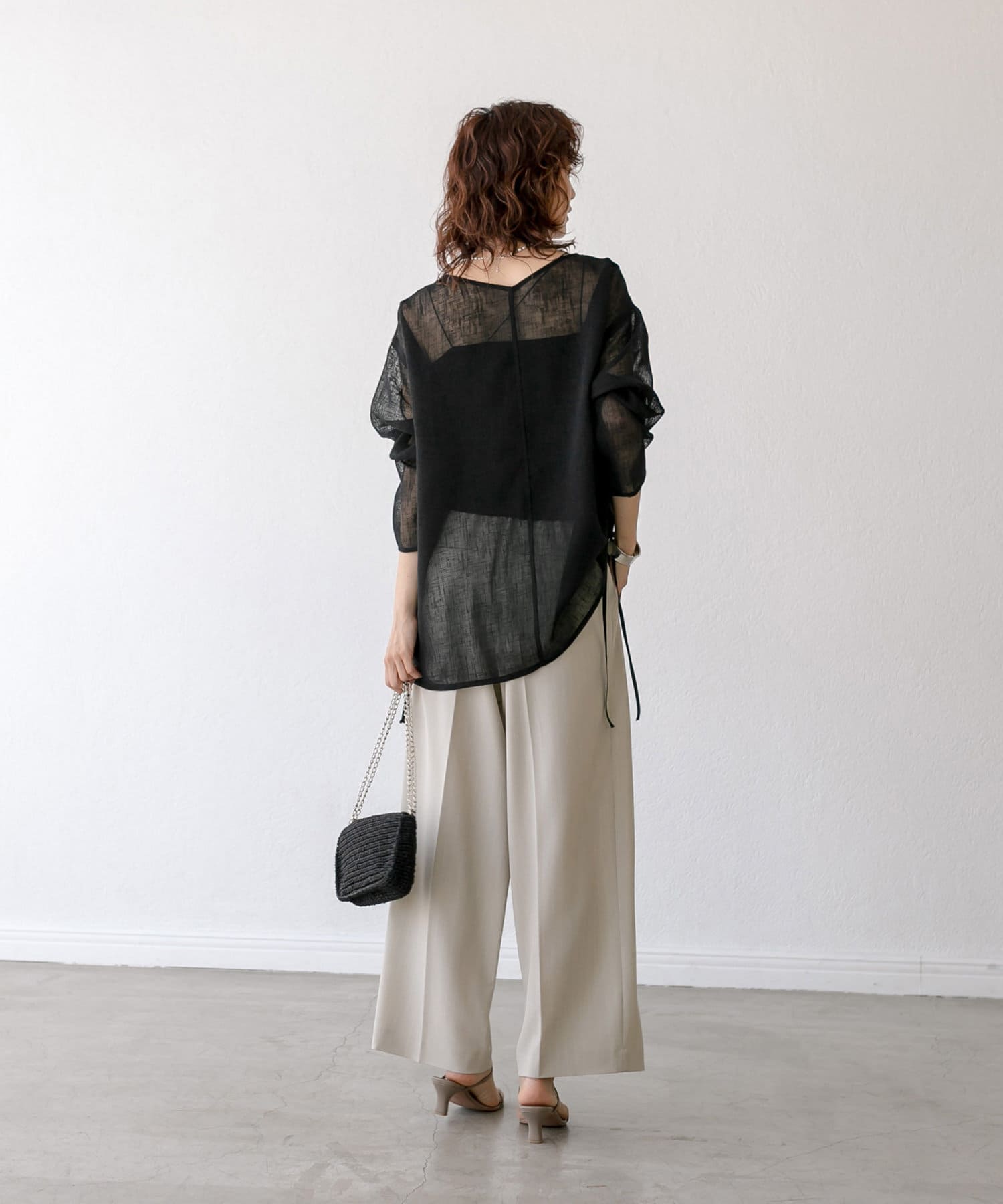 両脇を絞るも良し、片方だけ絞ってイレギュラーなヘムラインで抜け感を出すのも良し。体系カバー&抜け感の出せる万能アイテムです。