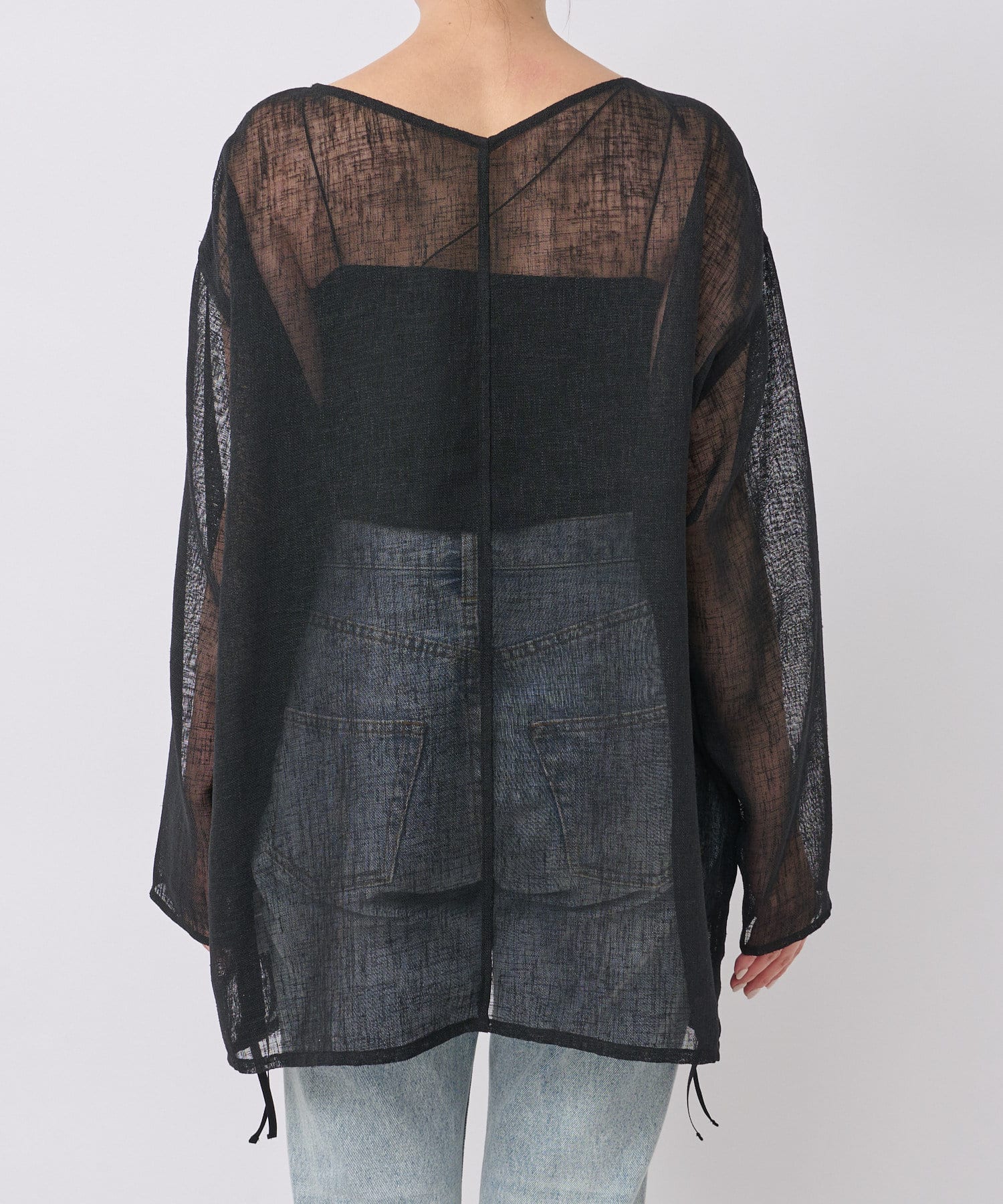 蚊帳のようなメッシュ素材を使用したブラウス。