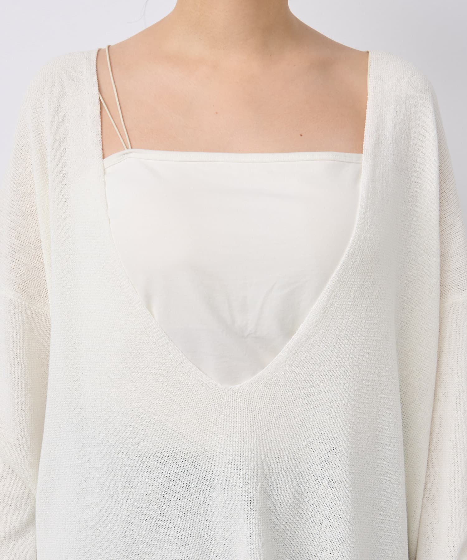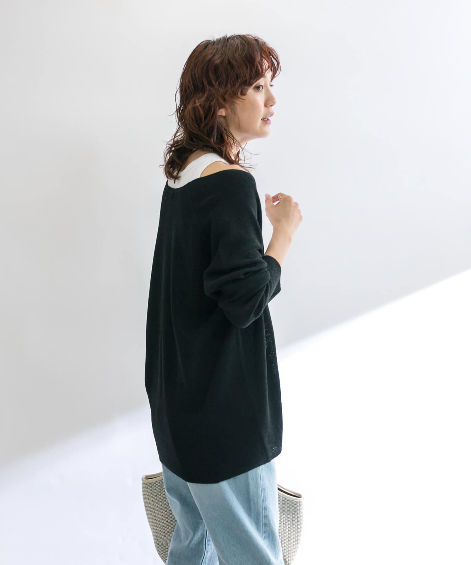 【ルーズな着心地】ペーパーヤーンプランジネックニット