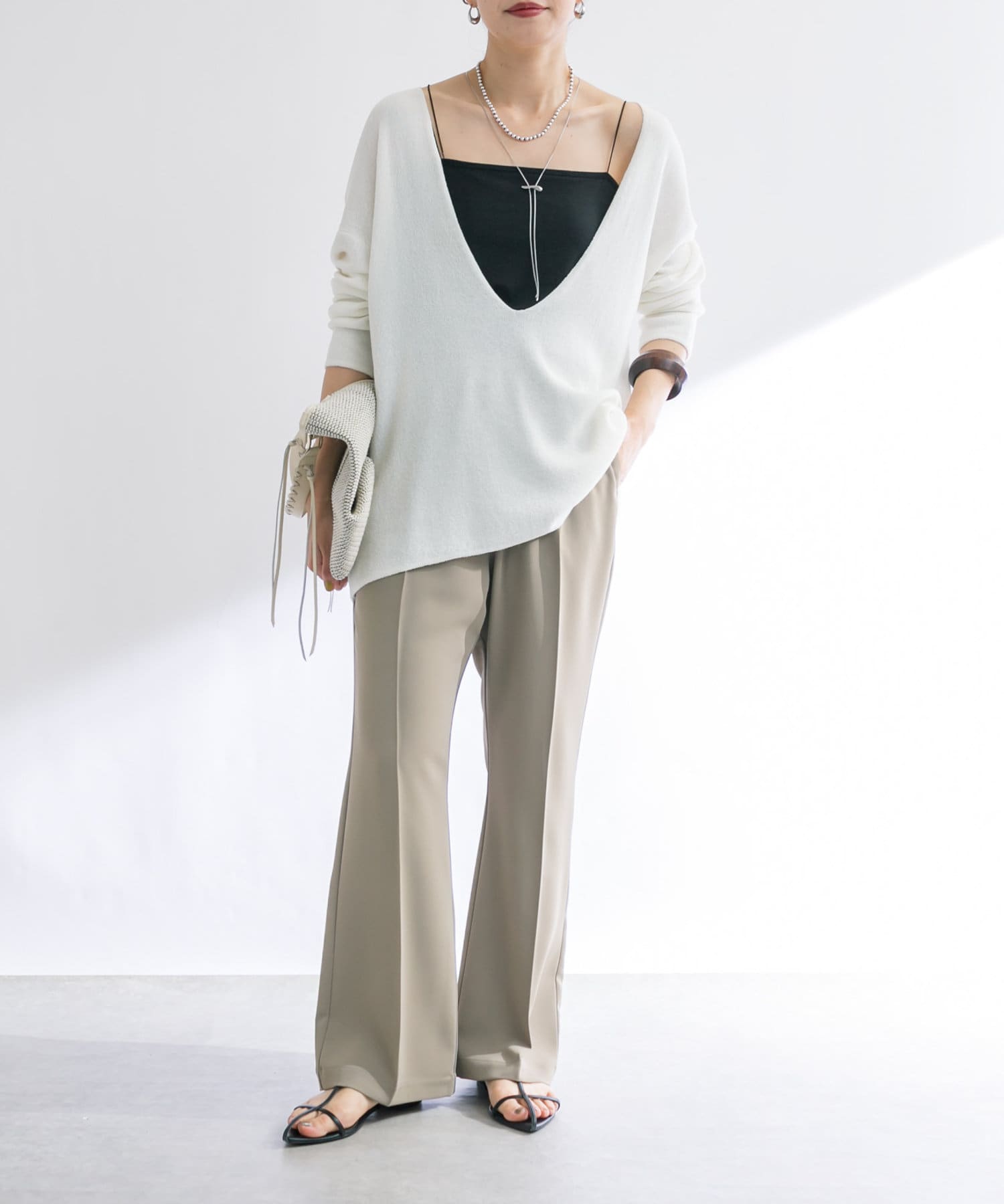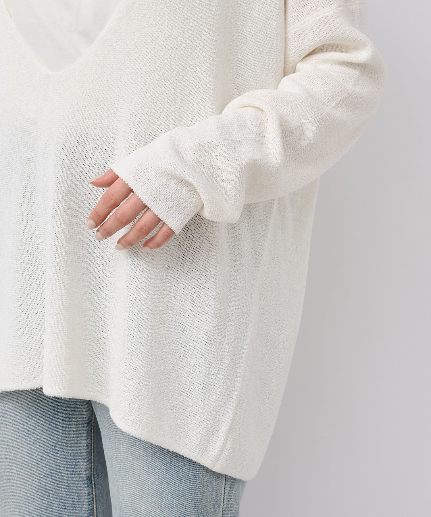 • 素肌がキレイに見えるザックリ開いたプランジネックとルーズなシルエットがマッチした今っぽいプルオーバー