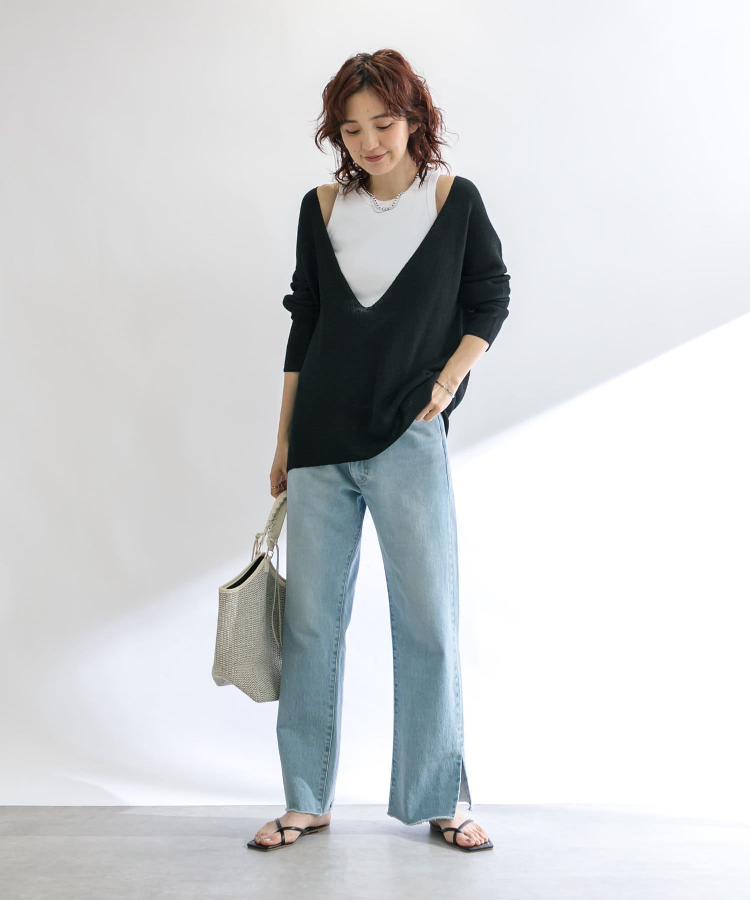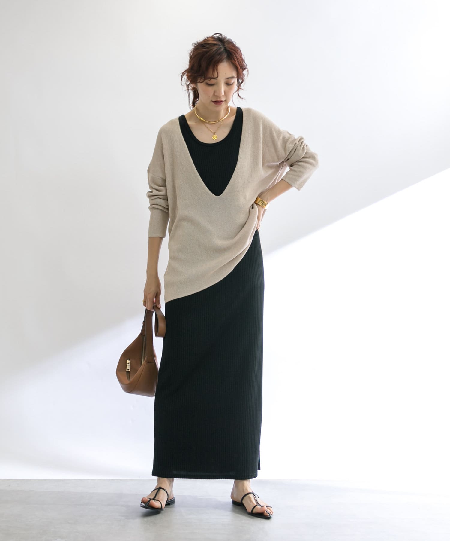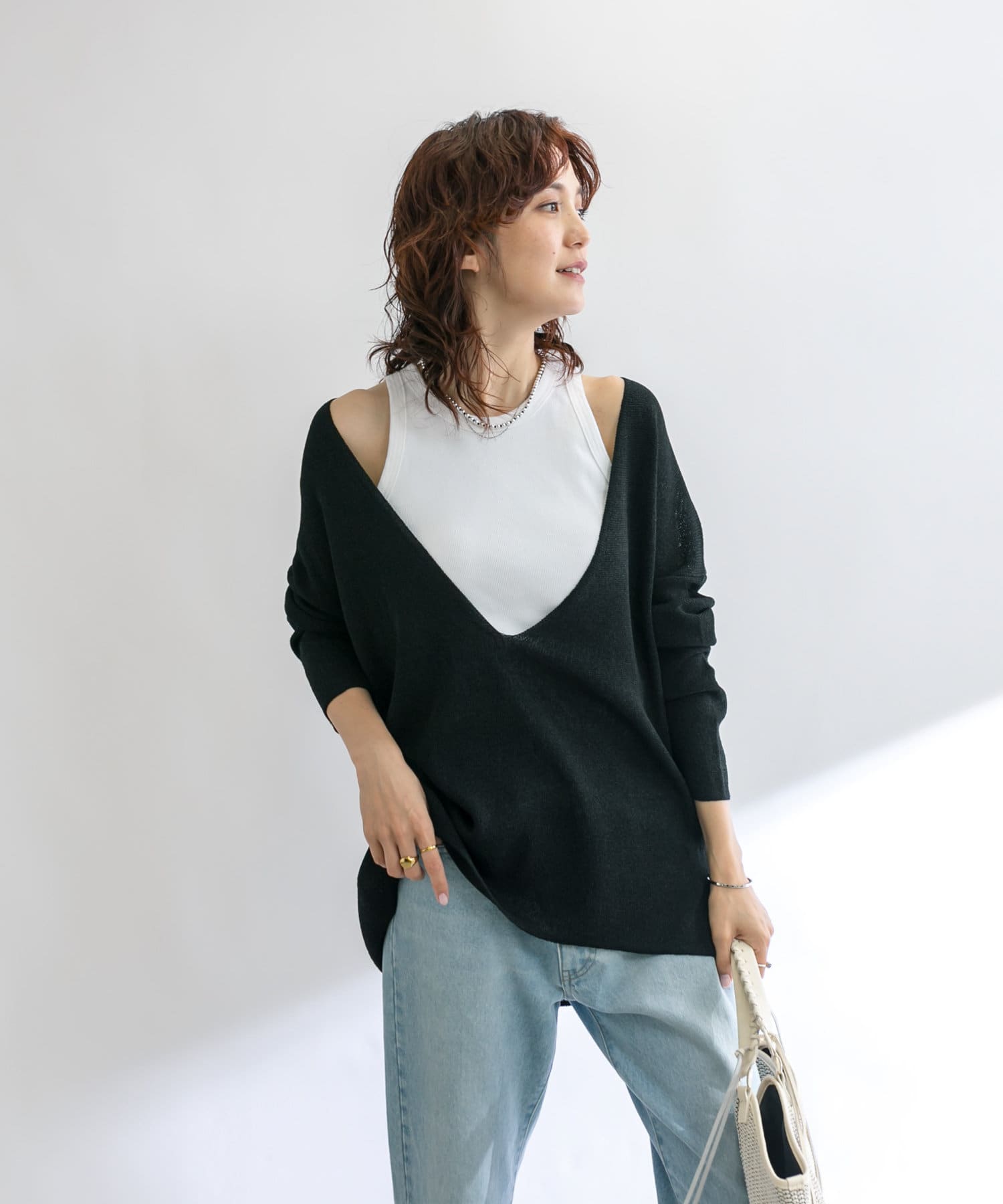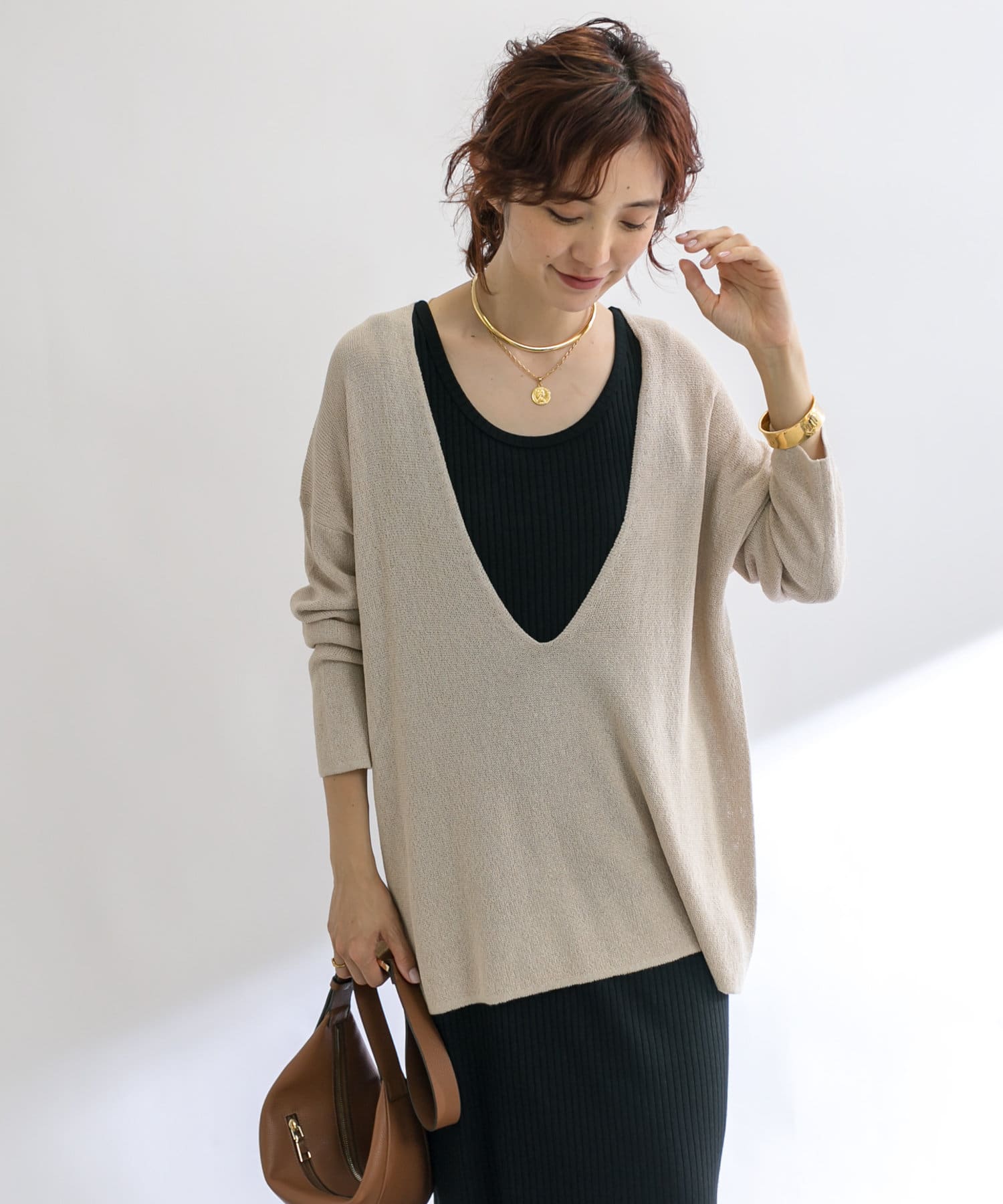RIVE DROITE(リヴドロワ) 【ルーズな着心地】ペーパーヤーンプランジネックニット
