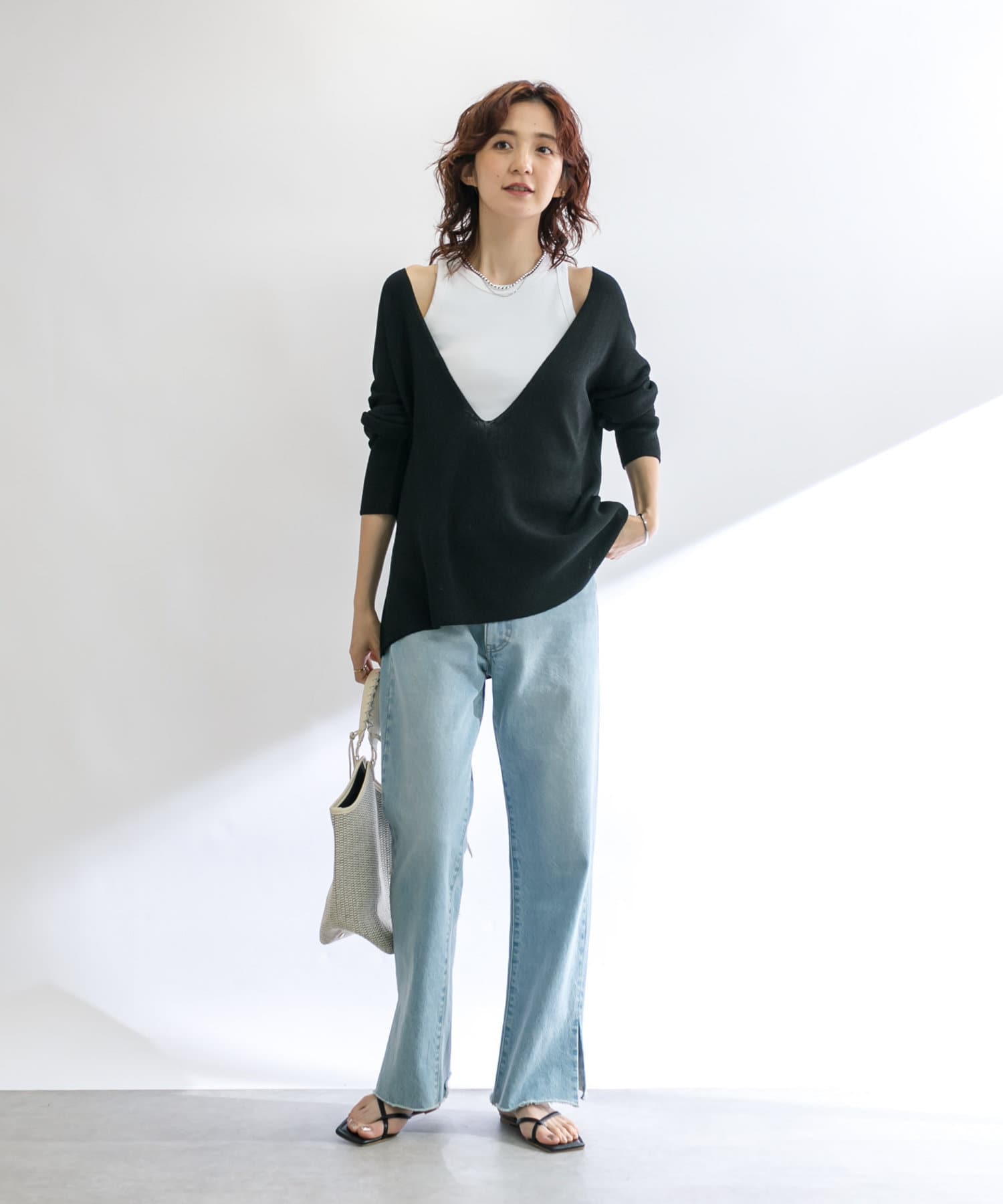 TOP > RIVE DROITE > レディース > トップス > ニット/セーター > 【ルーズな着心地】ペーパーヤーンプランジネックニット