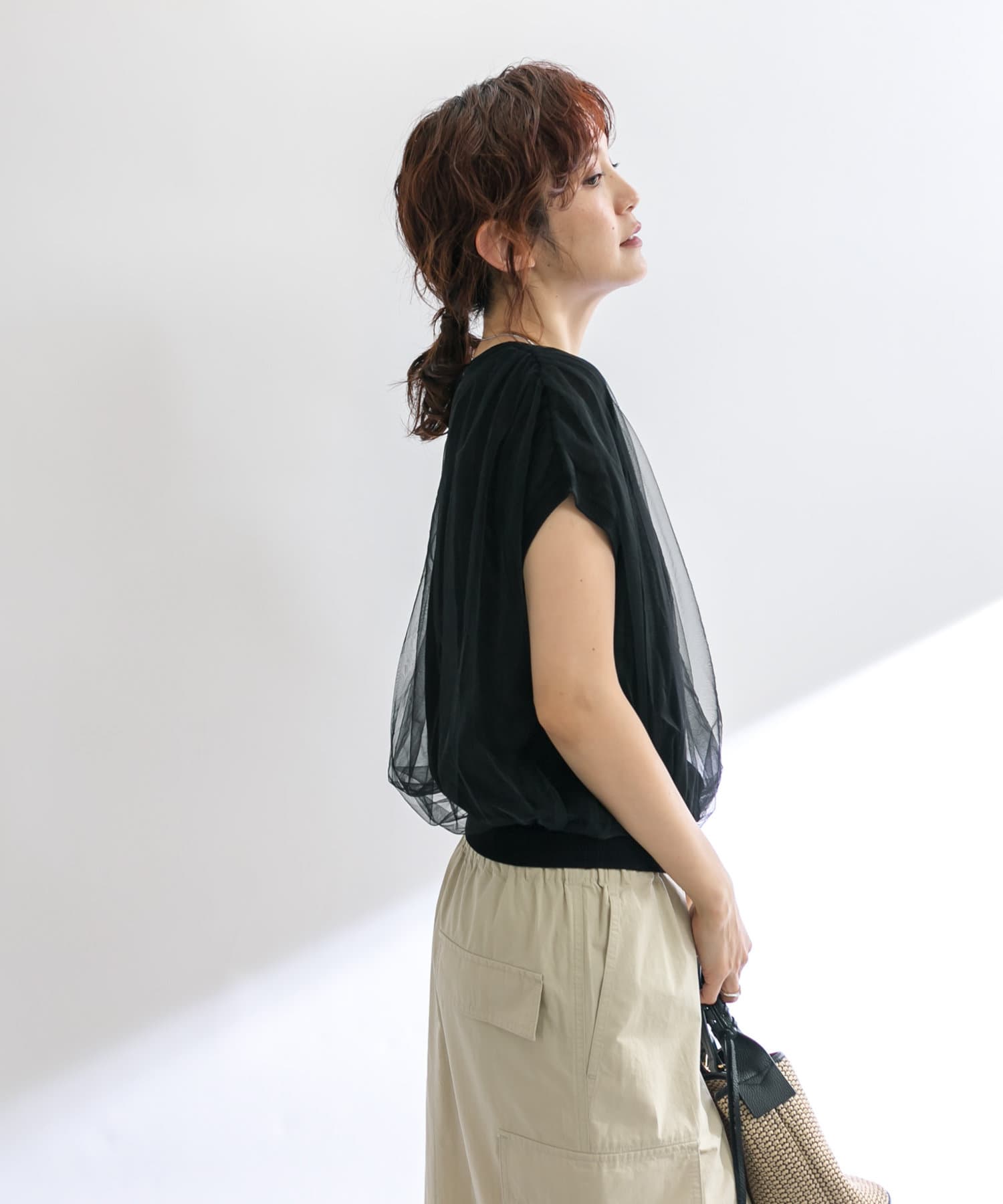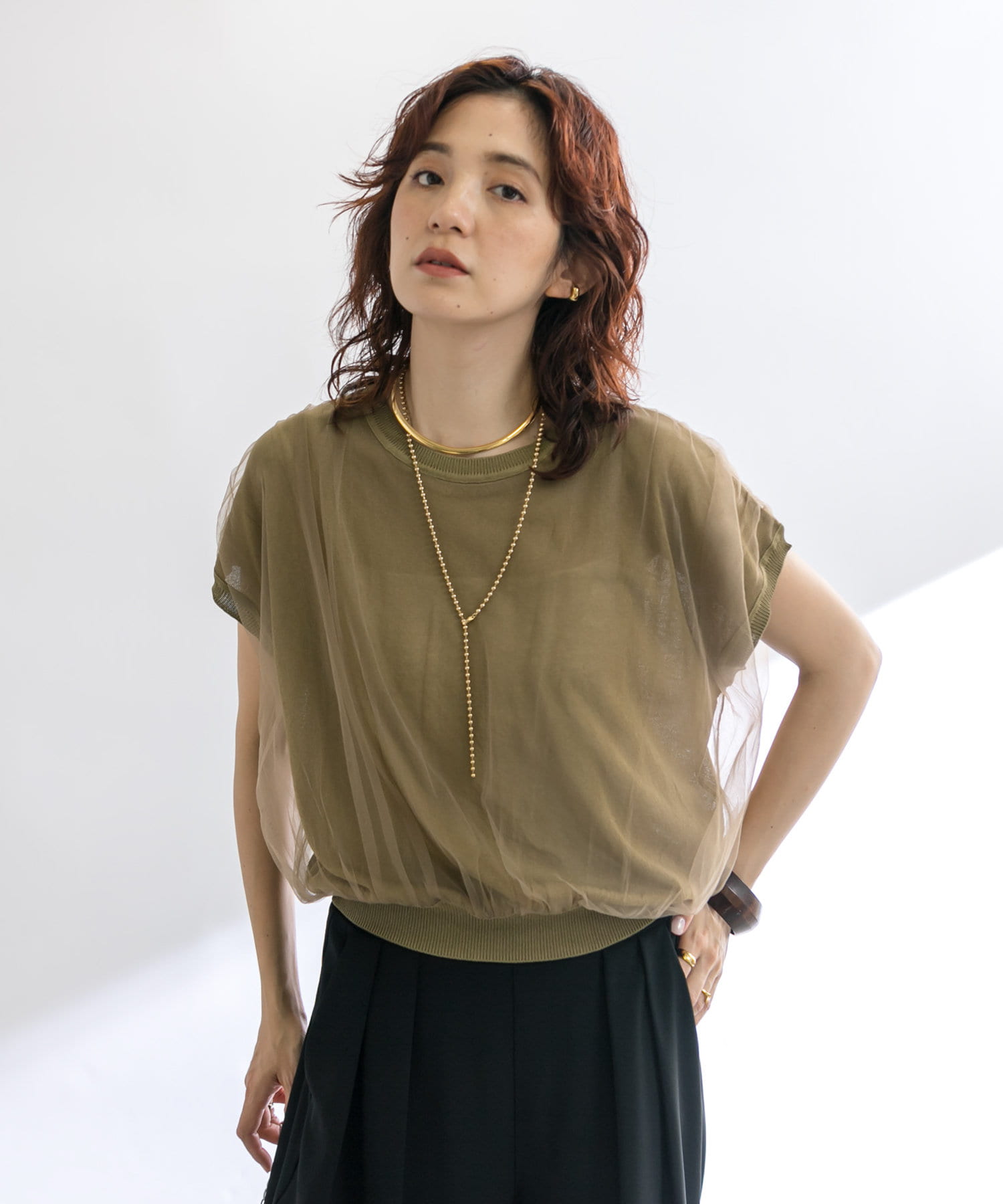 女性らしさが引き立つ、チュール素材を合わせたニットが登場。