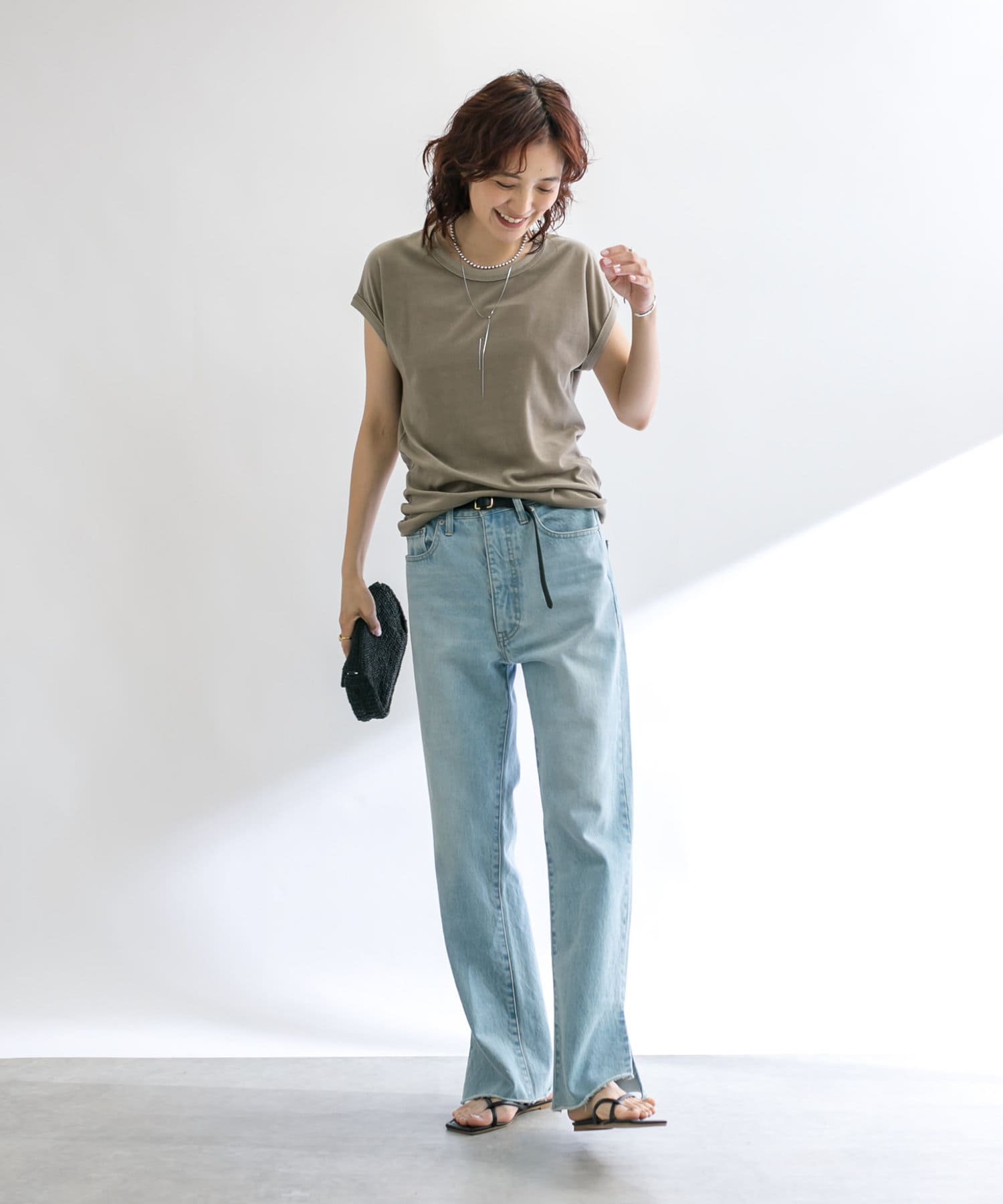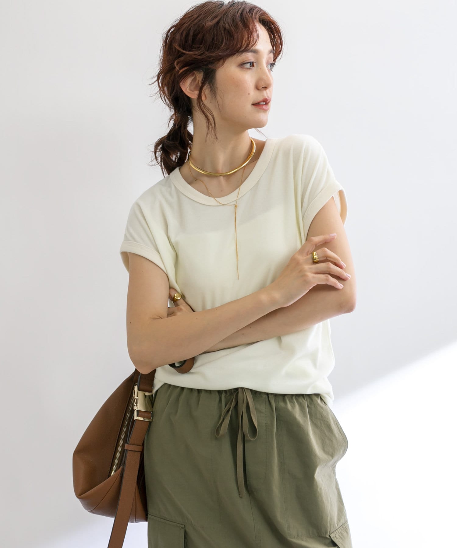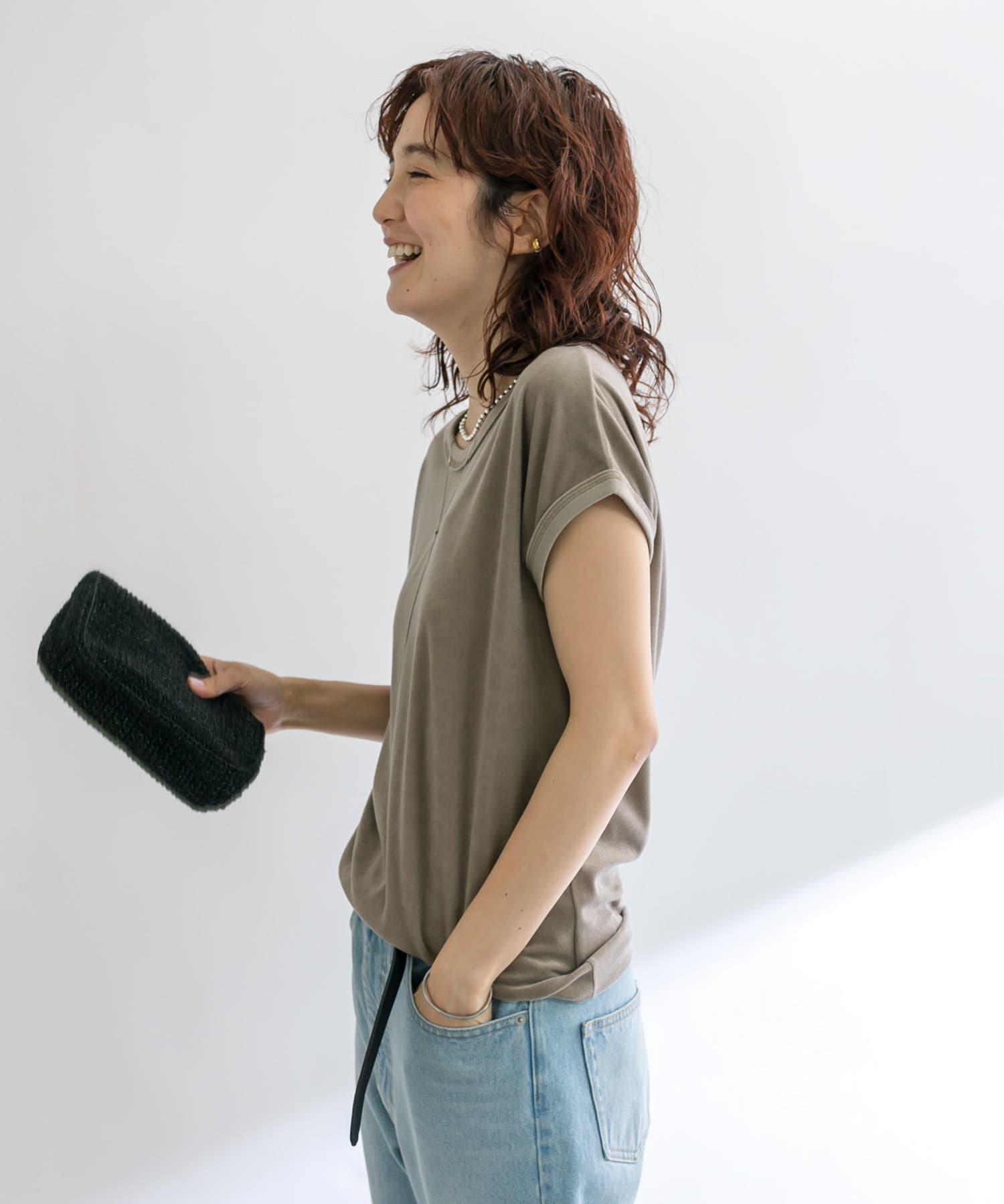 ハイゲージで滑らかな表情のパイル素材を使用したフレンチスリーブカットソー。