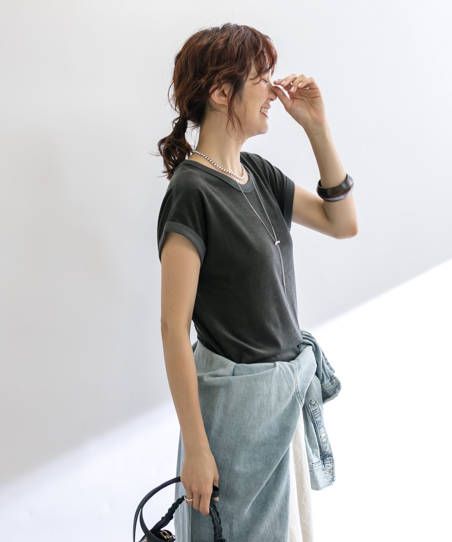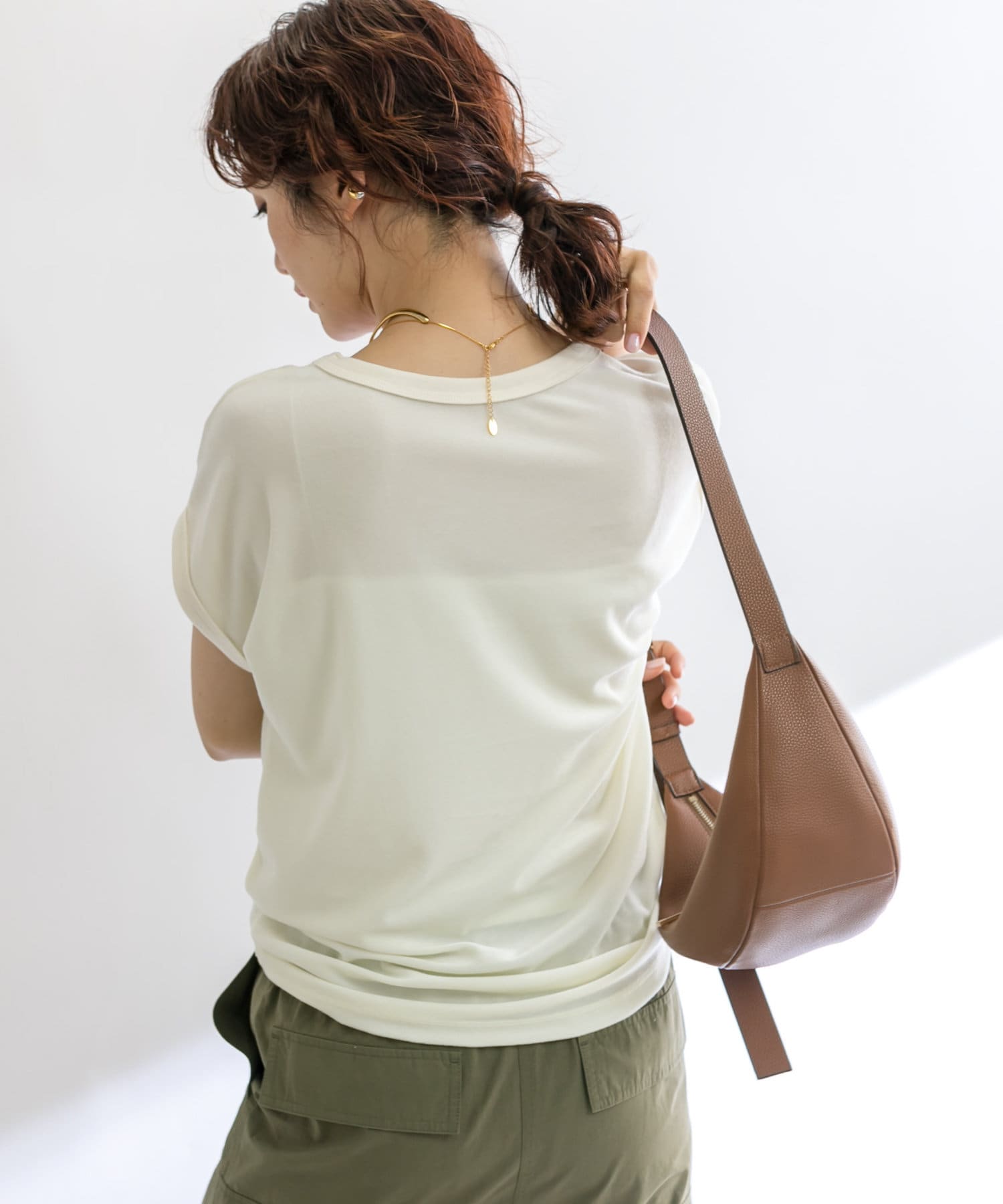 程よい光沢感でカジュアルになりすぎず、大人なパイルカットソーです。