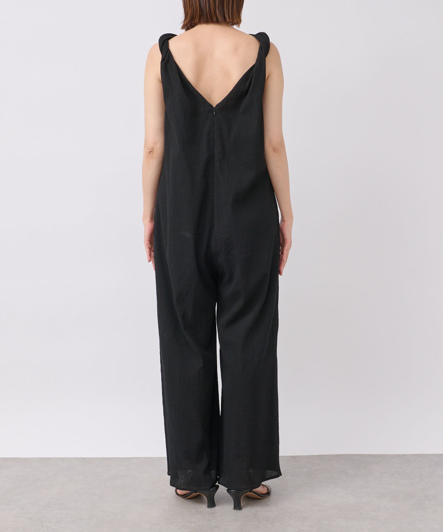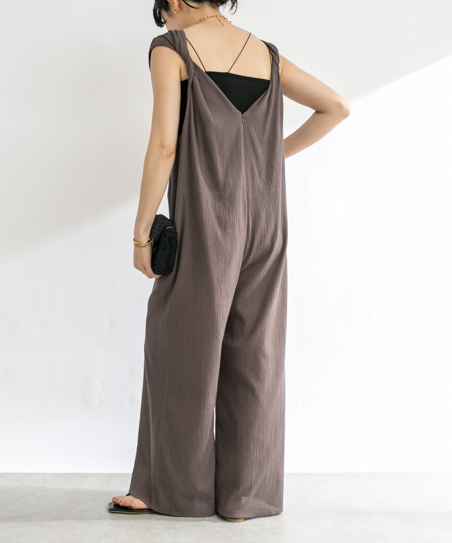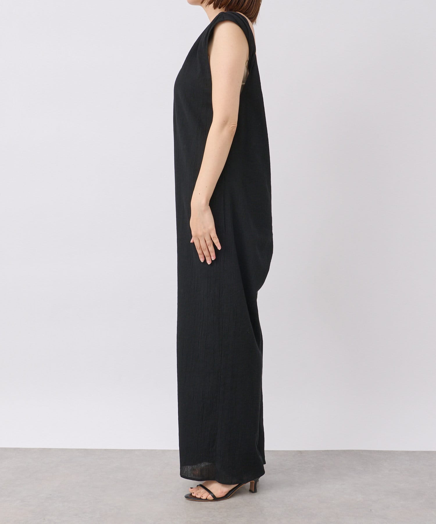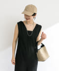 Uに開いたネックラインや、後ろのツイストディテールがポイントになり、1枚で様になります。
