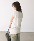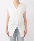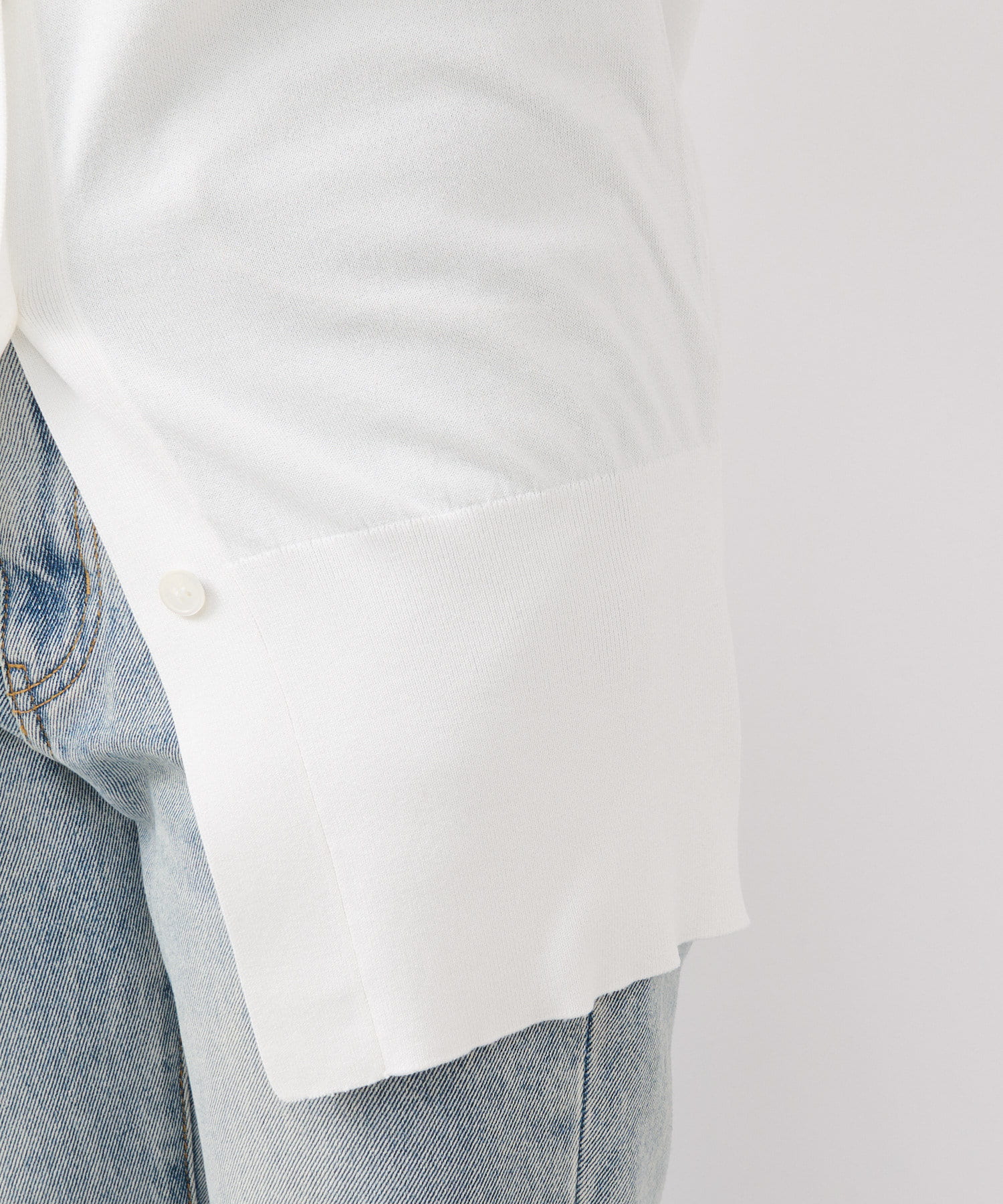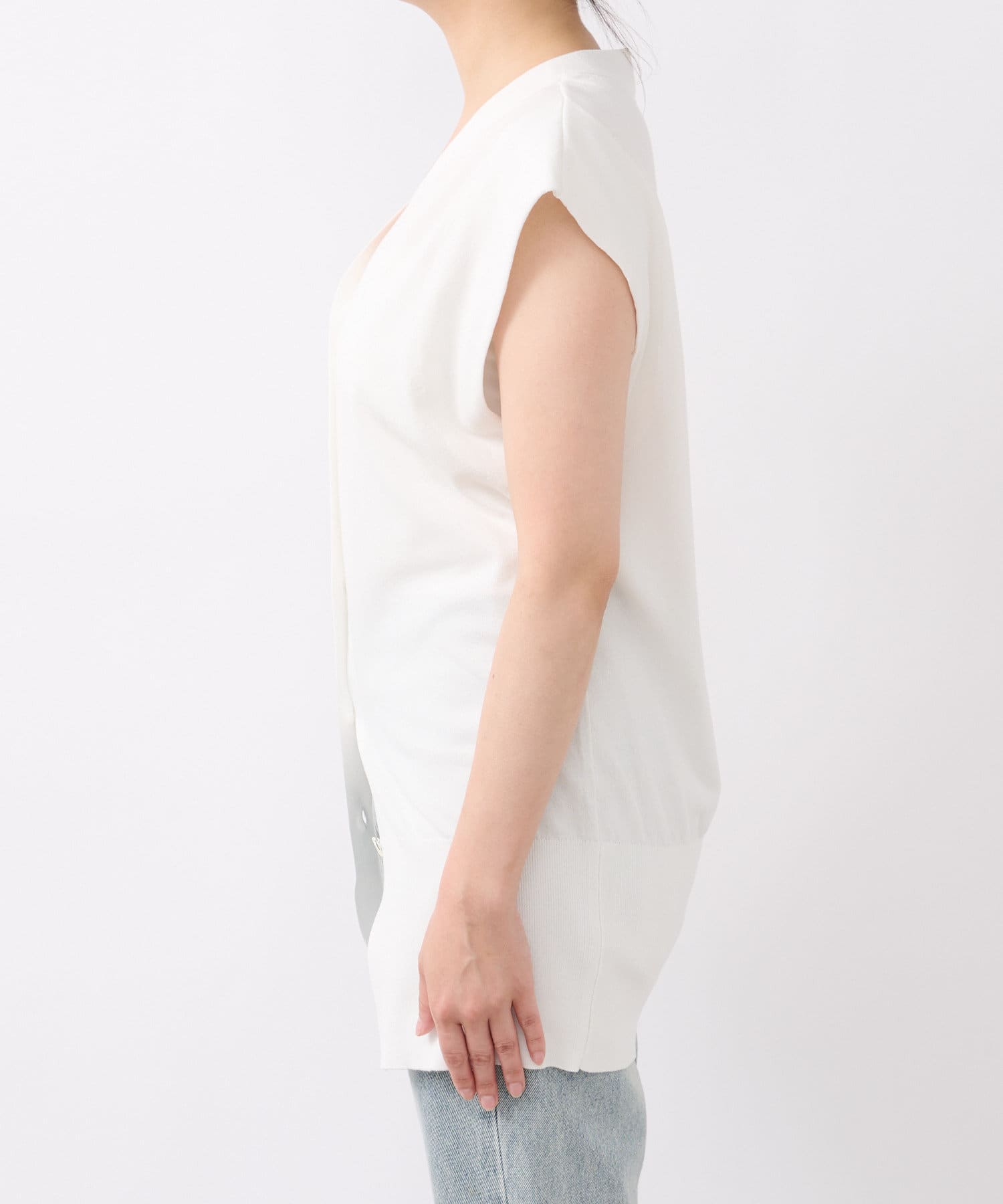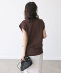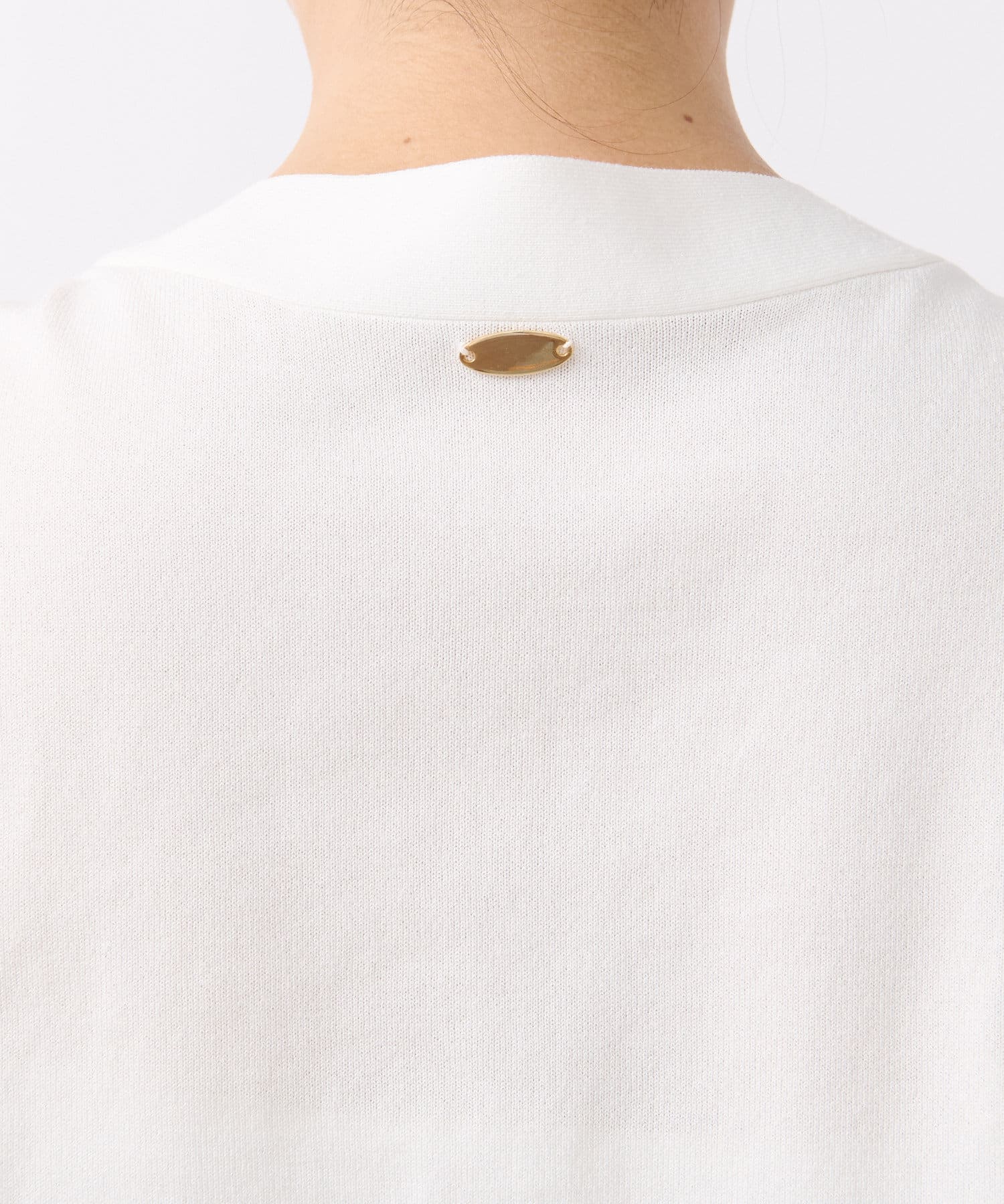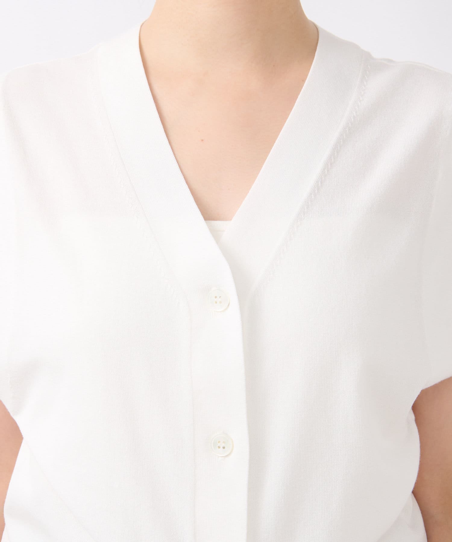 シャープなVネックと抜け感のあるリブデザインがポイント。