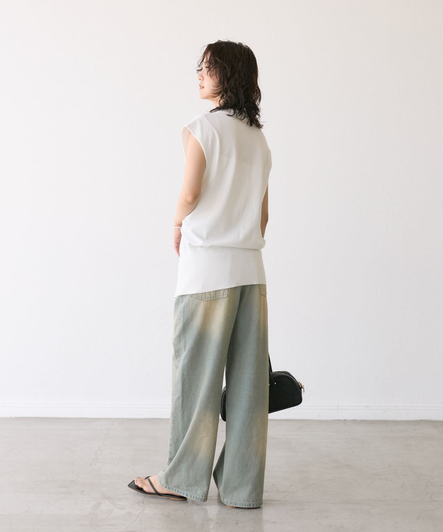 長めのリブが程よくフィットし、ウエストまわりに自然でやわらかなニュアンスがつくれるデザイン。