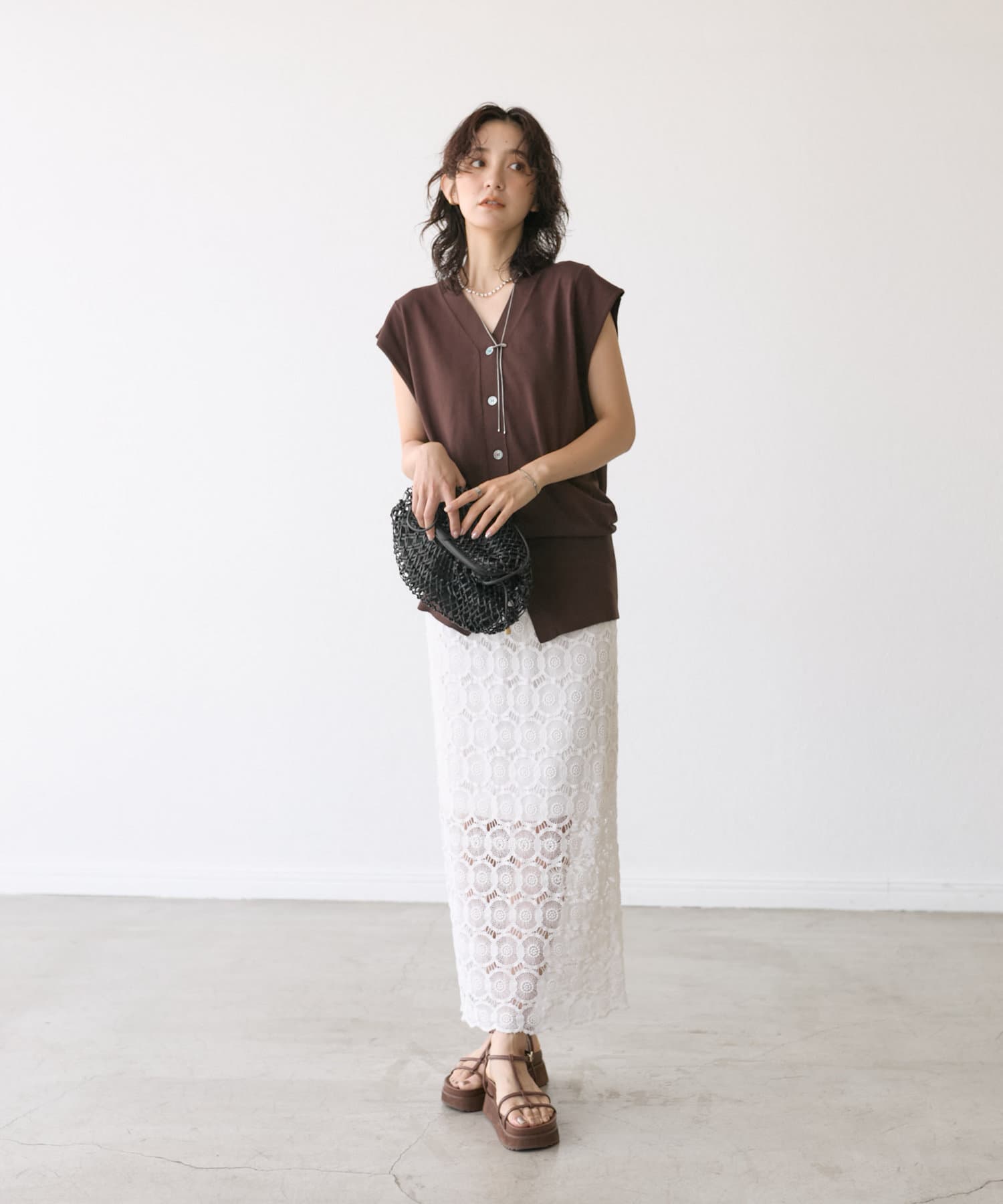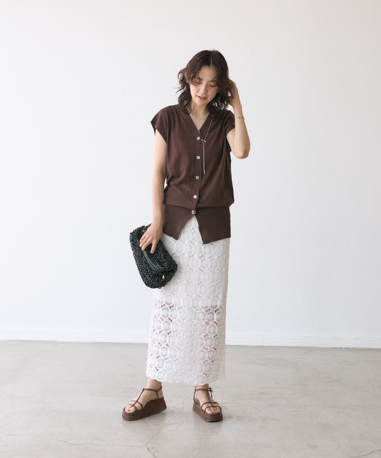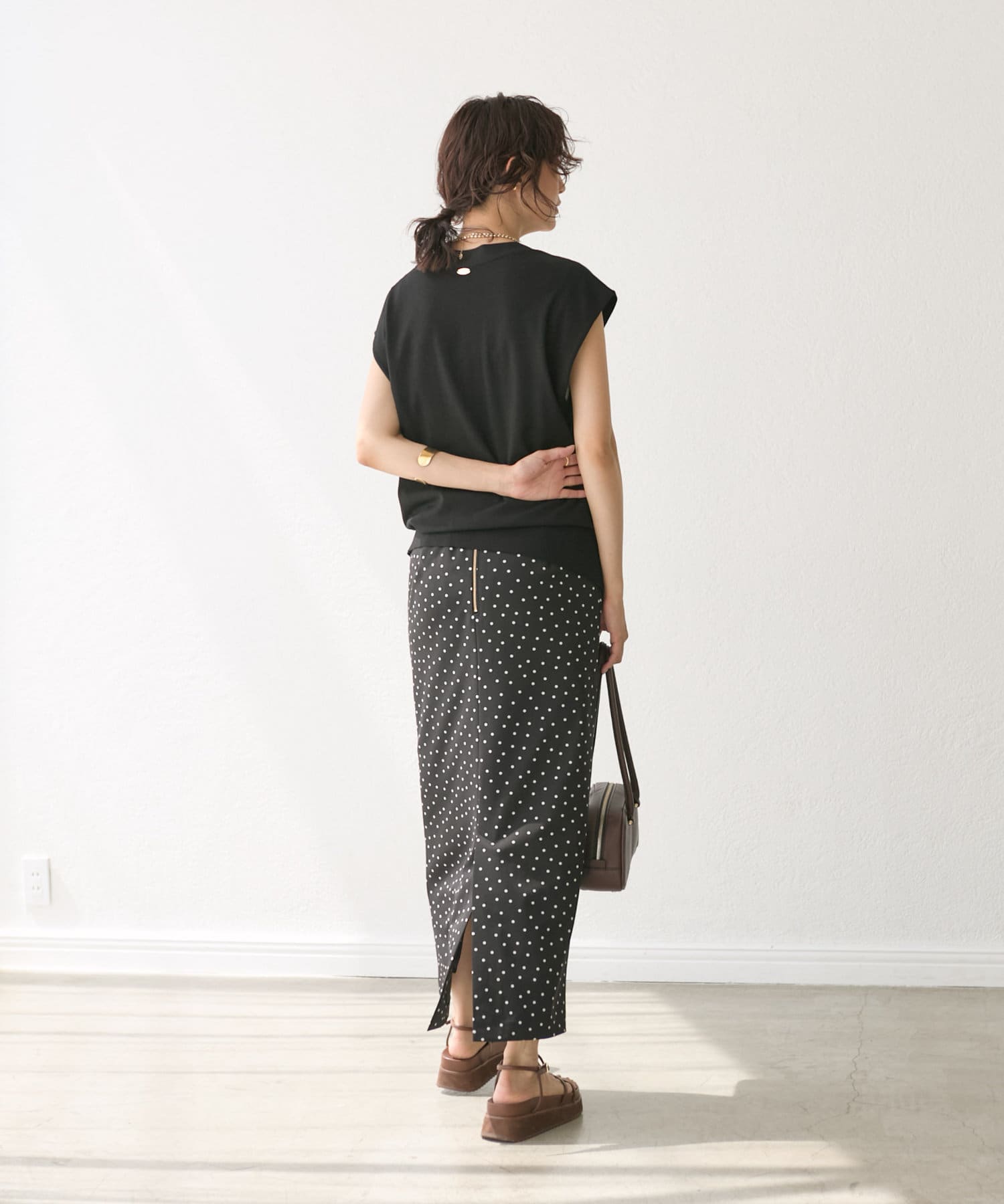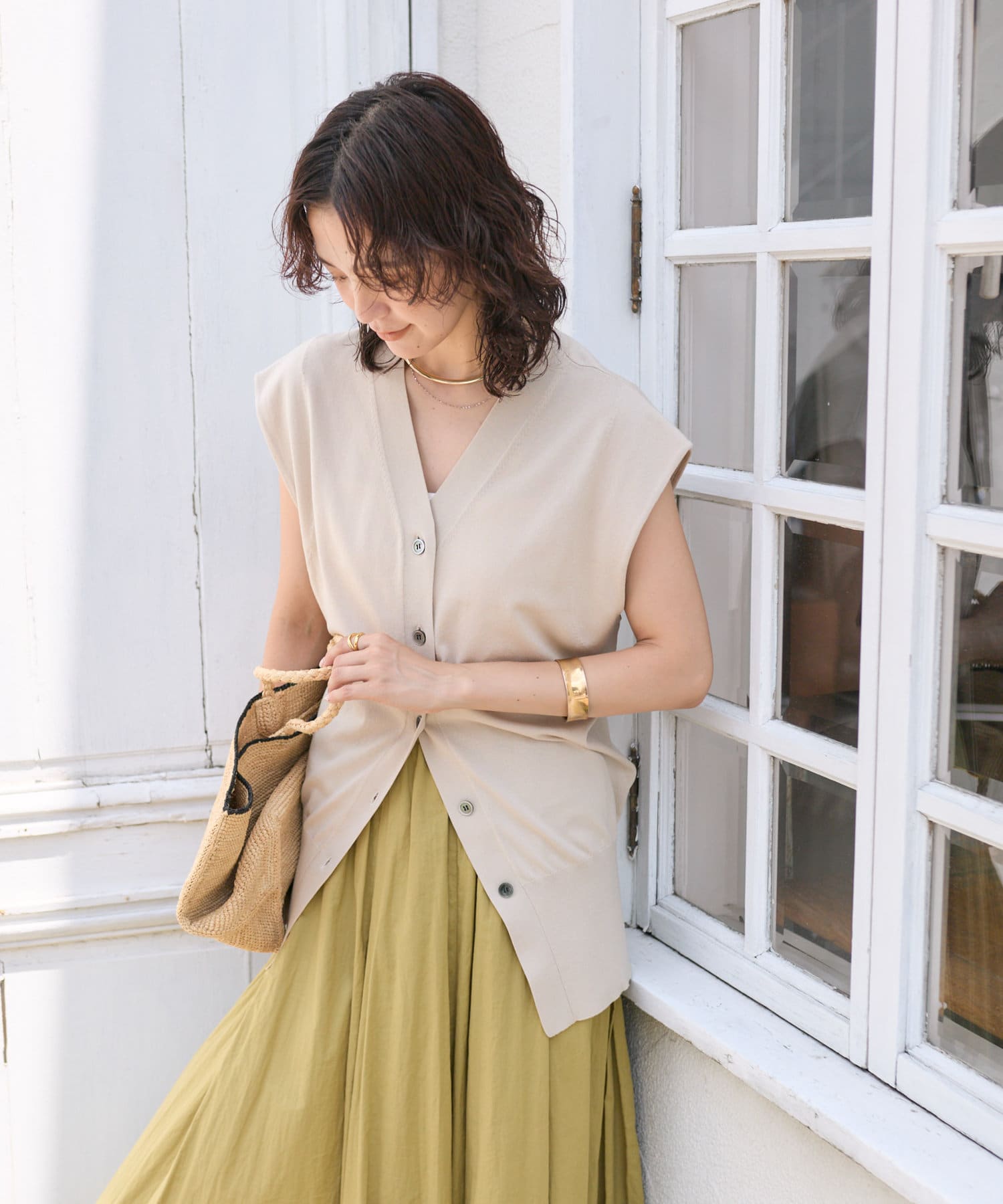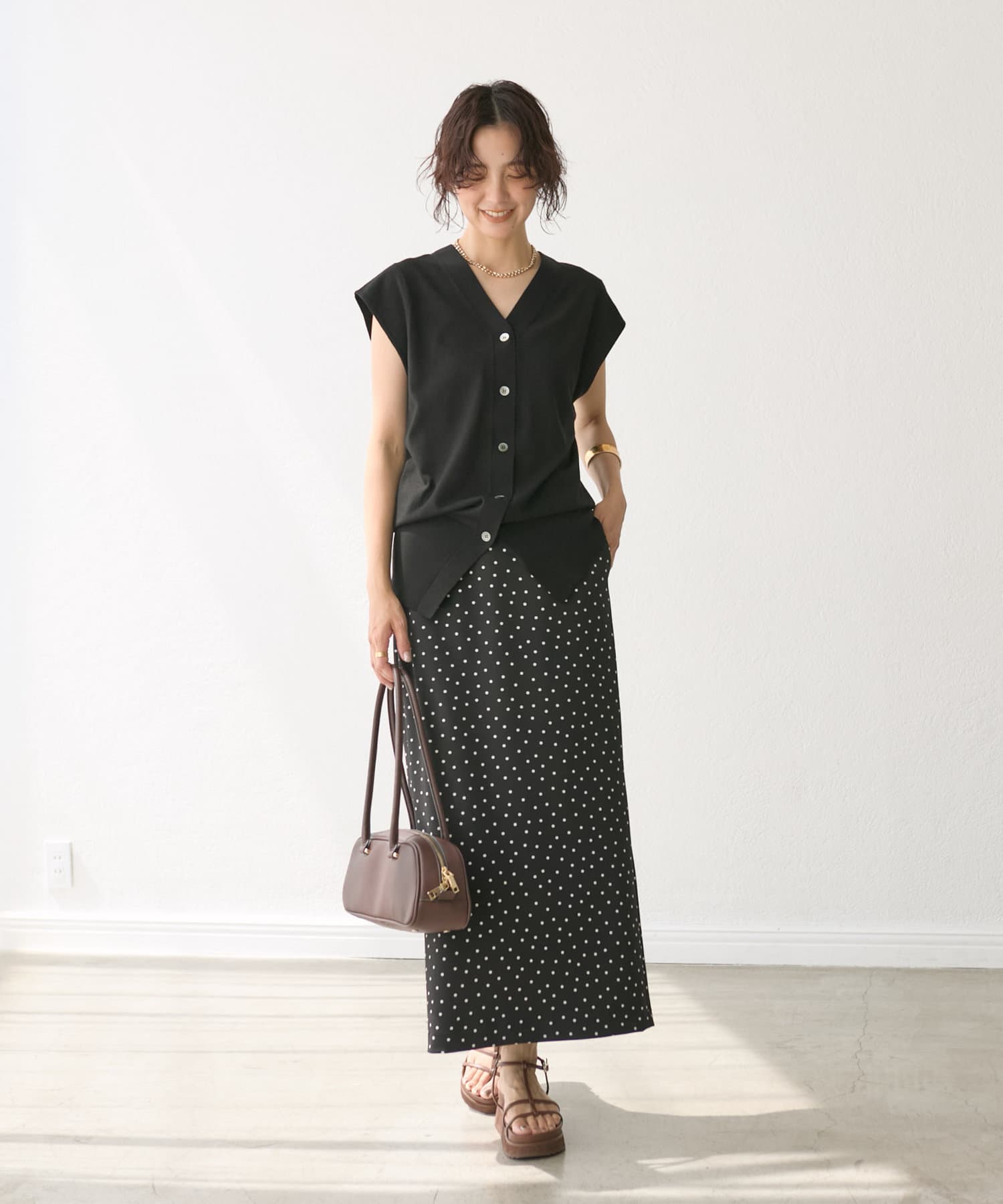 ボリュームのあるギャザーフレアースカートにも、Iラインスカートにも合わせやすく、女性らしい印象で着用いただけます。