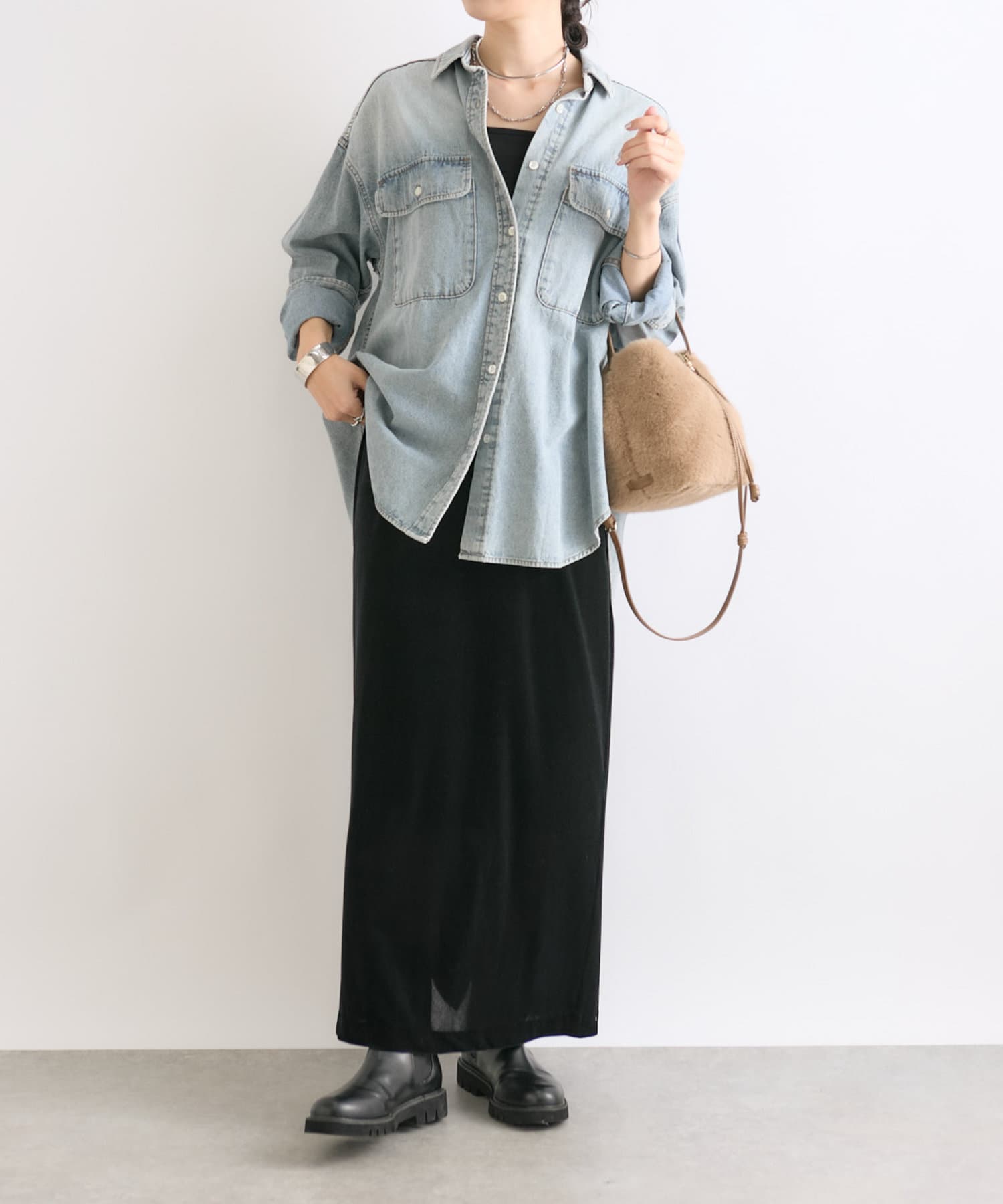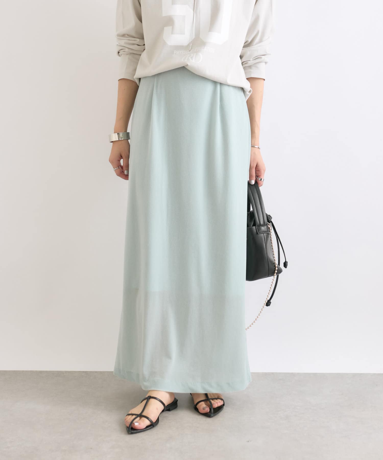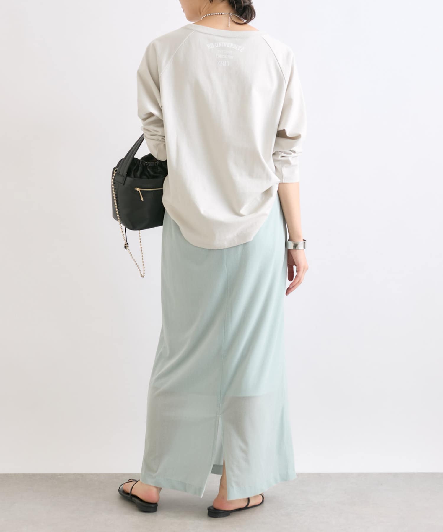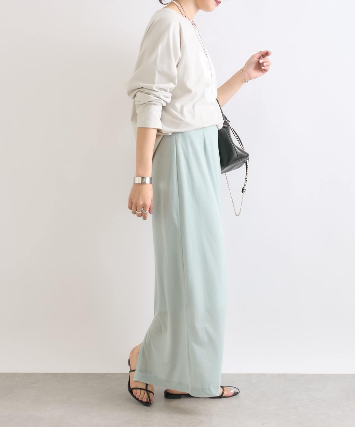 ぴったりとしすぎない裾巾なので、程よく体から離れつつすっきり見えるバランス感も着やすい一枚です。