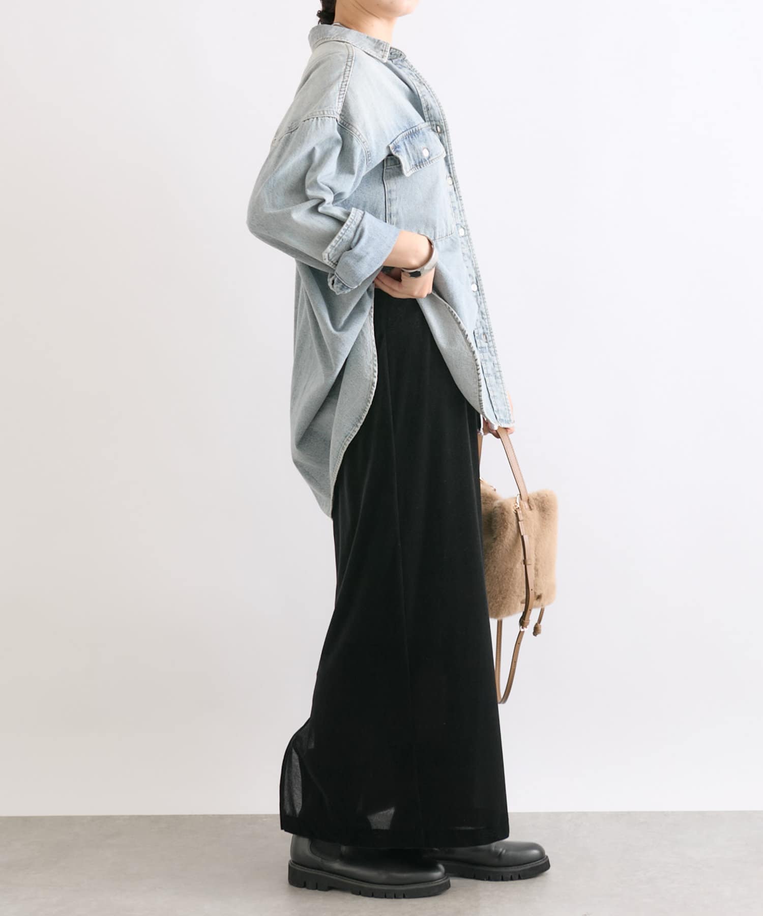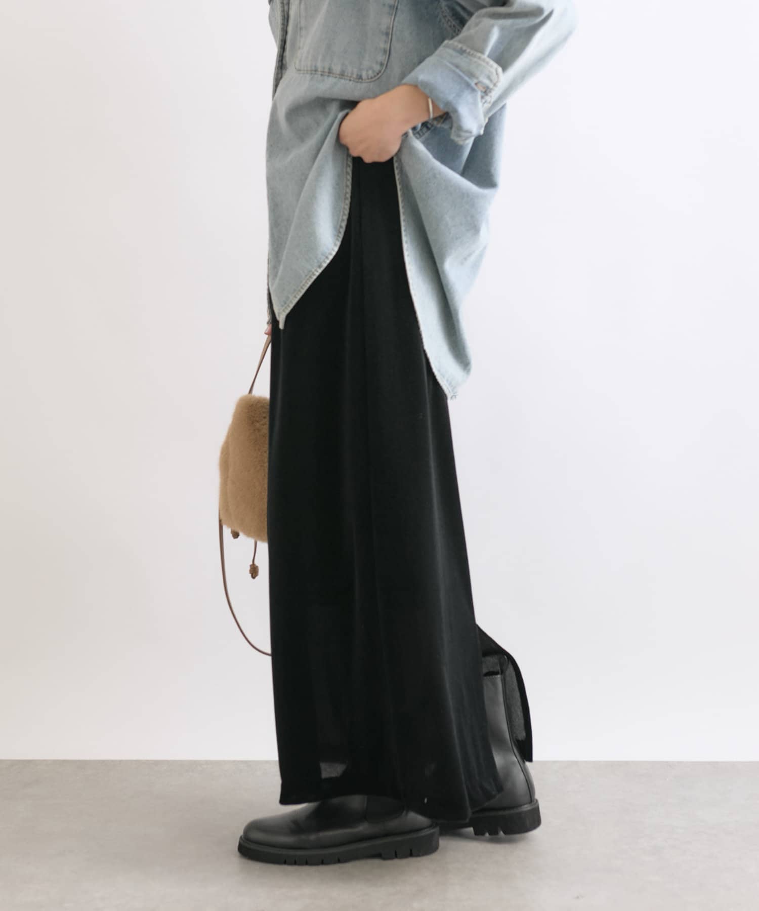 2024年秋冬のトレンドであるベロア素材を使用したアイラインスカート。