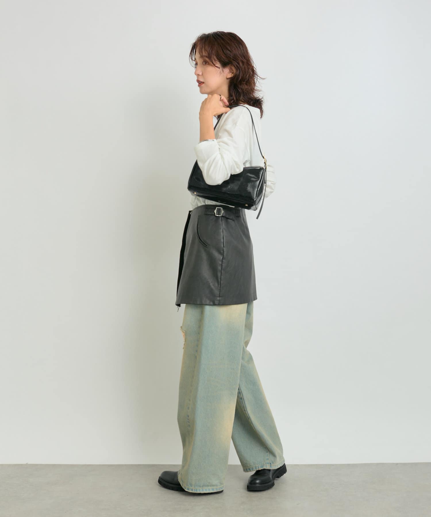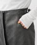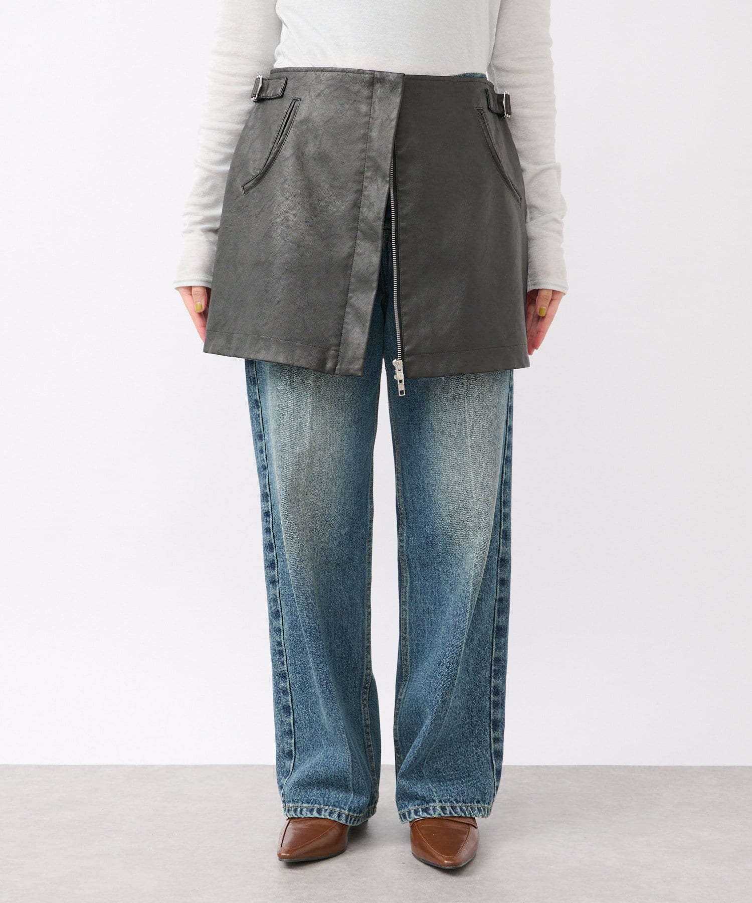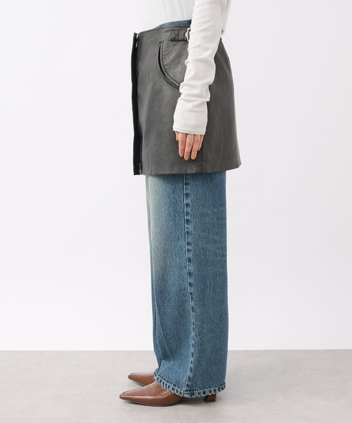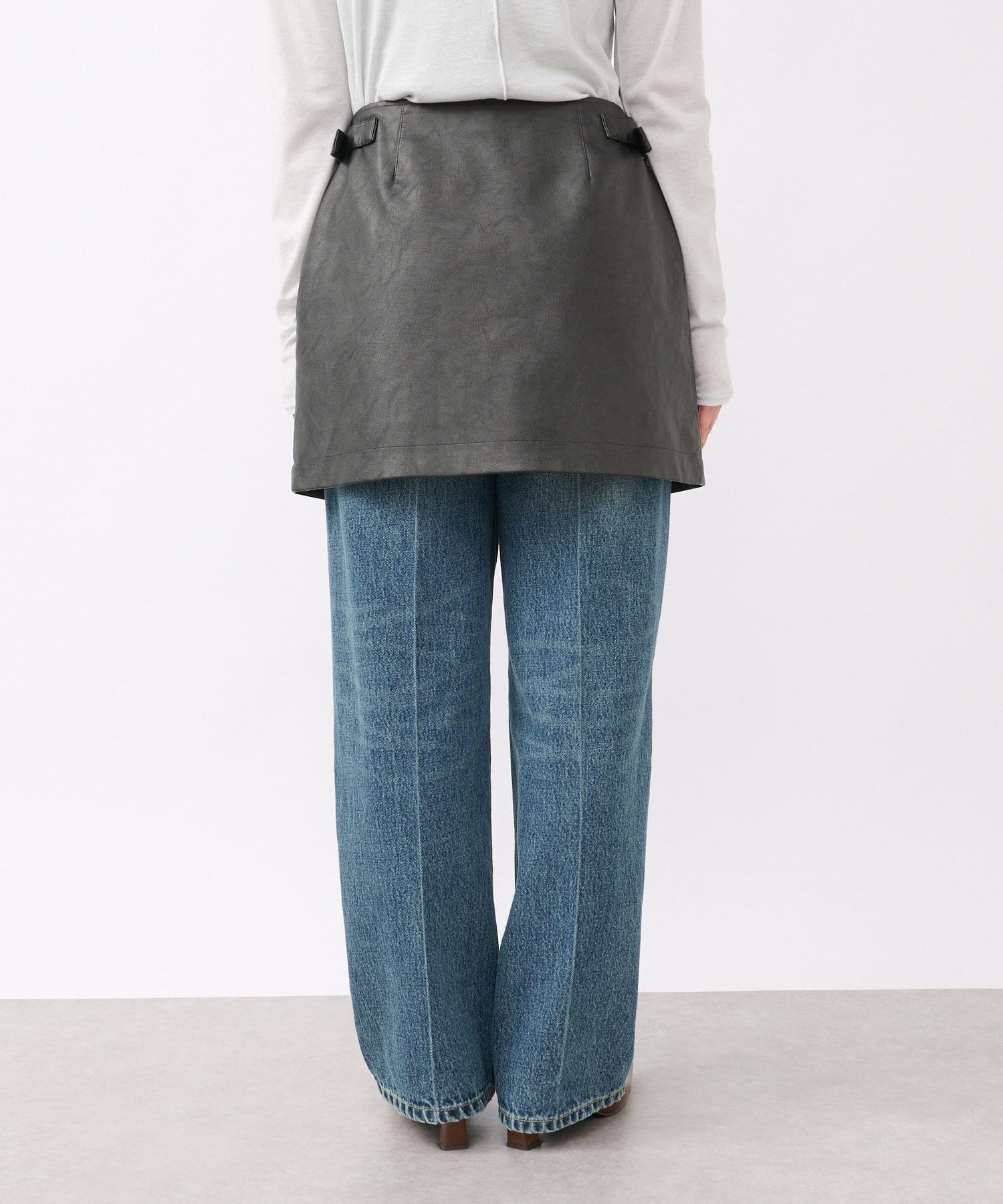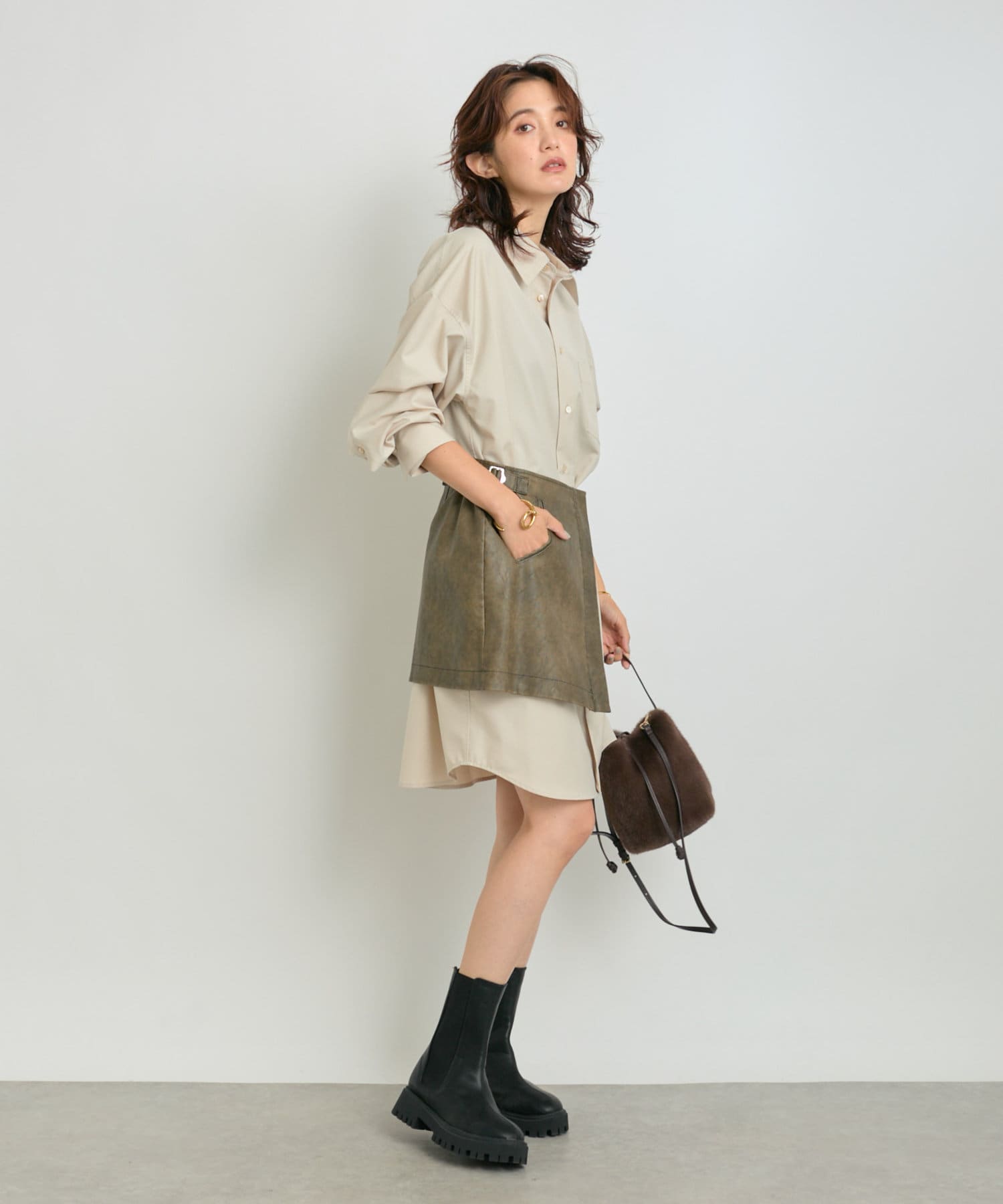 洗い加工をかけたフェイクレザーを使用したヴィンテージムードのあるオーバースカート。