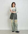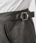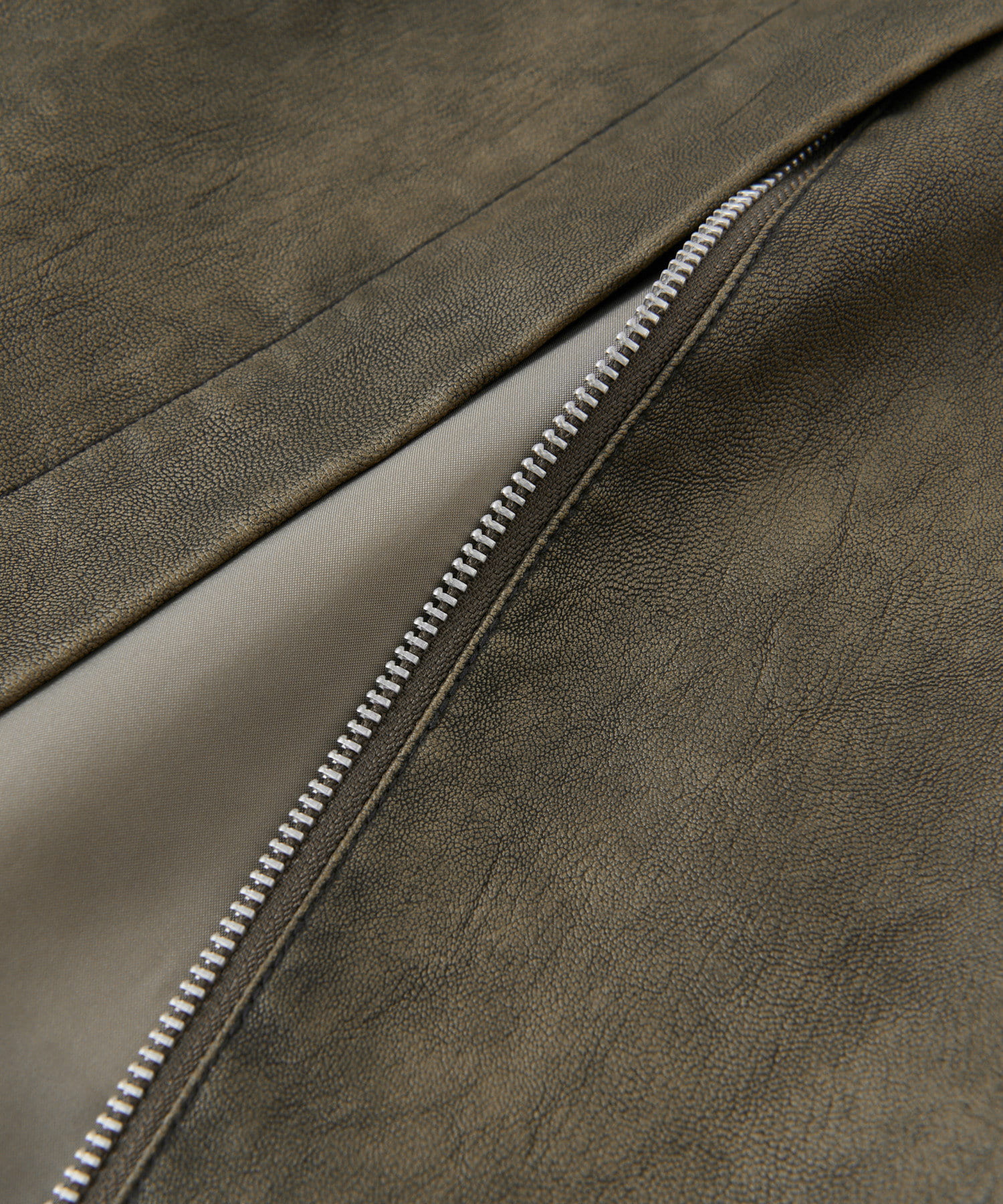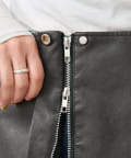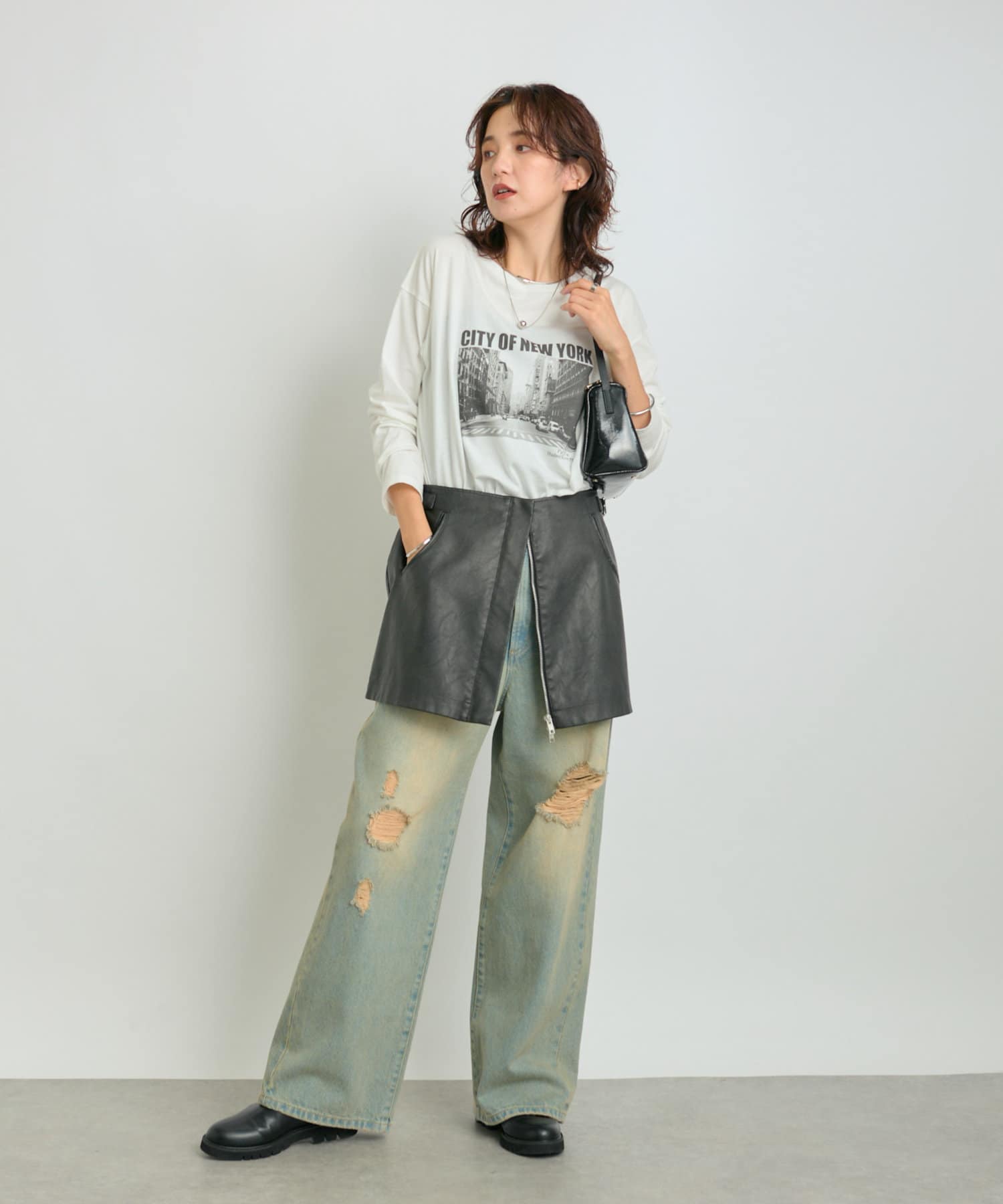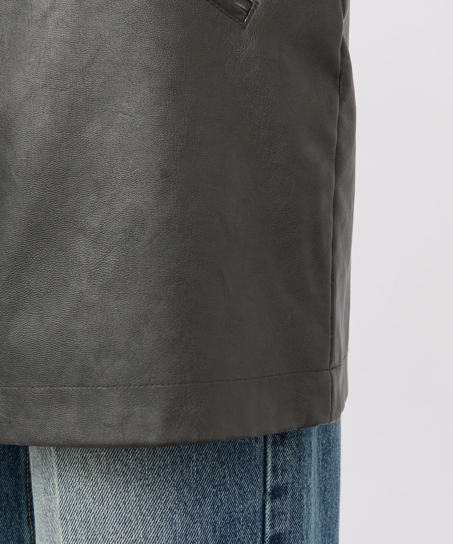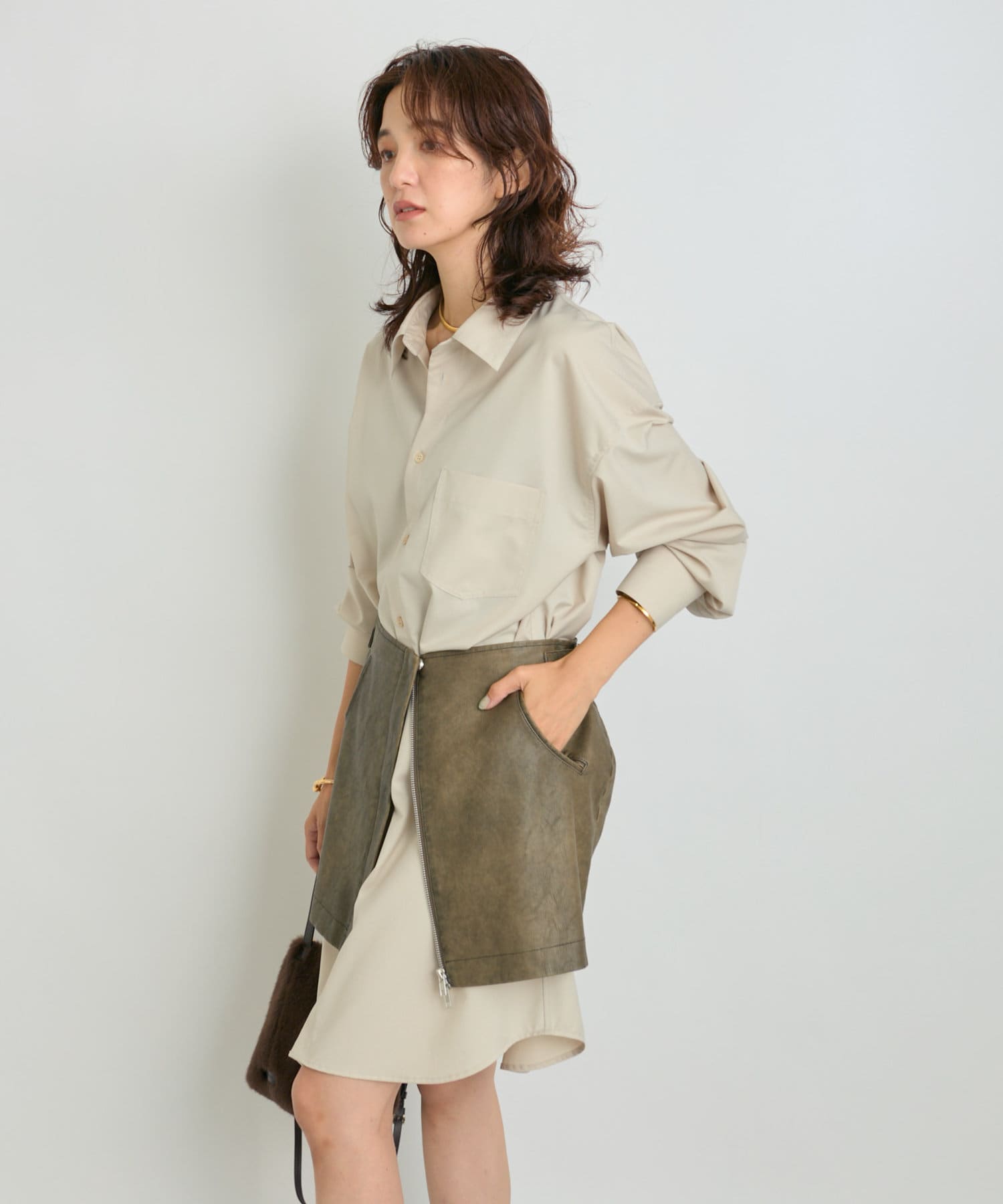 洗い加工をかけたフェイクレザーを使用したヴィンテージムードのあるオーバースカート。