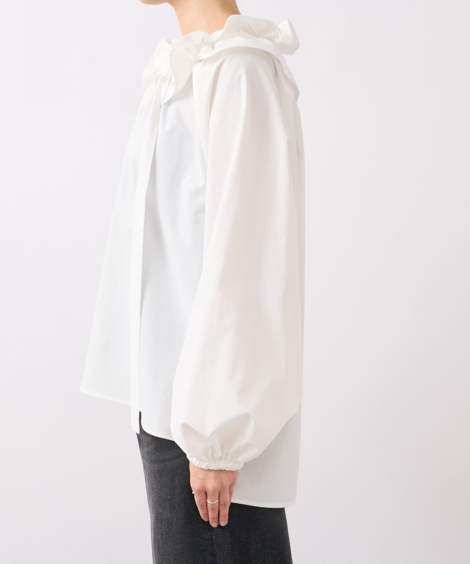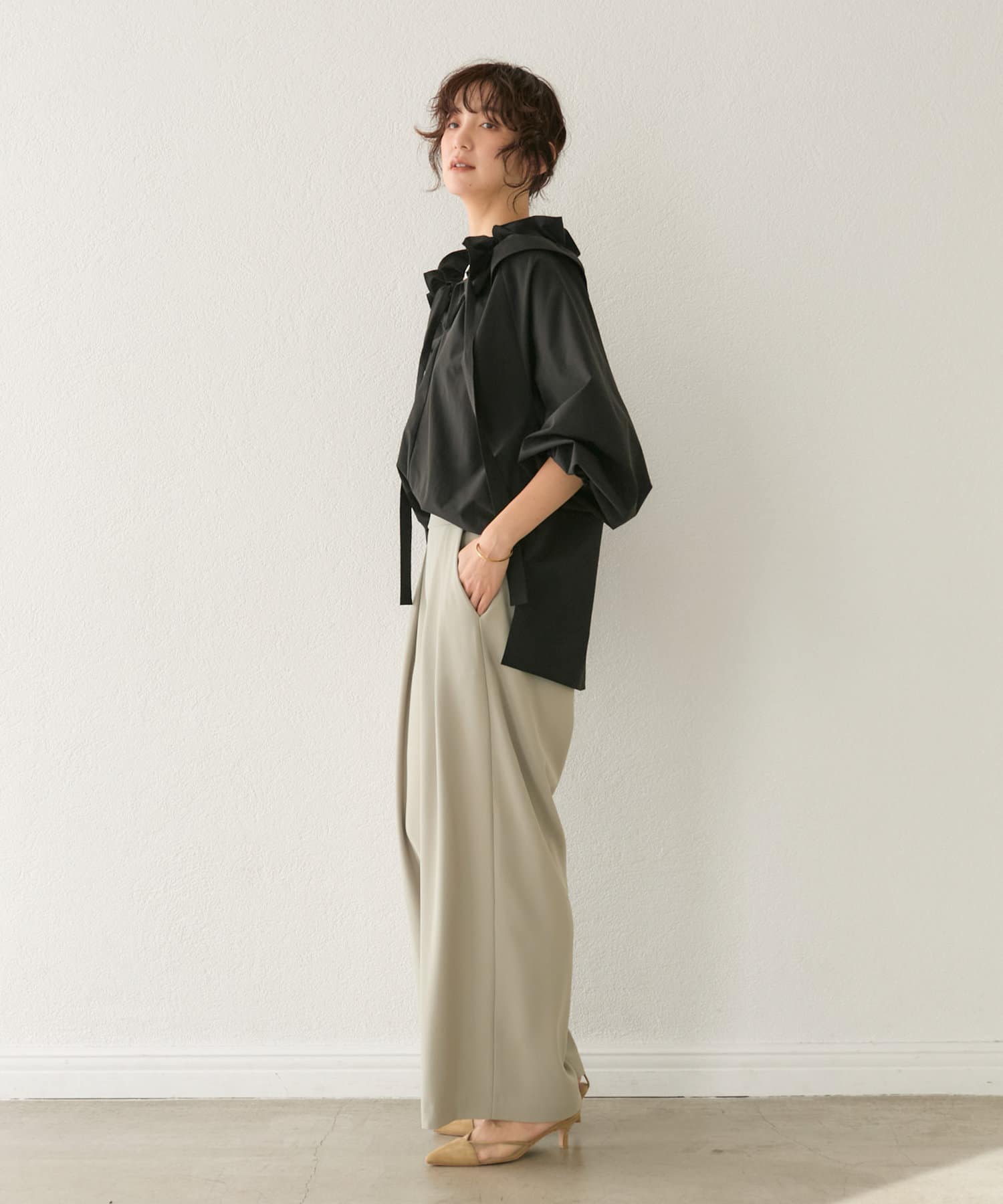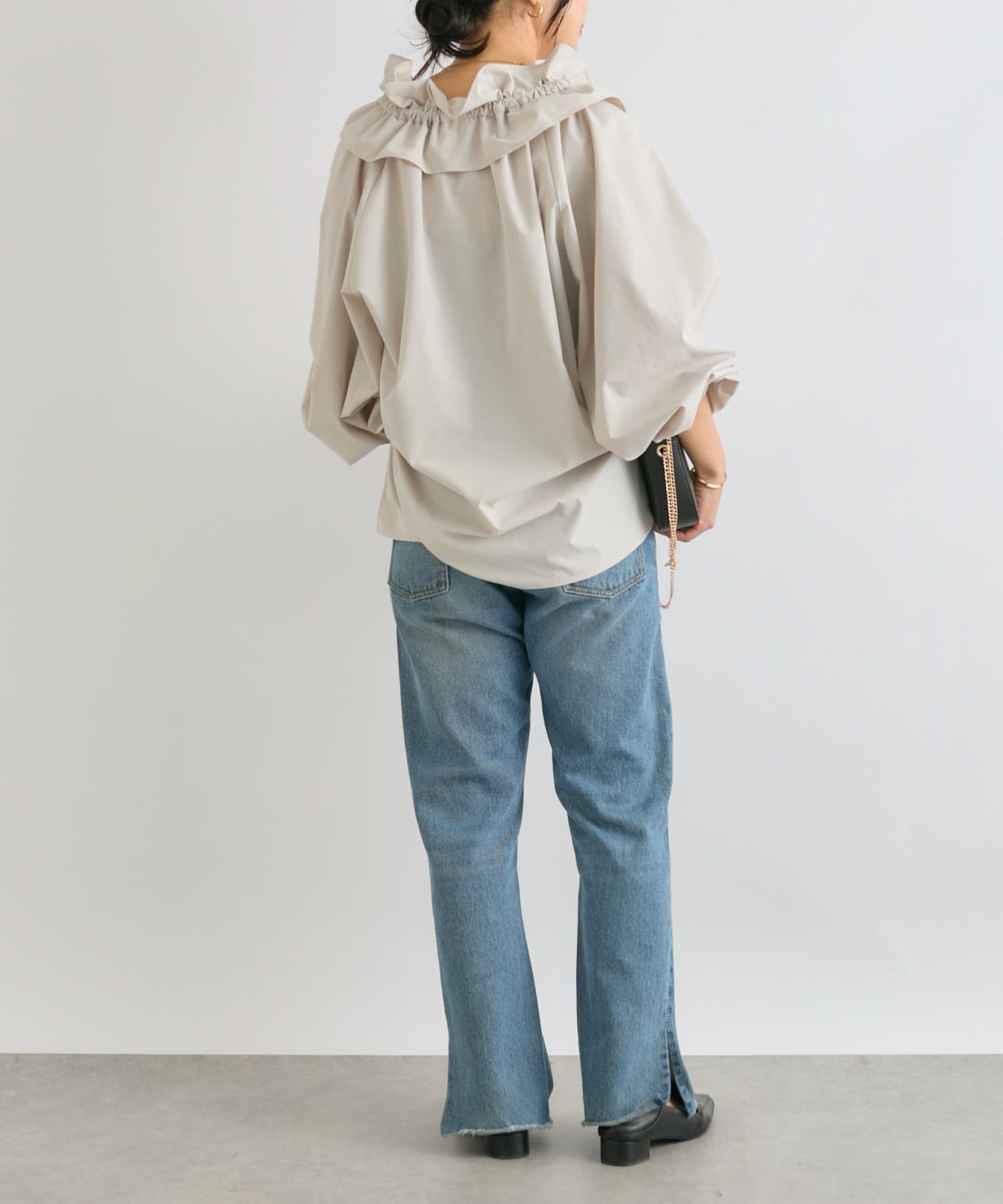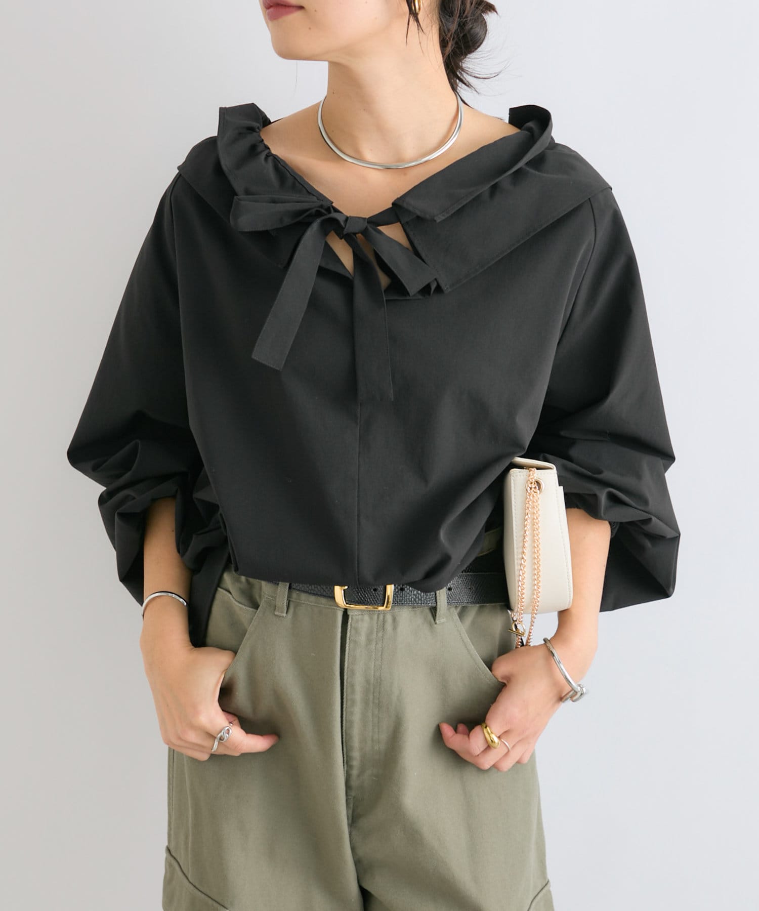 くしゅくしゅっとギャザーを寄せてフェミニンに仕上げたり、ギャザーを寄せずにフラットな衿にしてみたりと自由自在。