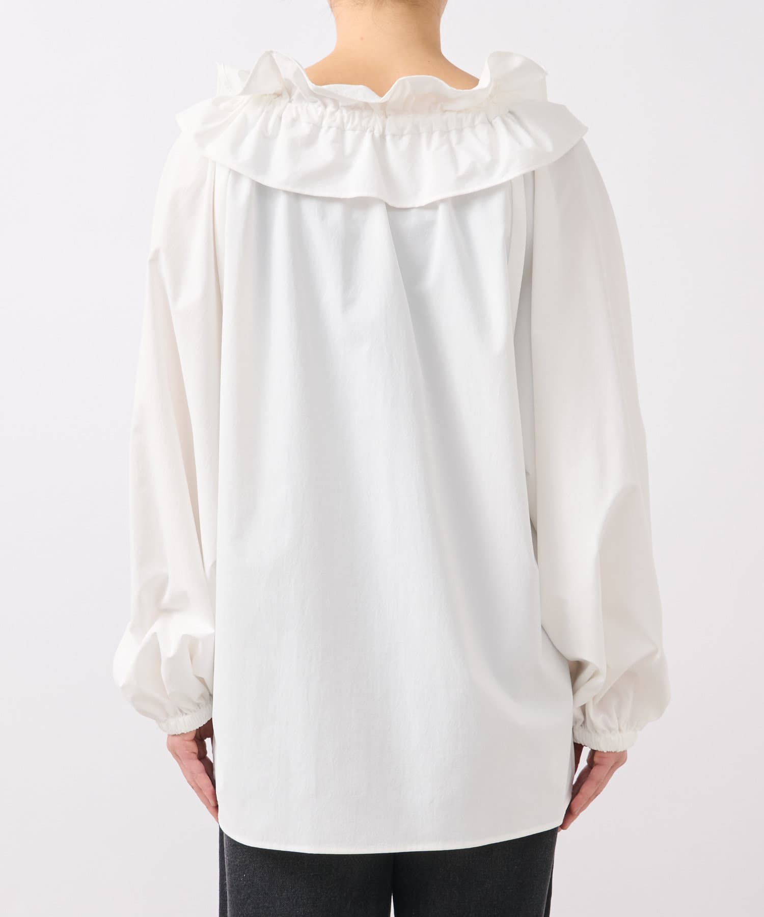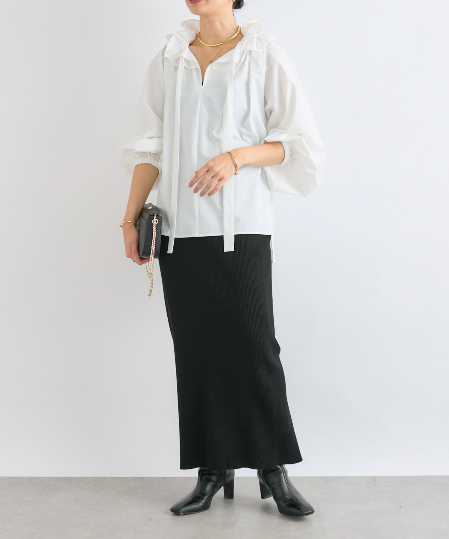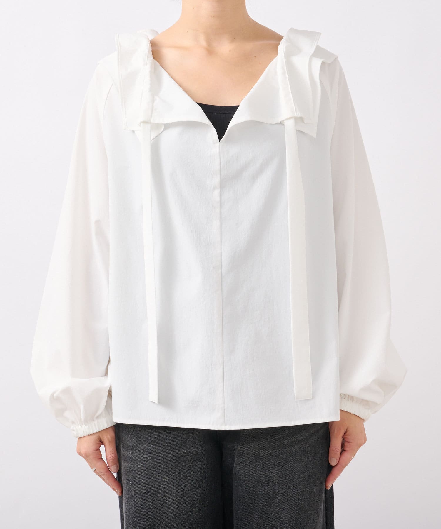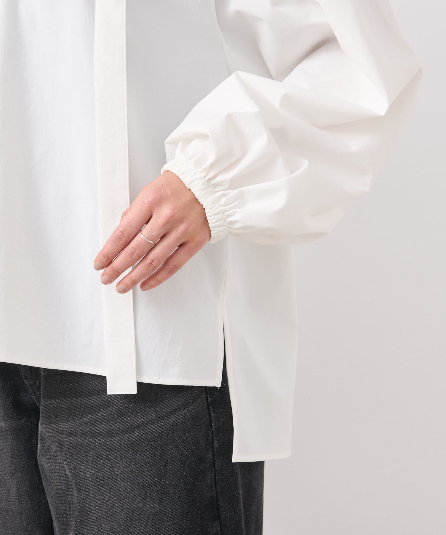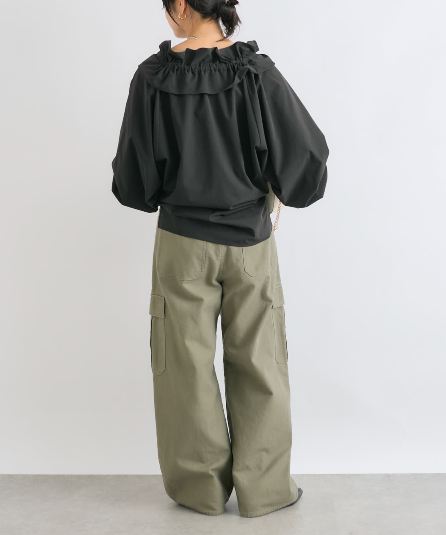 くしゅくしゅっとギャザーを寄せてフェミニンに仕上げたり、ギャザーを寄せずにフラットな衿にしてみたりと自由自在。
