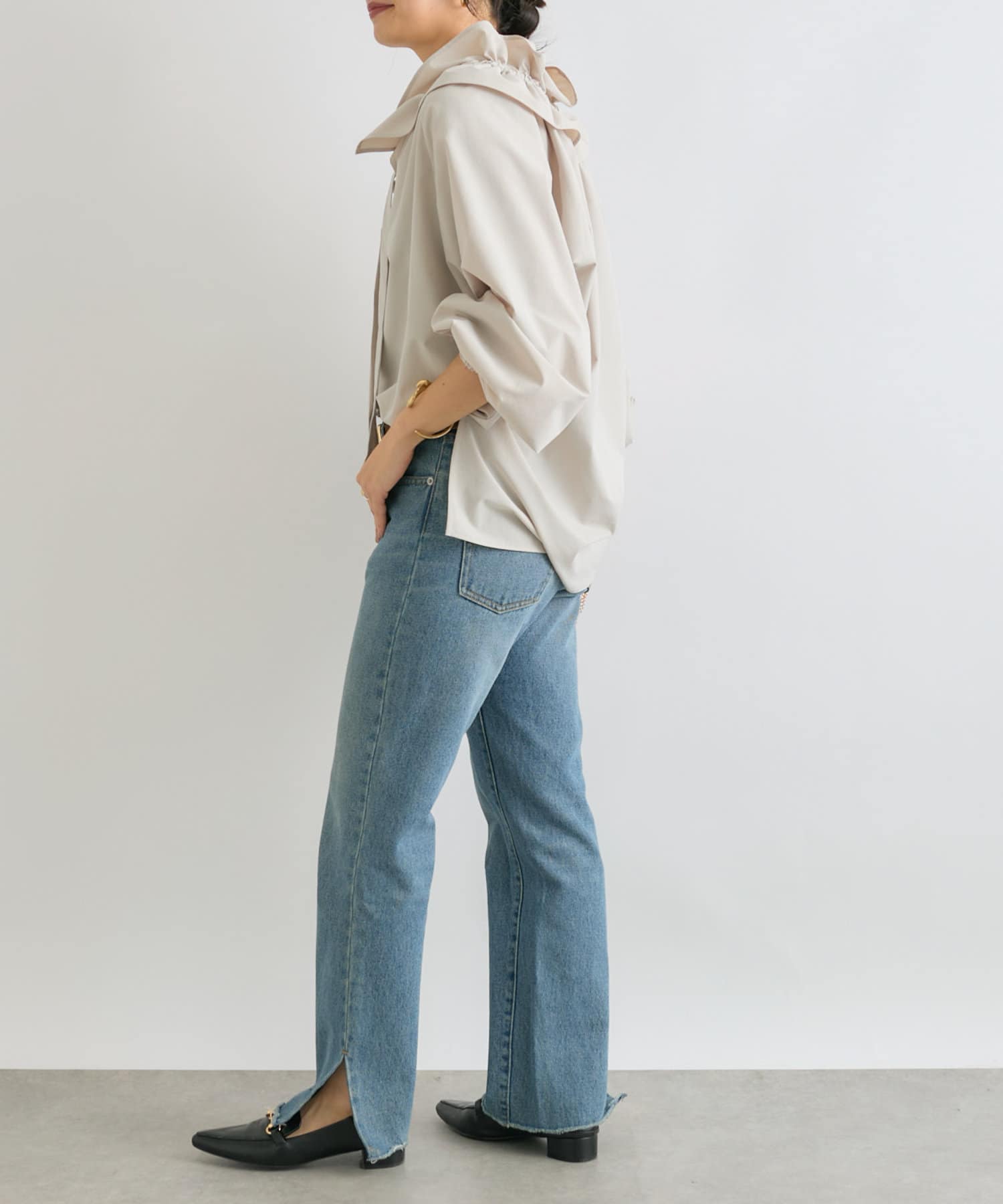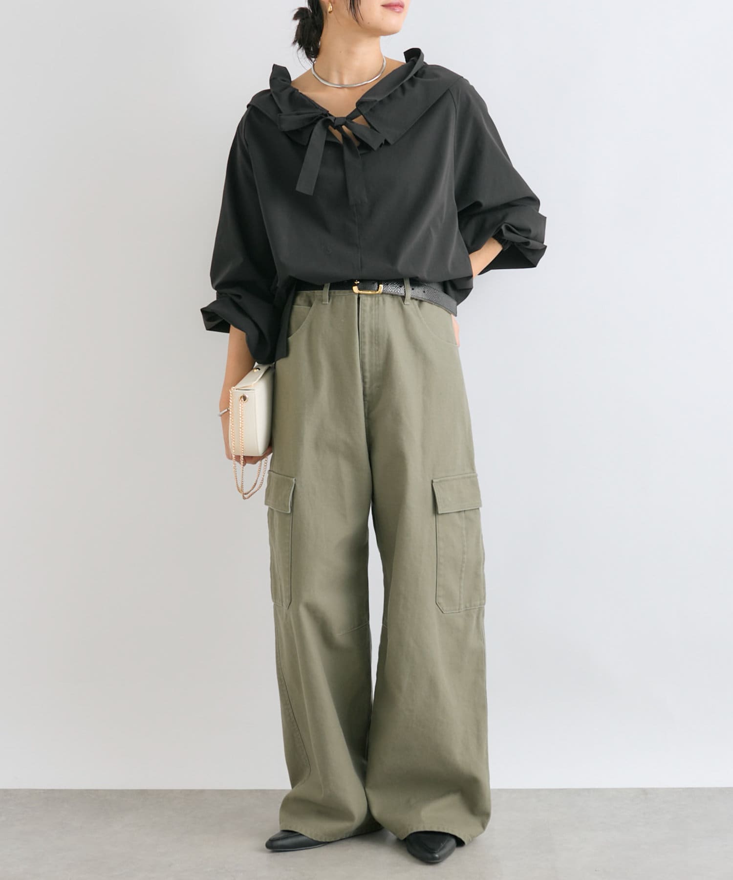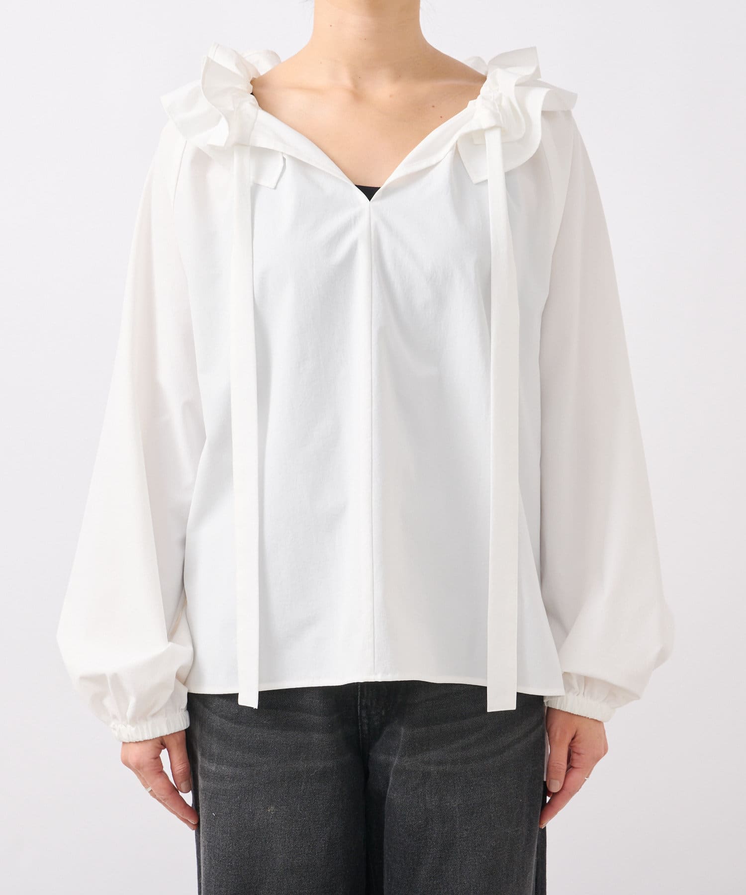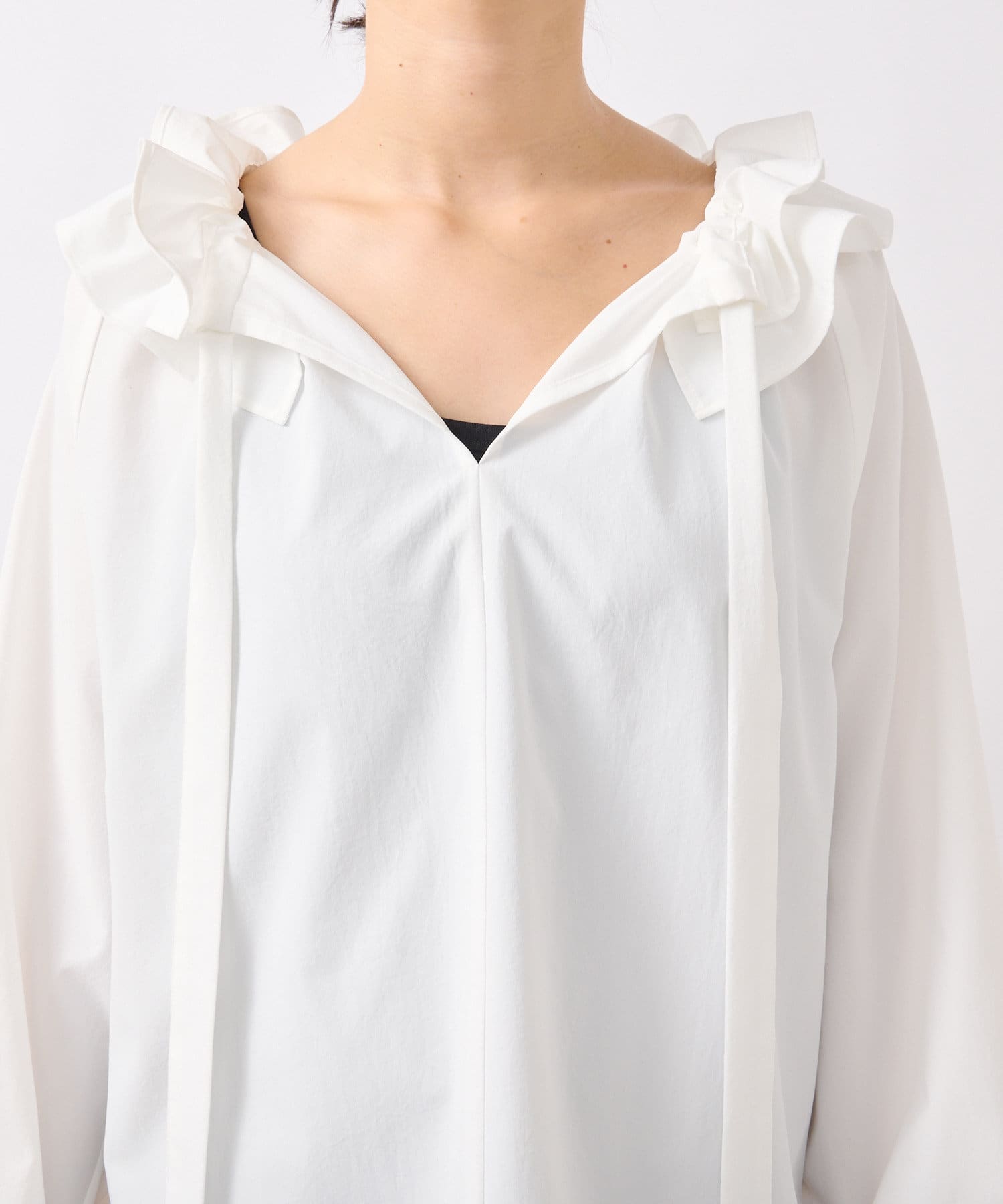 くしゅくしゅっとギャザーを寄せてフェミニンに仕上げたり、ギャザーを寄せずにフラットな衿にしてみたりと自由自在。