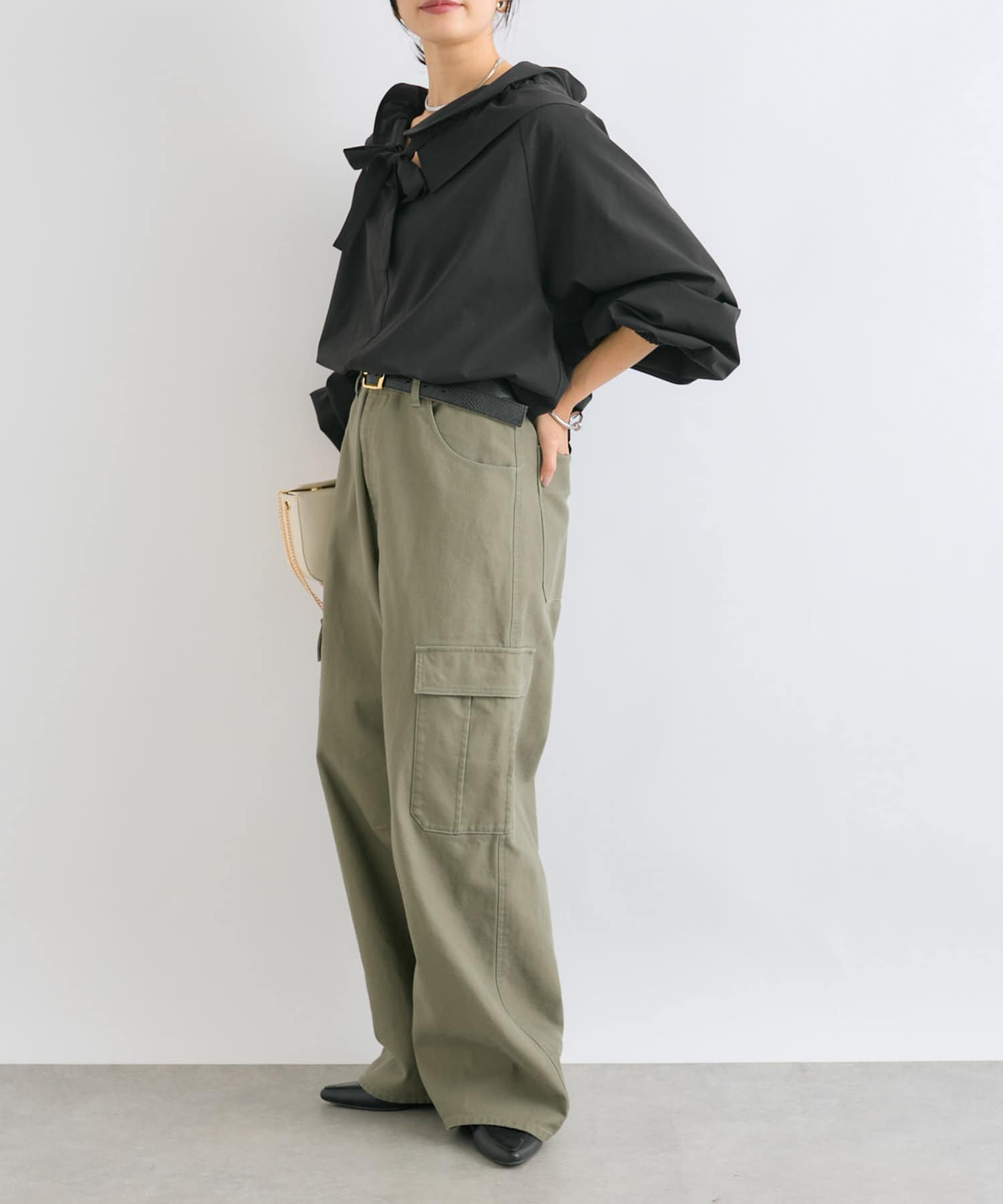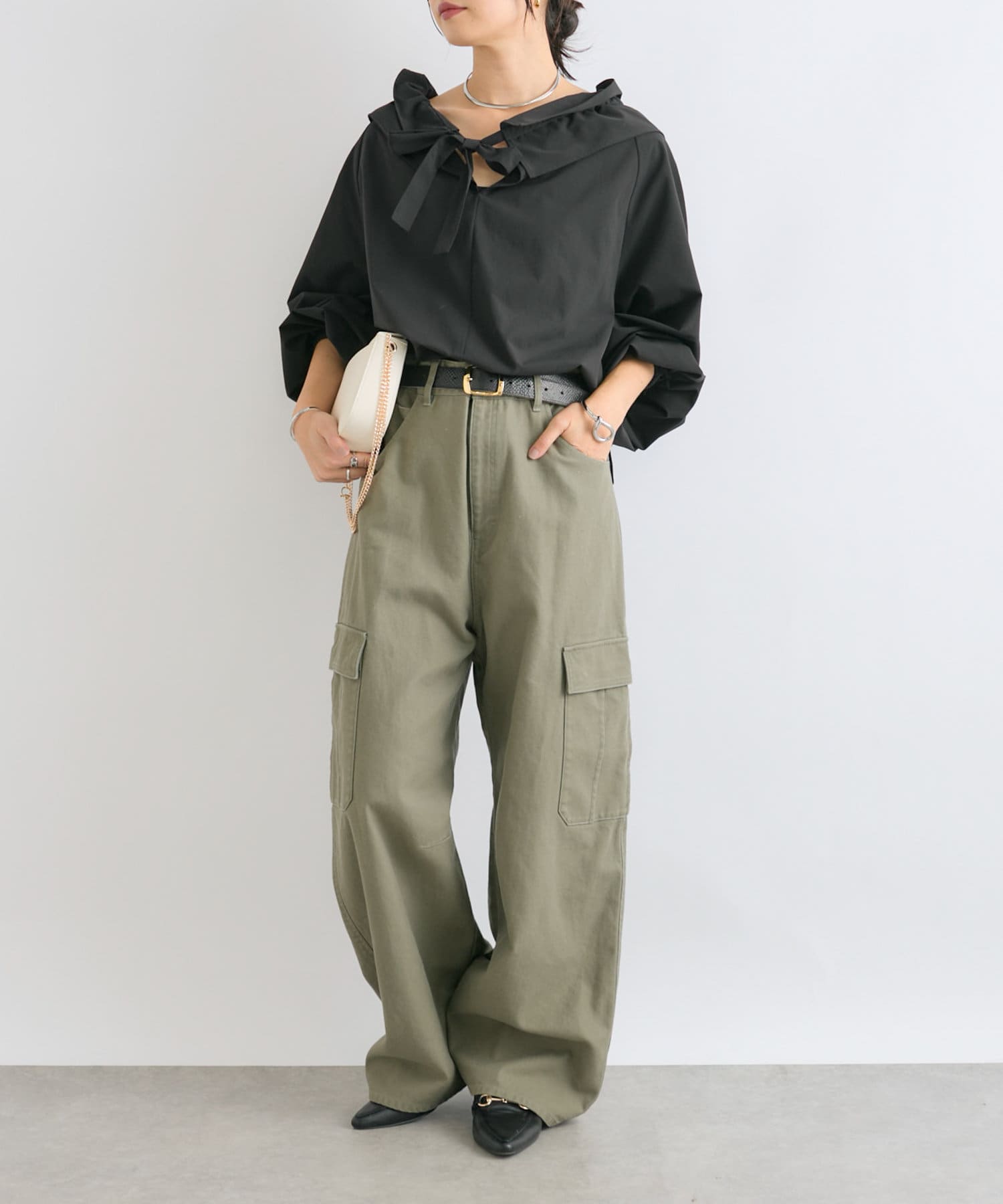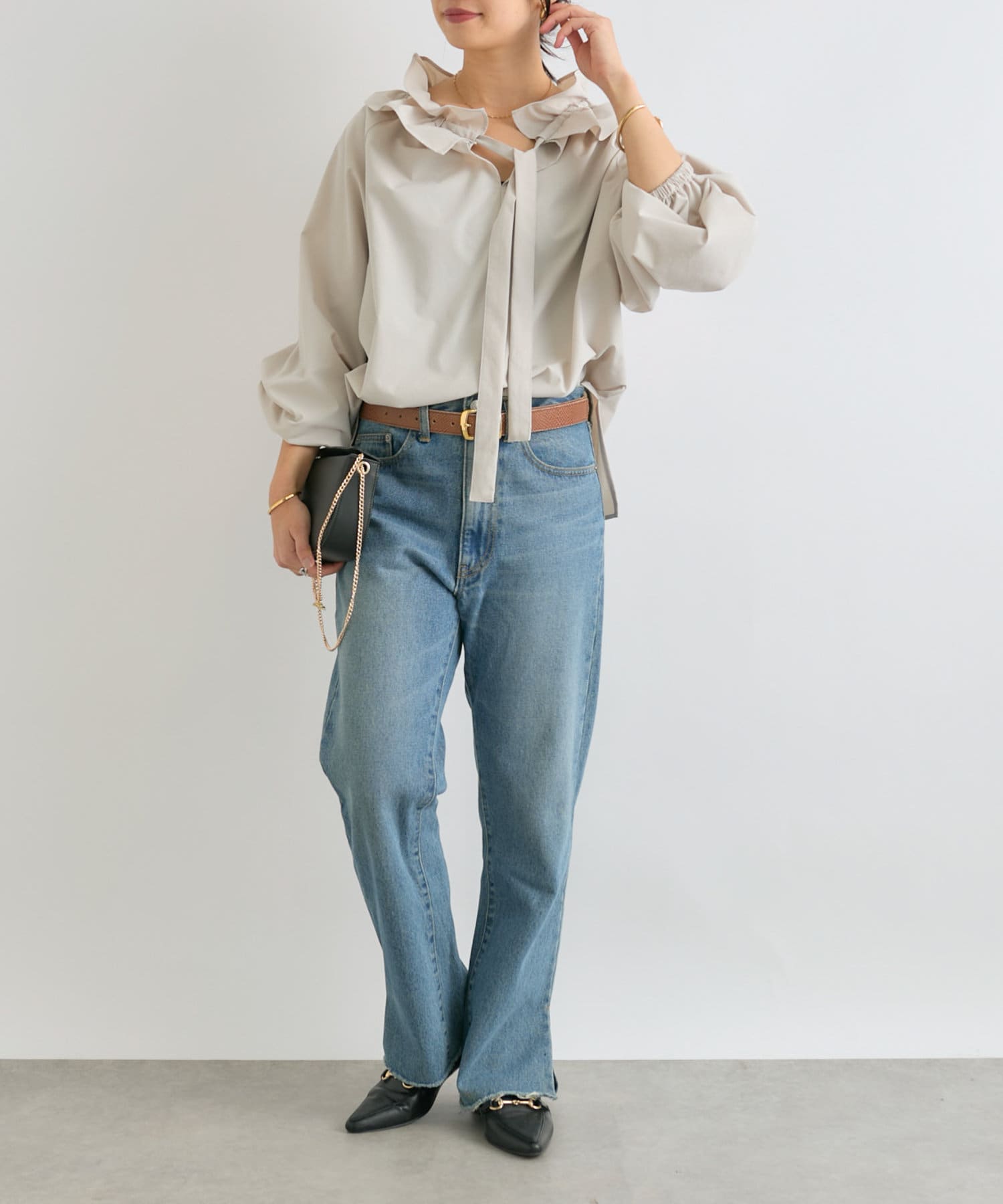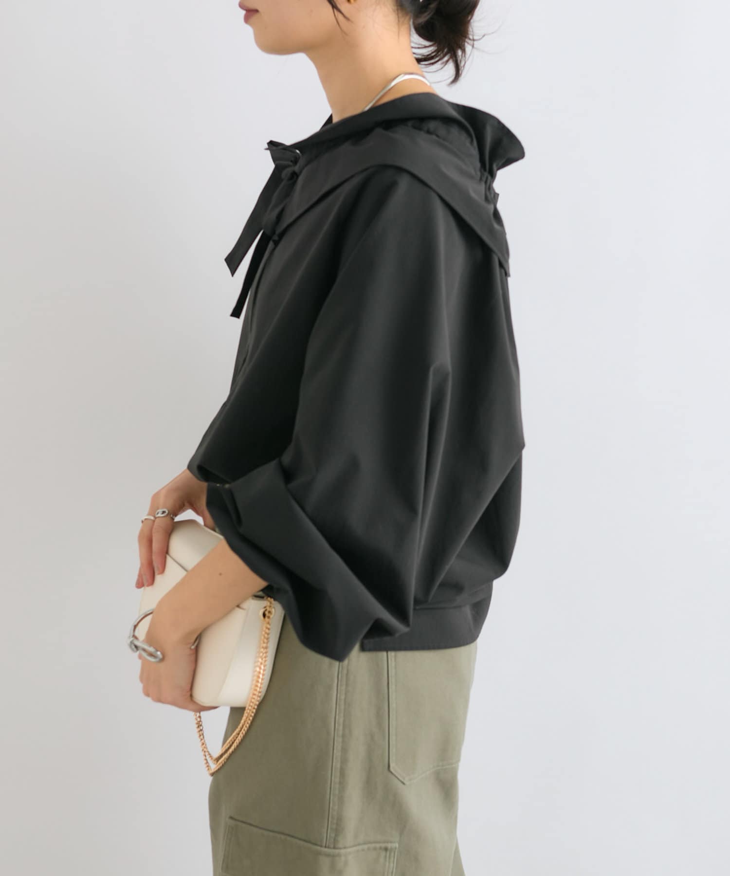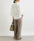 くしゅくしゅっとギャザーを寄せてフェミニンに仕上げたり、ギャザーを寄せずにフラットな衿にしてみたりと自由自在。