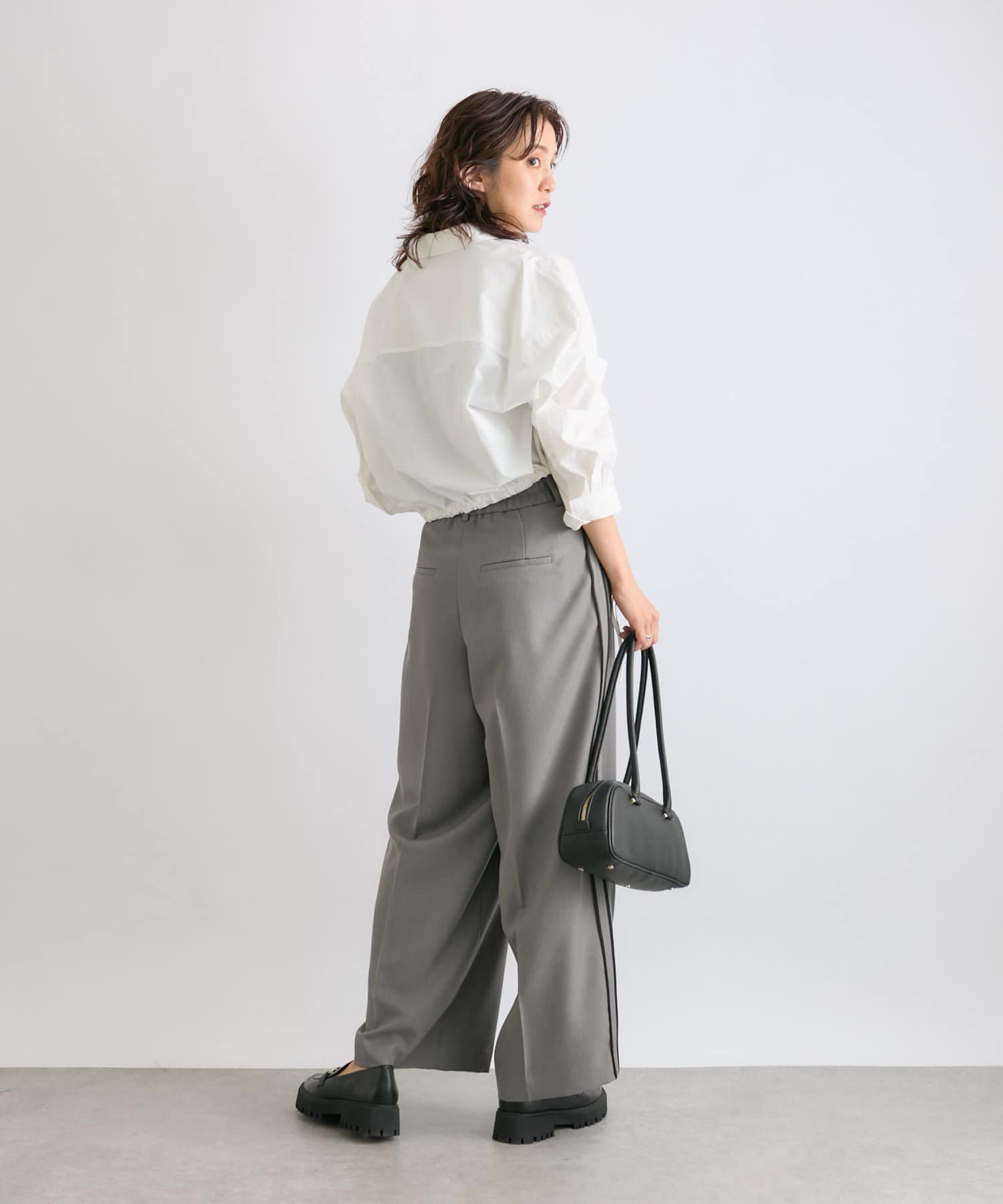 タイトスカートと合わせてすっきり着ていただいたり、ワイドパンツを合わせた着こなしが◎