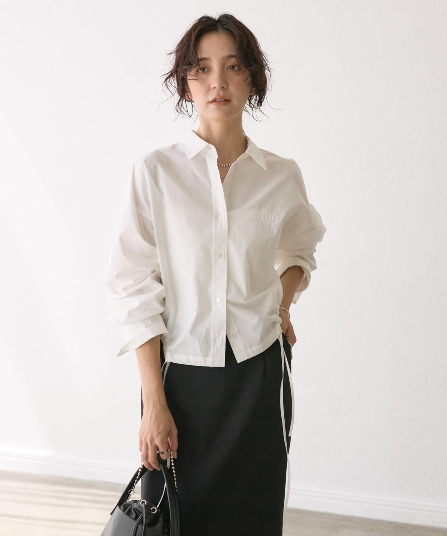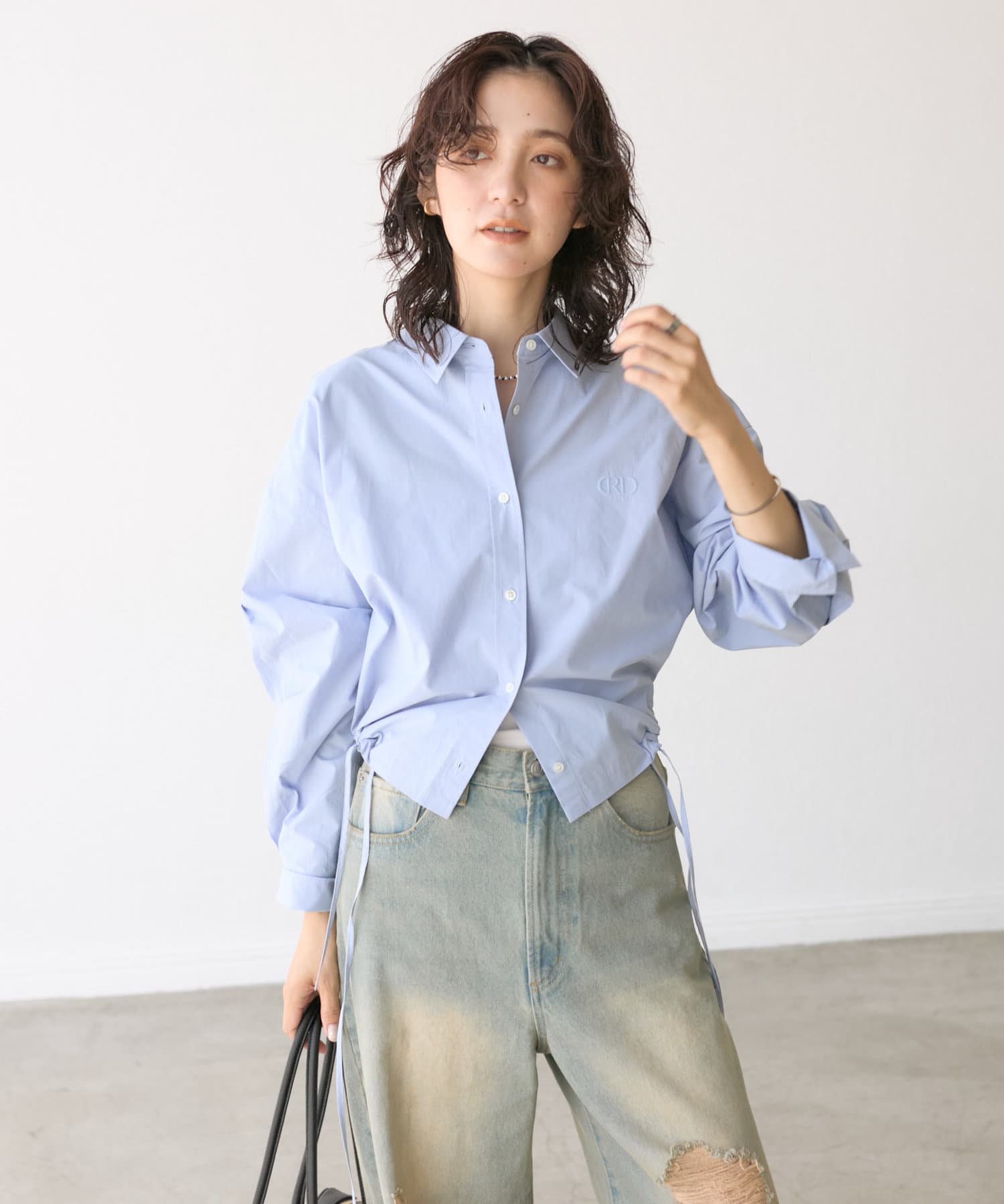 胸元のRDマーク刺繡や裾のシルエットが特徴のデザインシャツ。