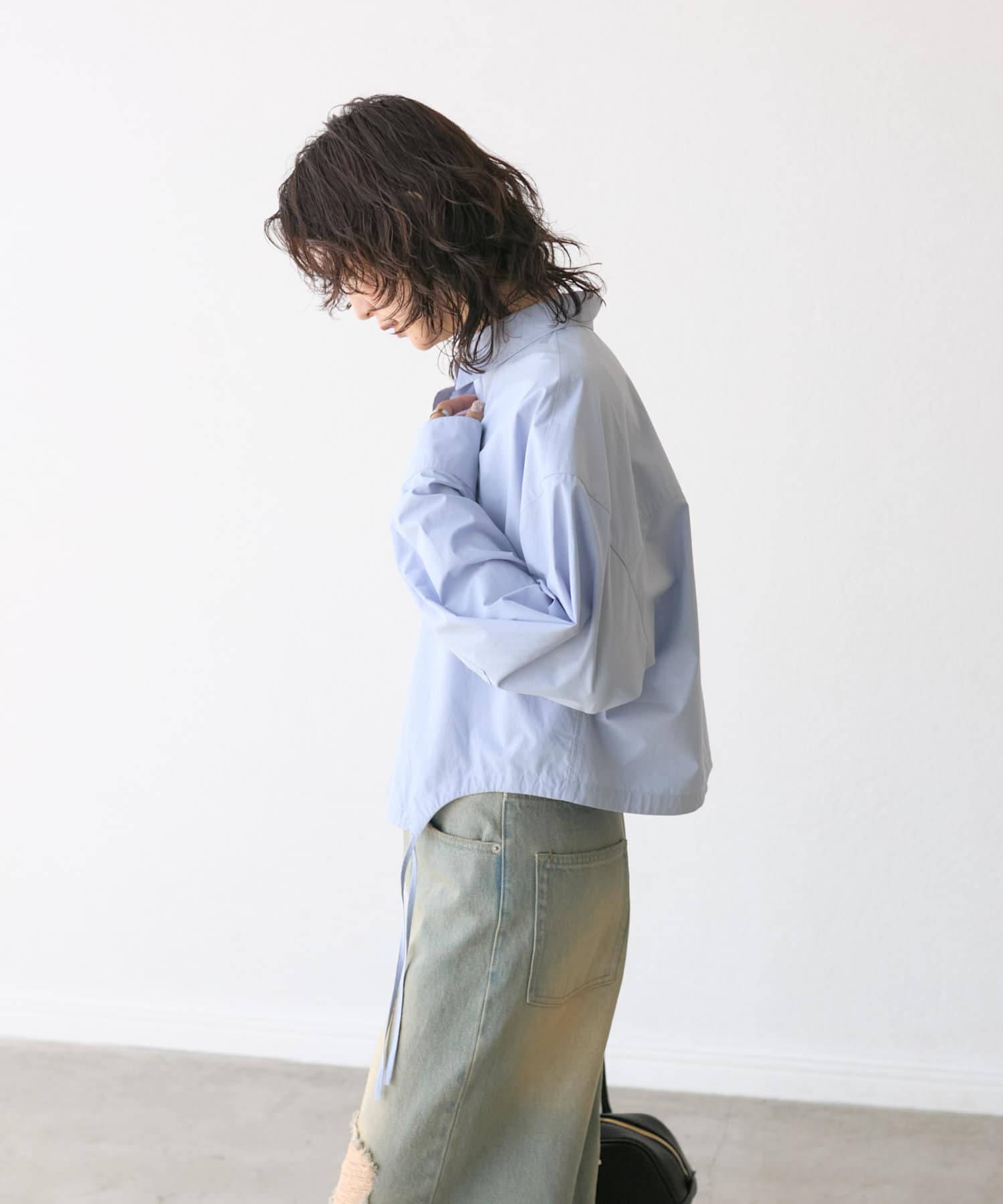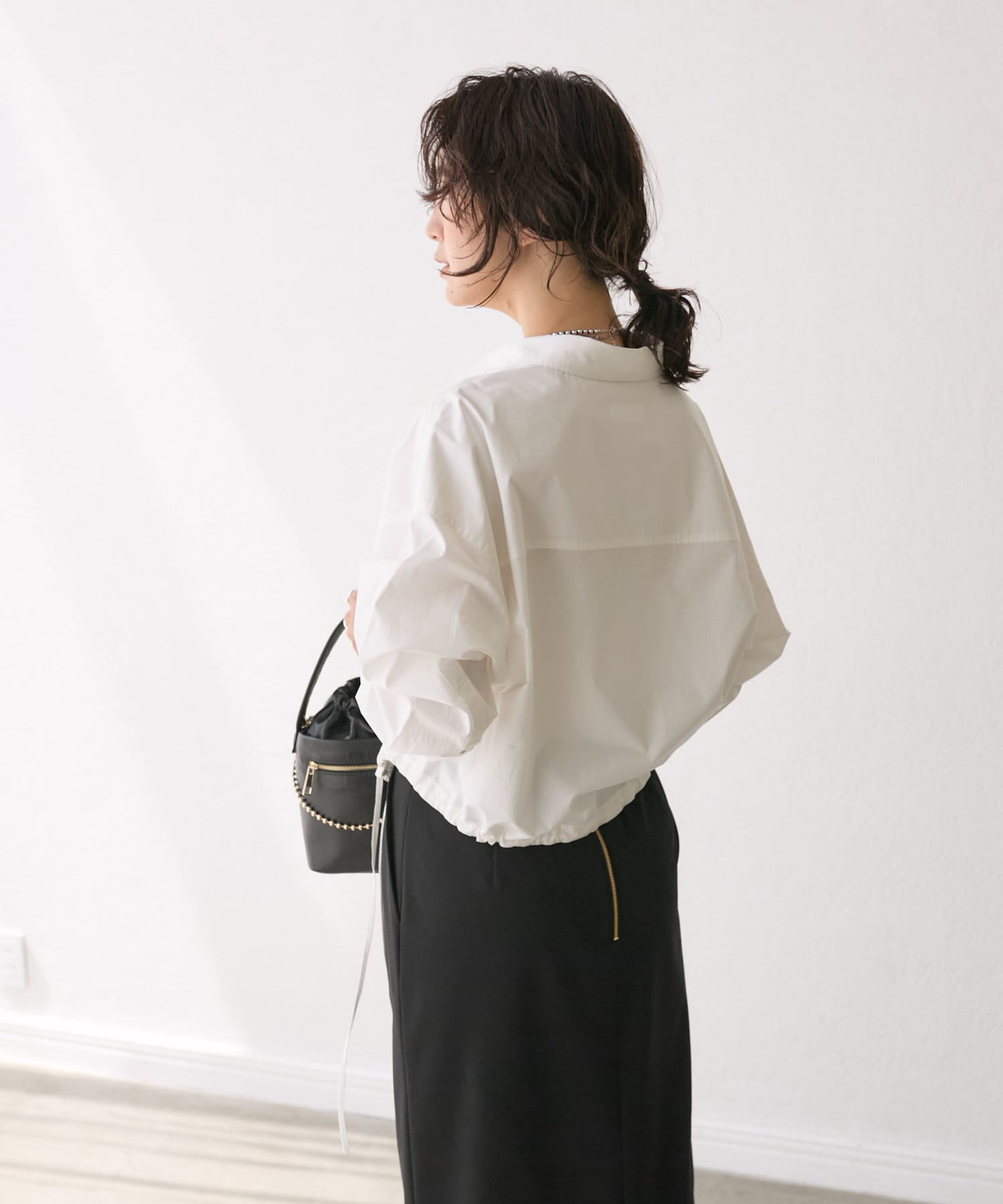 裾のドロストを絞ってバルーン風のシルエットに着ていただくことも出来、異なる表情を楽しめます。