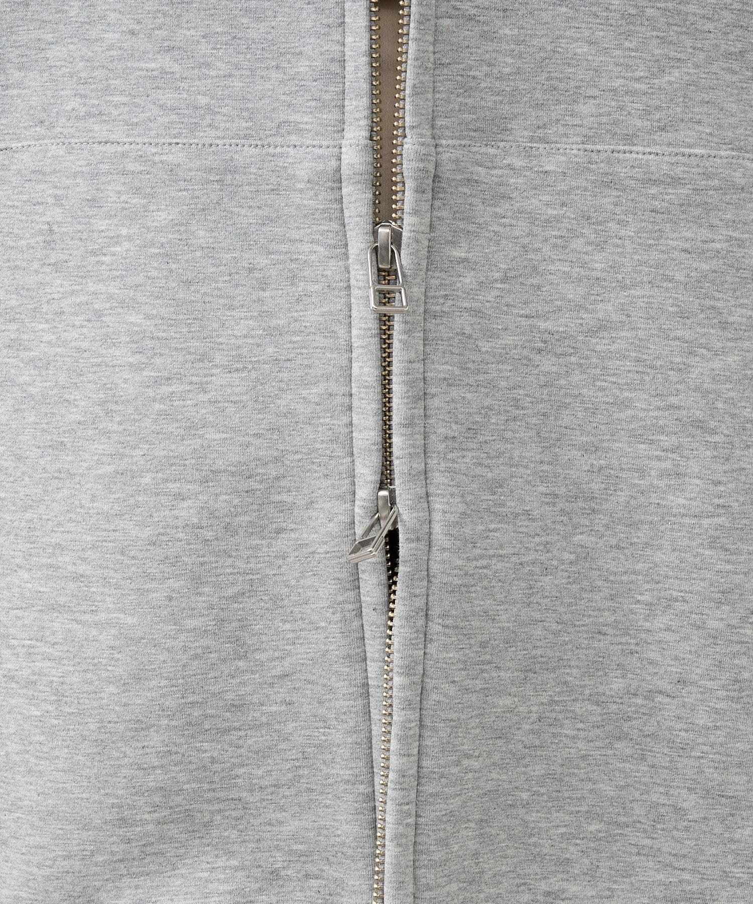 ダブルZIPでプルオーバーとしても、前を開けて羽織りとしても使えて、春夏はTシャツやタンクトップに。秋冬はコートにレイヤードしても◎