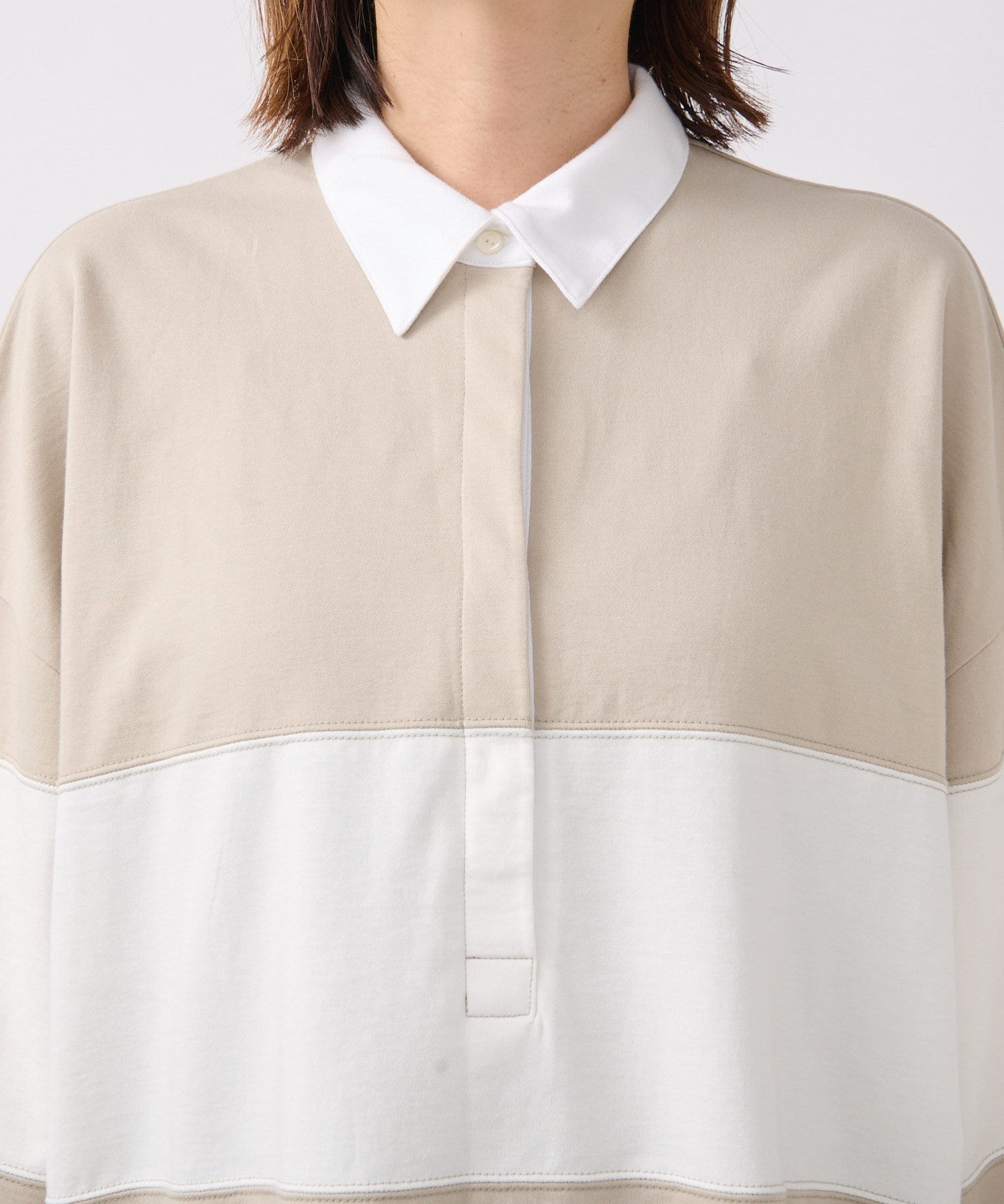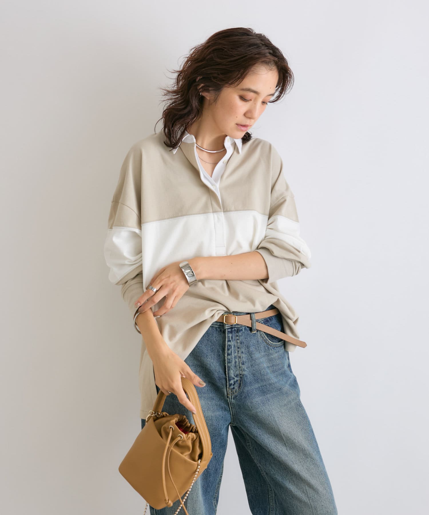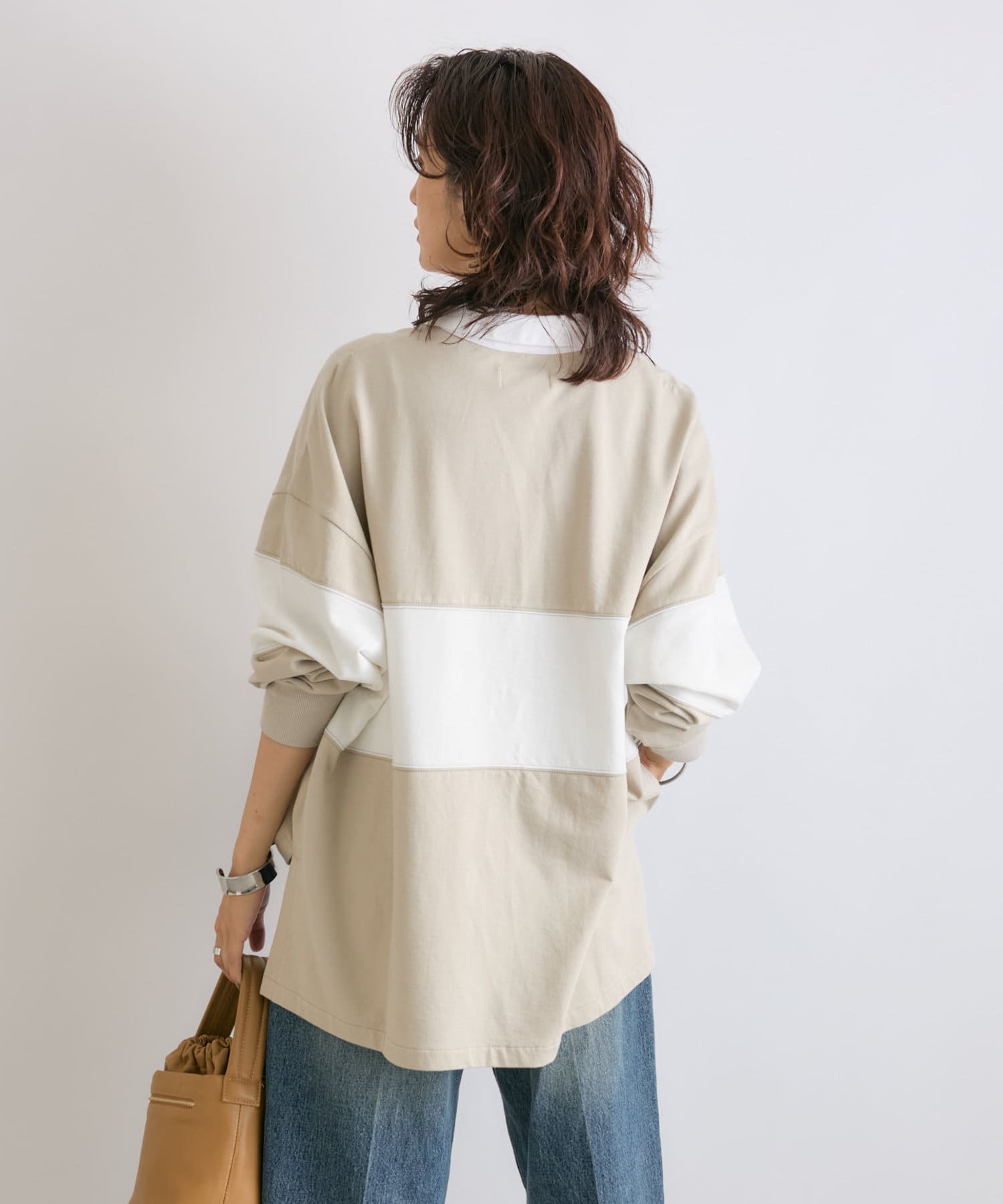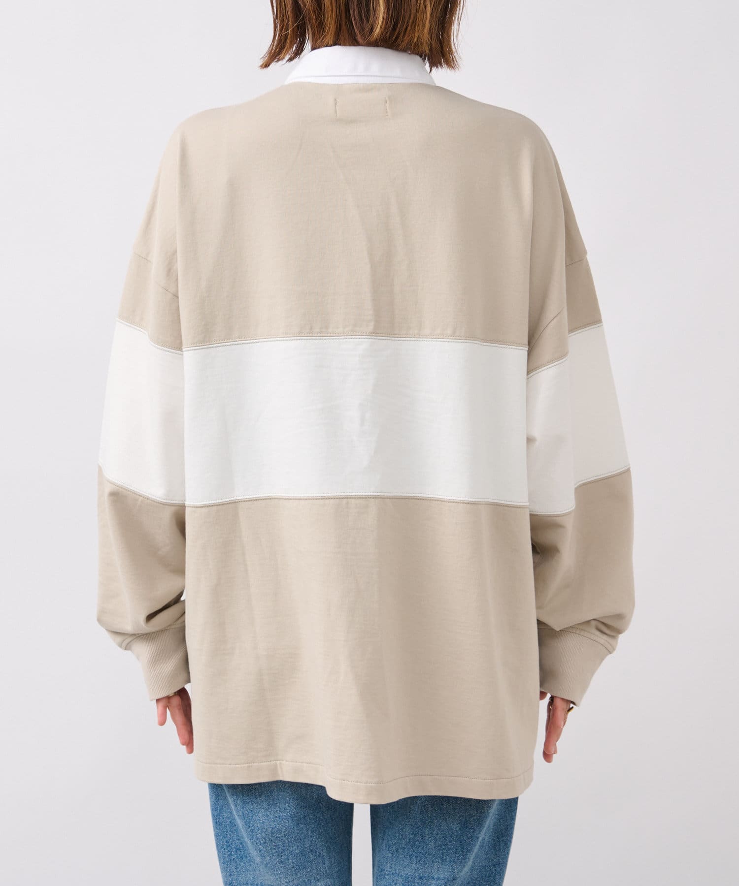 ソフトな生地感とざっくり開いたネックライン、ヌケのあるフォルムのラガーシャツ。