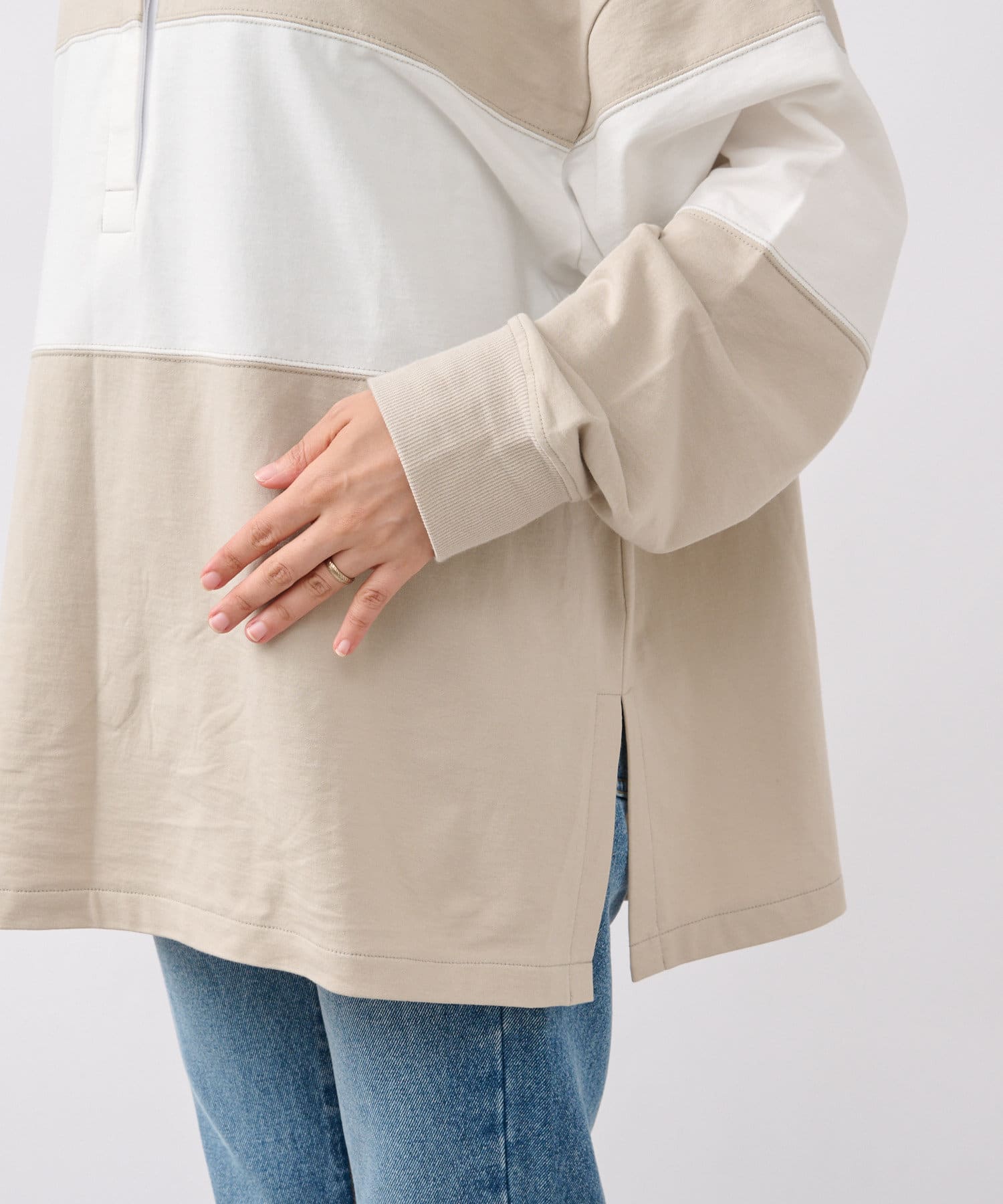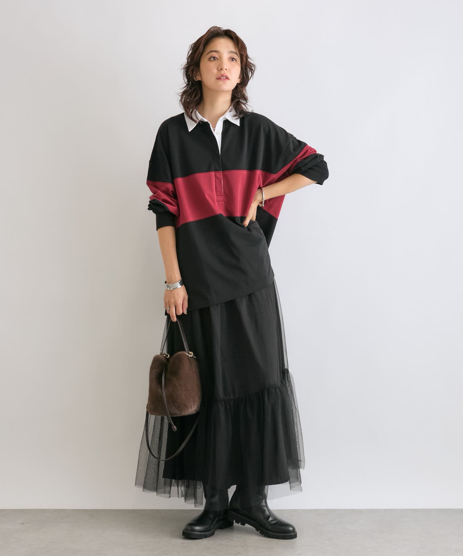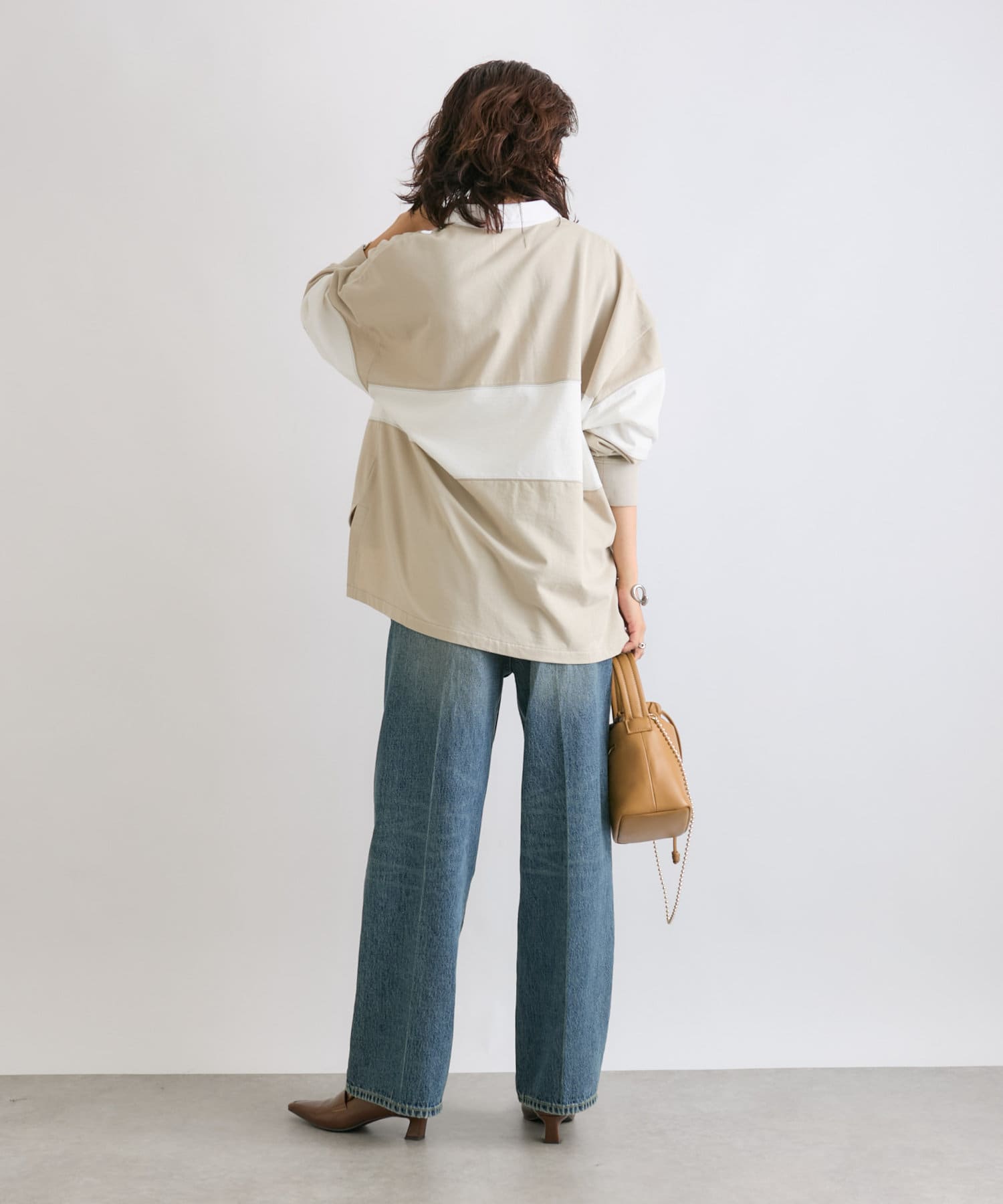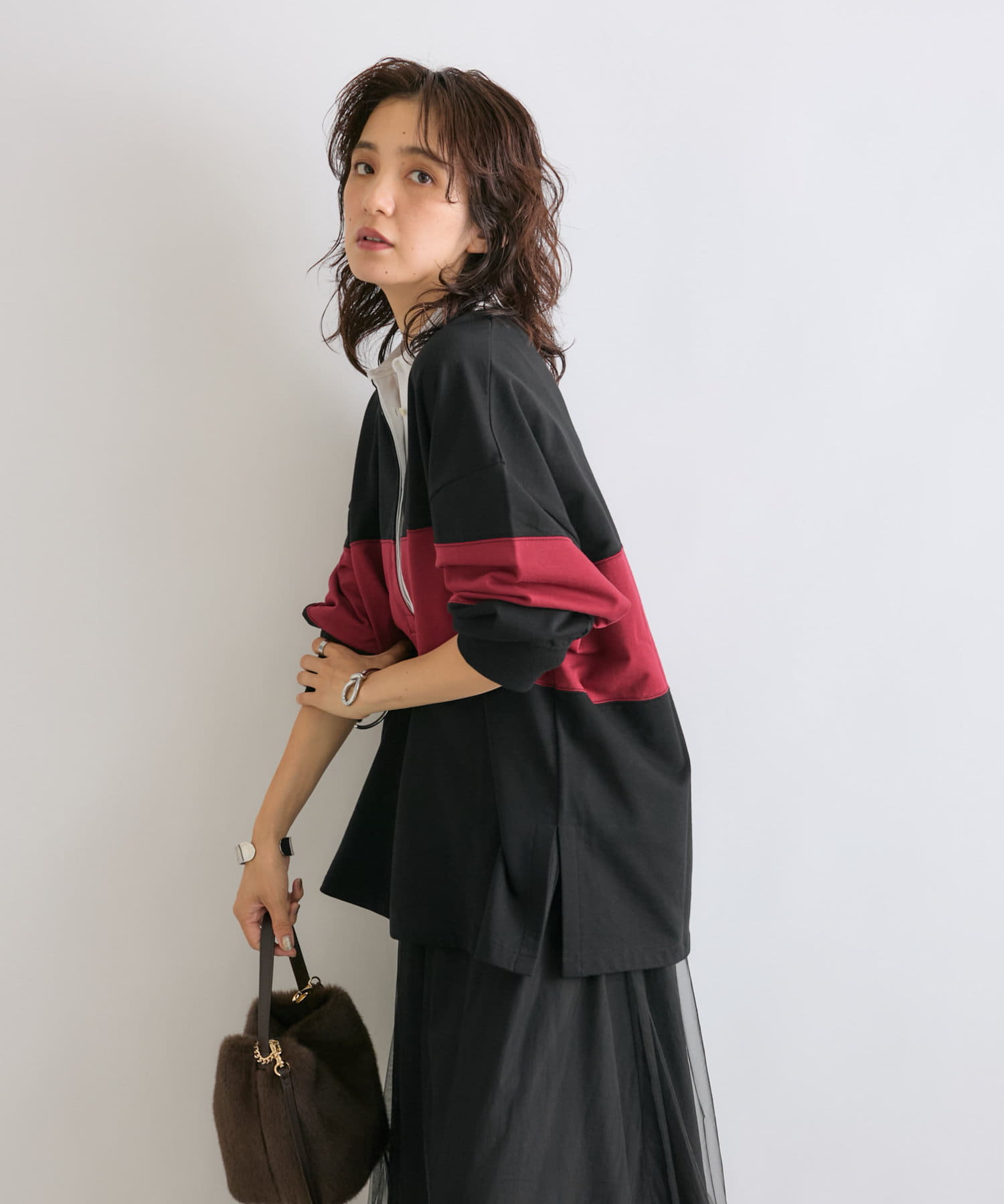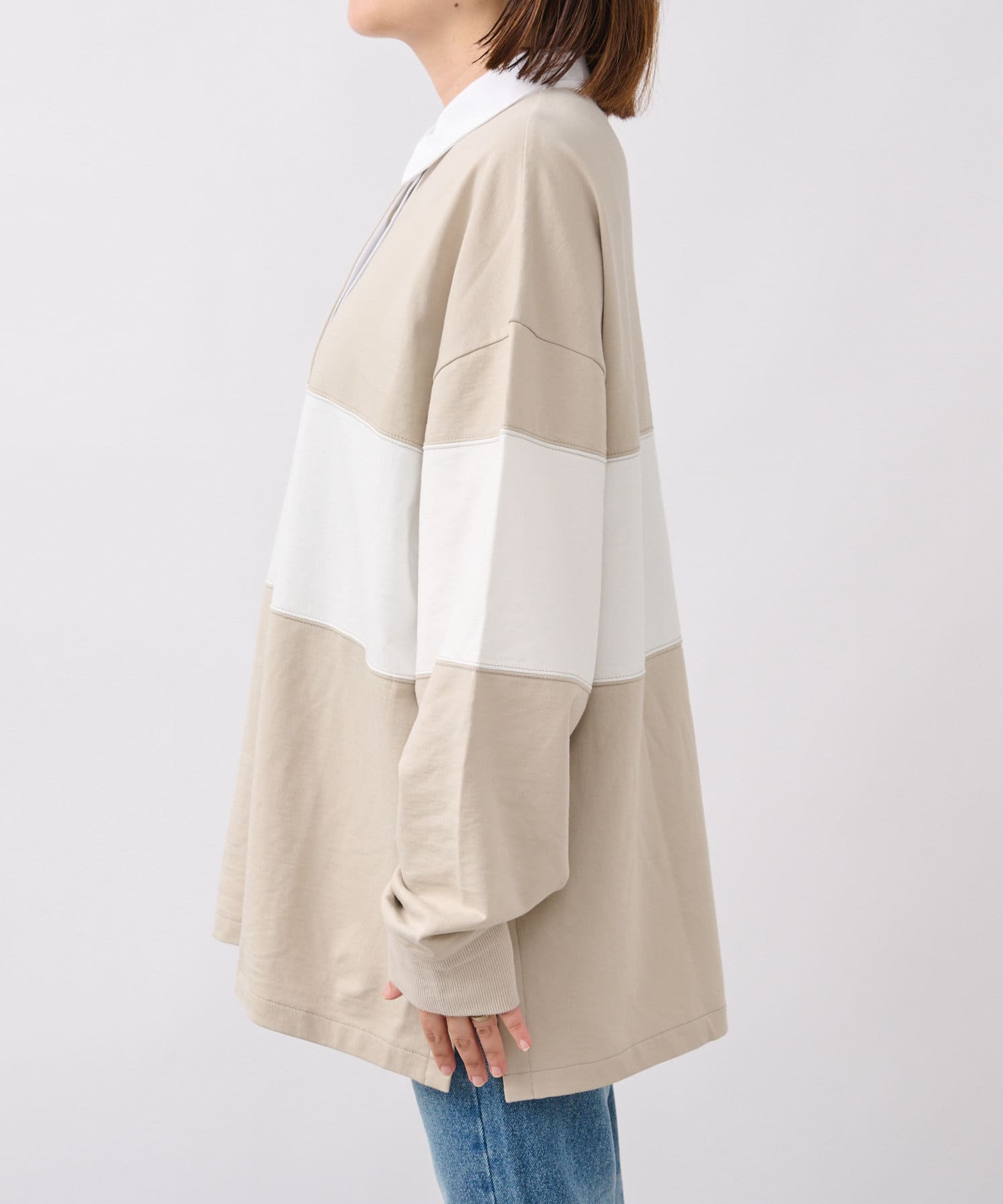 ソフトな生地感とざっくり開いたネックライン、ヌケのあるフォルムのラガーシャツ。